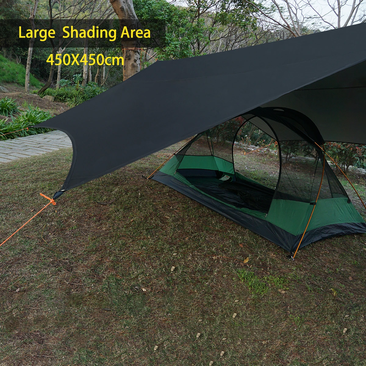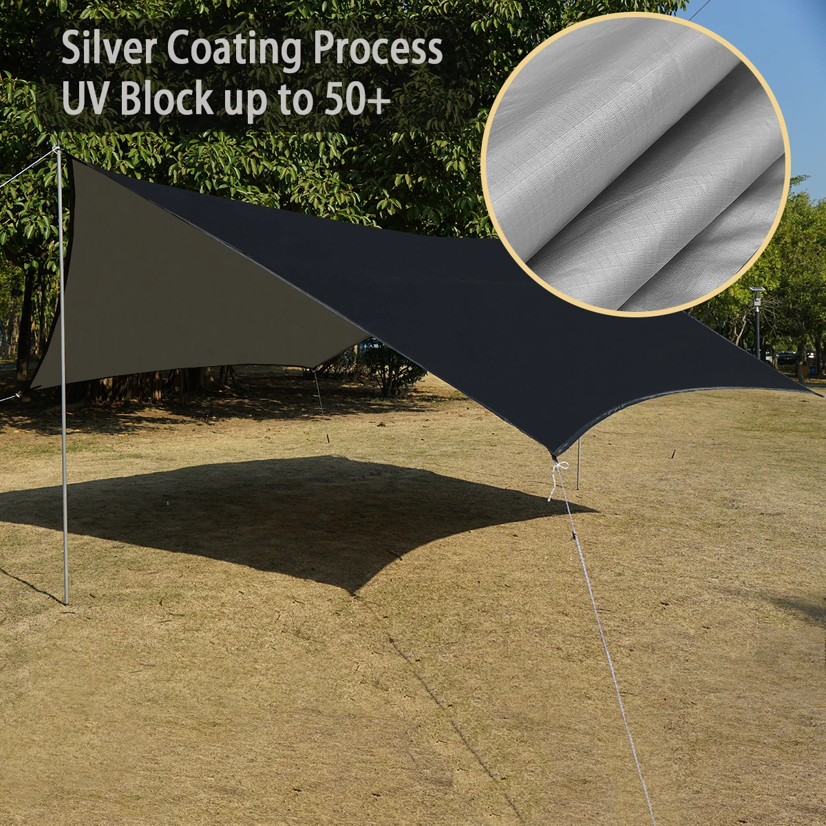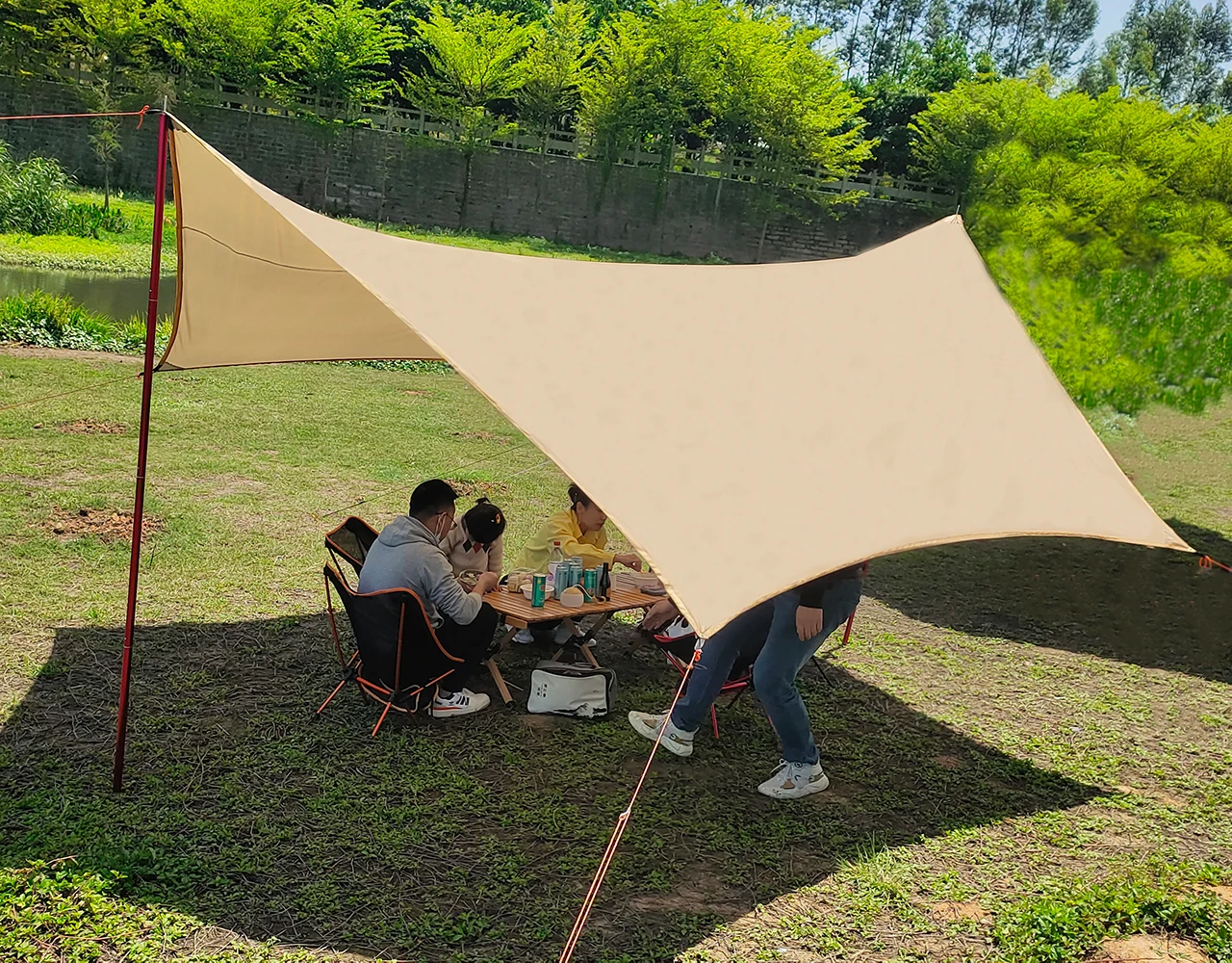 Artículo: lona hexagonal Tamaño: 4,5 m x 4,5 m Material: 210T poliéster con revestimiento plateado impermeable 3000mm Color: caqui, negro