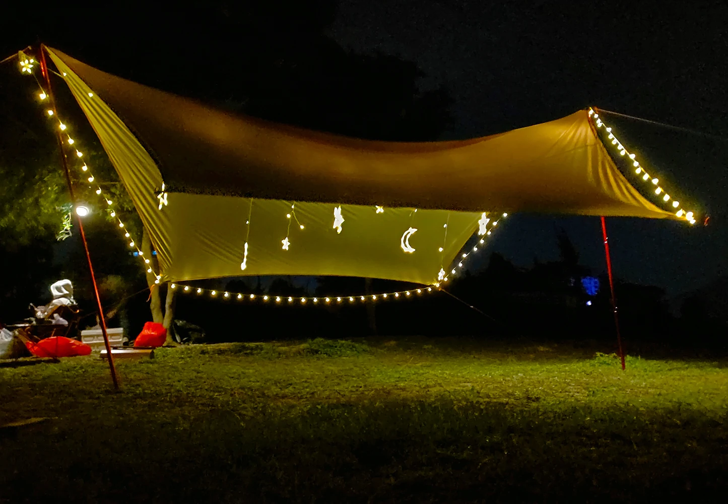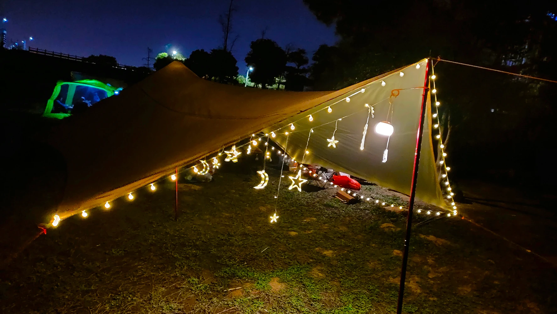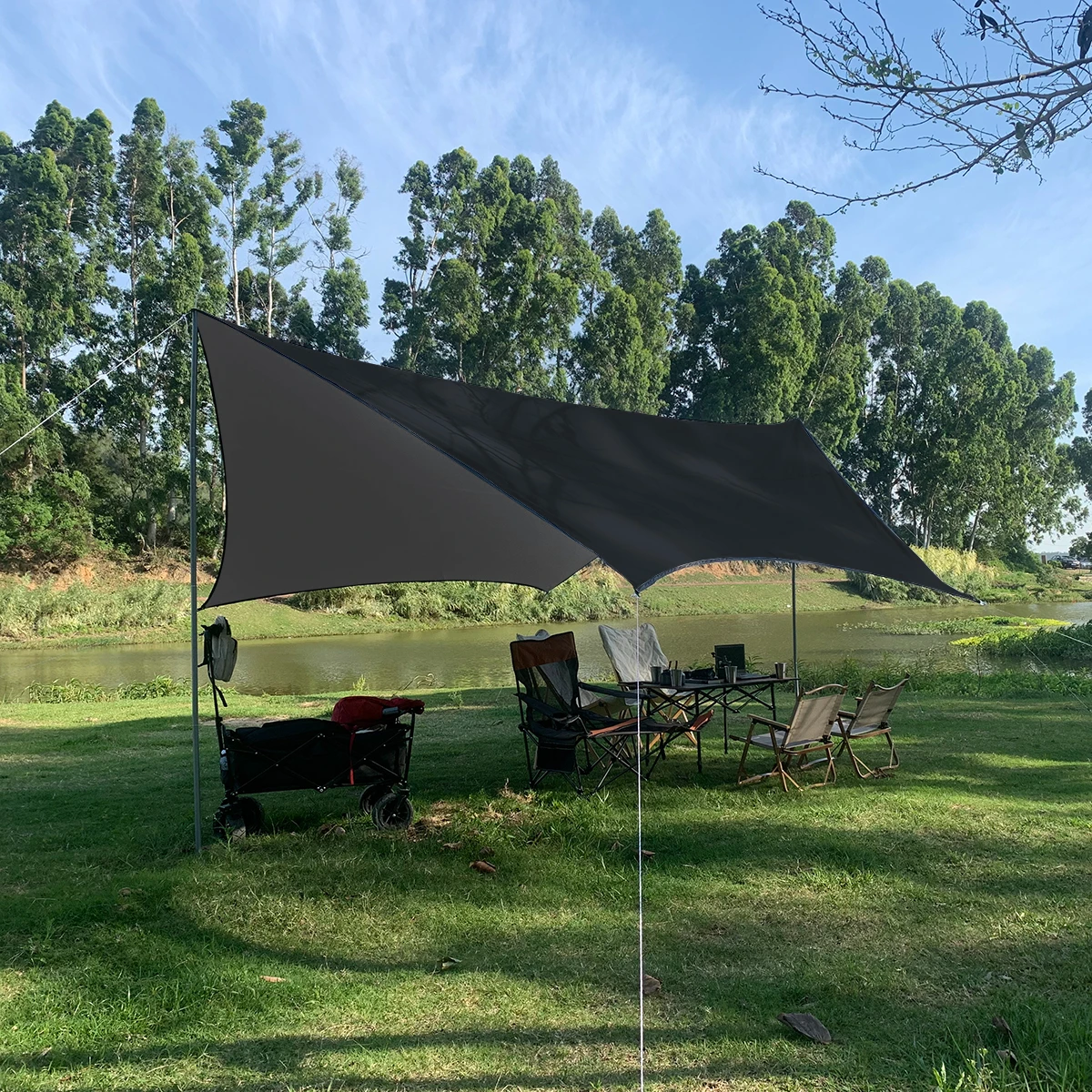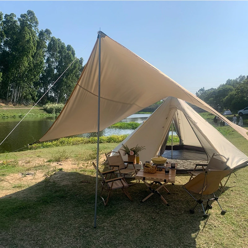 Artículo: lona hexagonal Tamaño: 4,5 m x 4,5 m Material: 210T poliéster con revestimiento plateado impermeable 3000mm Color: caqui, negro