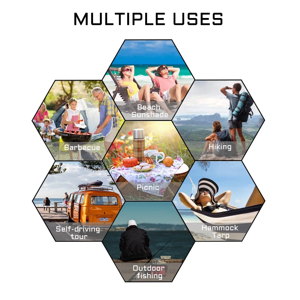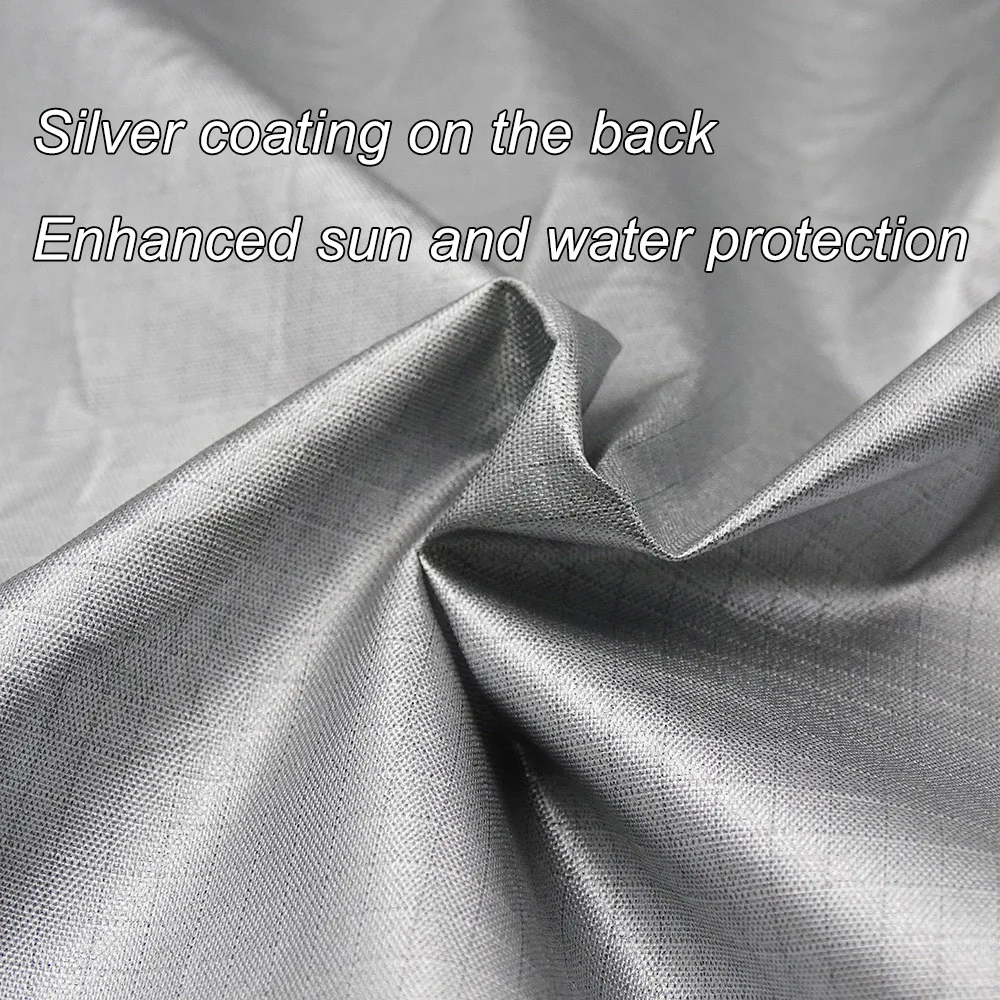 La tela de poliéster 2.210 T, recubierta de plata en la parte posterior, tiene un buen efecto de protección solar y bloquea más del 90% de los rayos ultravioleta (UV50 +).