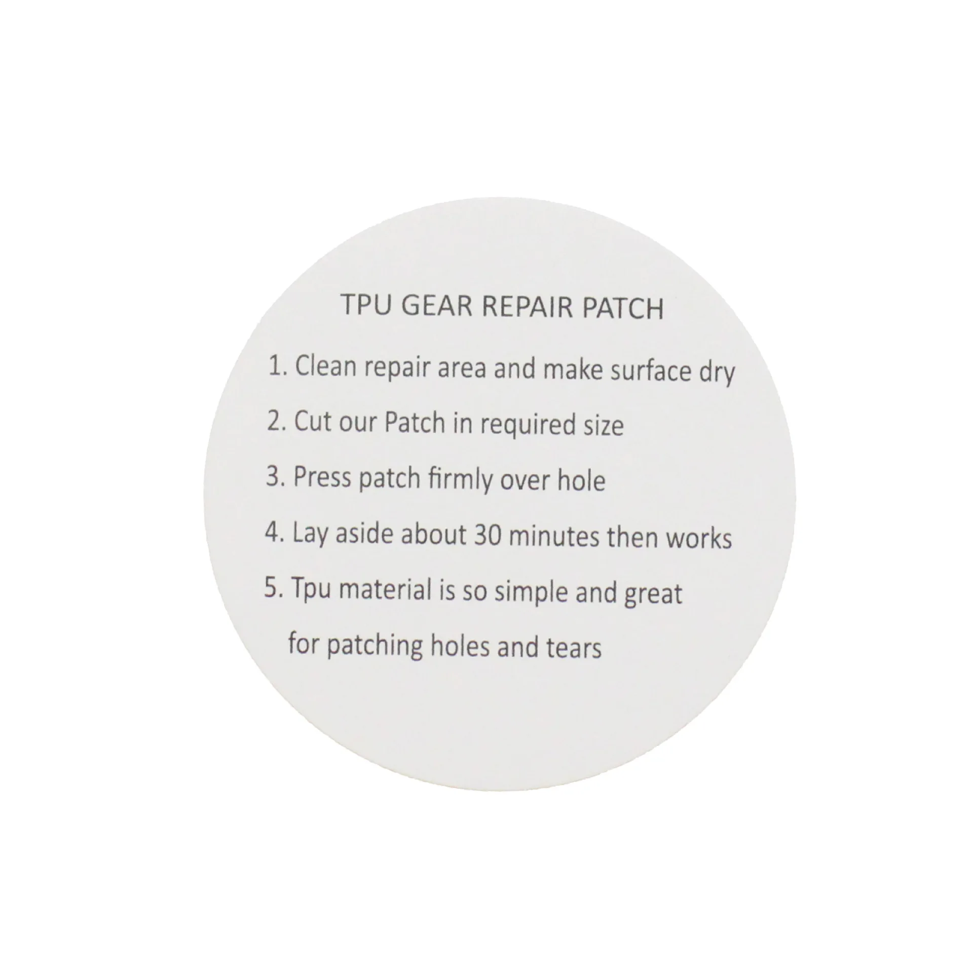 Pasos de reparación: Limpie la superficie cerca de la grieta o agujero y manténgala seca. Retire el papel de liberación, pegue el parche directamente en el orificio, cúbralo completamente y aplique fuerza para que se pegue firmemente. Nombre: Subsidio de reparación transparente de TPU