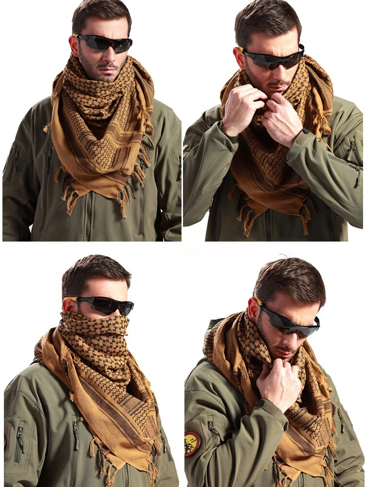 El shemagh, también conocido como pañuelo keffiyeh o árabe, es una forma sencilla pero eficaz de proteger la cara y el cuello del sol, el viento y la arena.También funciona bien como gorro alternativo de invierno, especialmente en zonas con nieve y vientos fuertes.Los estilos de uso del shemagh varían, pero envolver la bufanda alrededor de la cabeza y la cara proporciona una protección óptima contra los elementos.