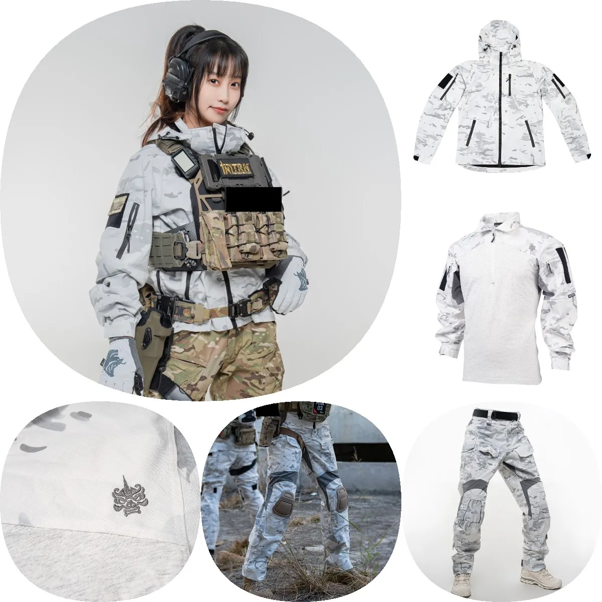 Top táctico de camuflaje para nieve al aire libre, camisa fina, chaqueta, traje de rana, pantalones de tren tácticos G3, chaleco