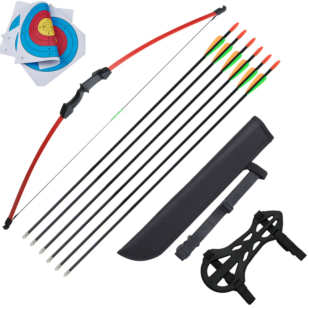 Toparchery 15lbs Archery Takedown Arco recurvo y 6X Juego de flechas para niños Juegos de jardín Arco de práctica de tiro con kit de flechas