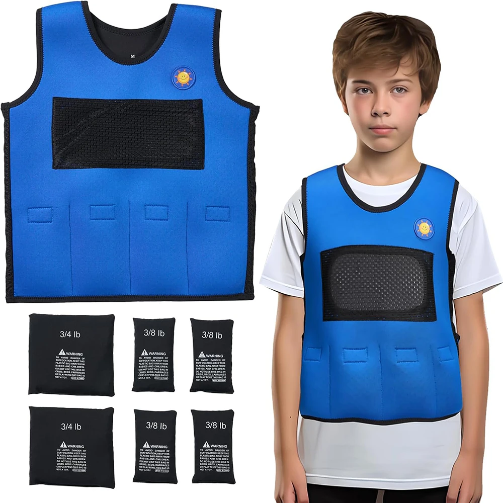 4. Fácil de ajustar a las necesidades de los niños para un sensorial óptimo. El chaleco pesado para niños viene con bolsas de peso extraíbles para satisfacer diferentes niveles de necesidades sensoriales. El chaleco tiene Velcro en los bolsillos con peso para ayudar a evitar que las bolsas de peso se caigan fácilmente. El ajuste de la longitud y el busto puede hacer que el chaleco de compresión sensorial se ajuste mejor y ofrezca niveles variados de compresión.