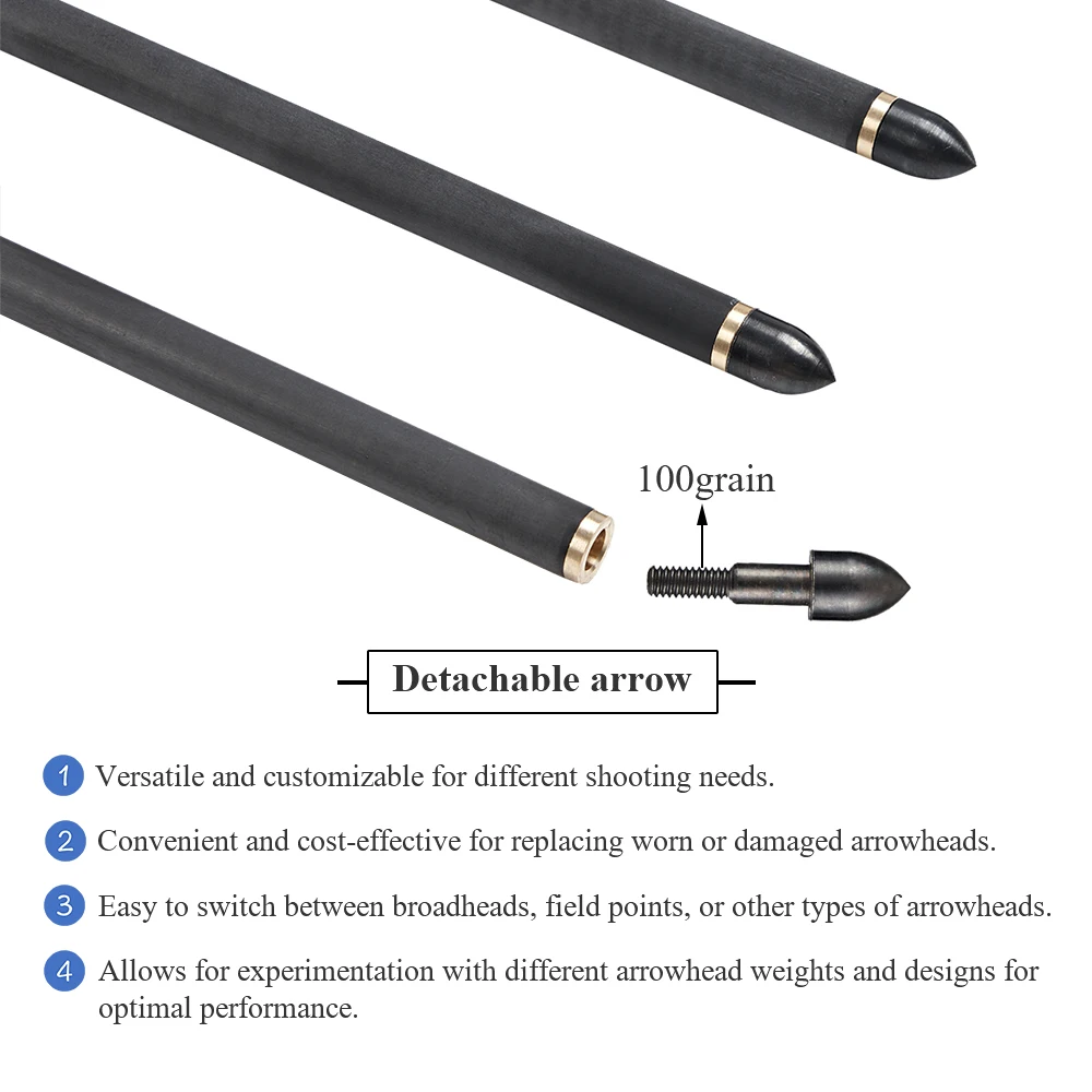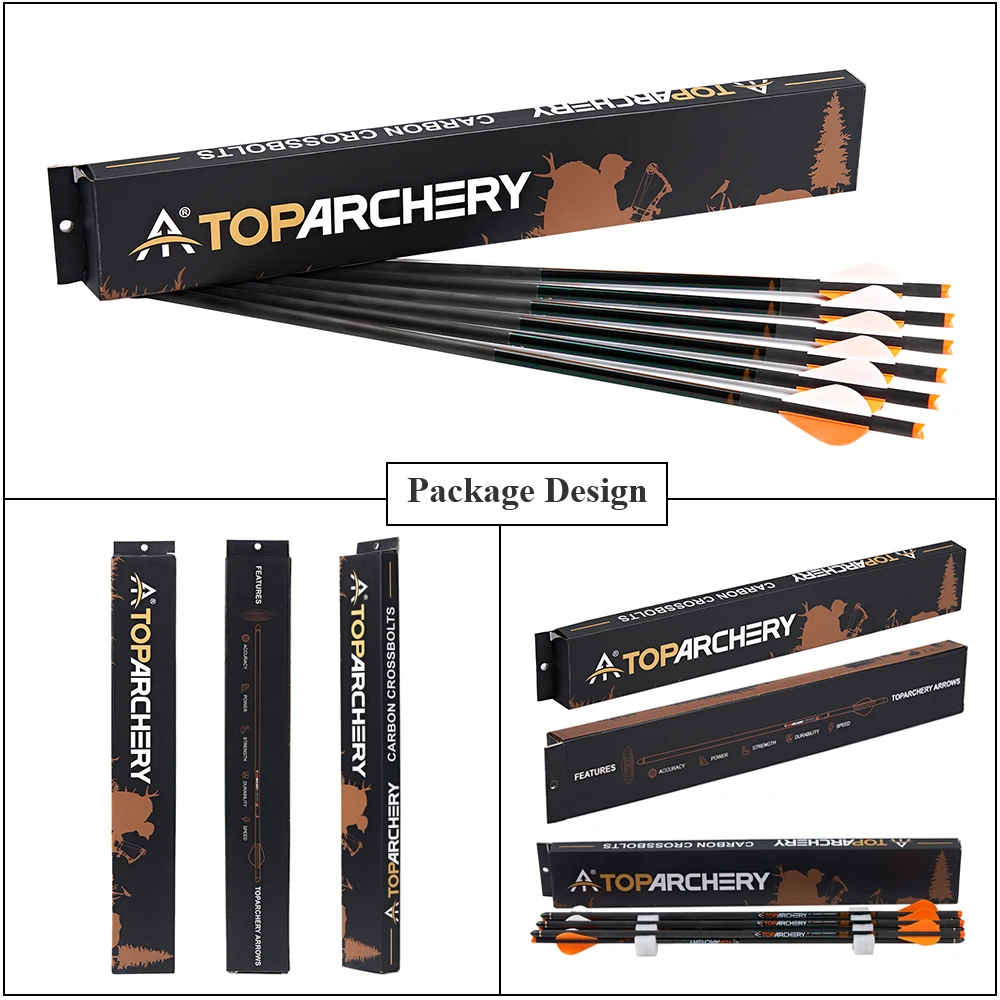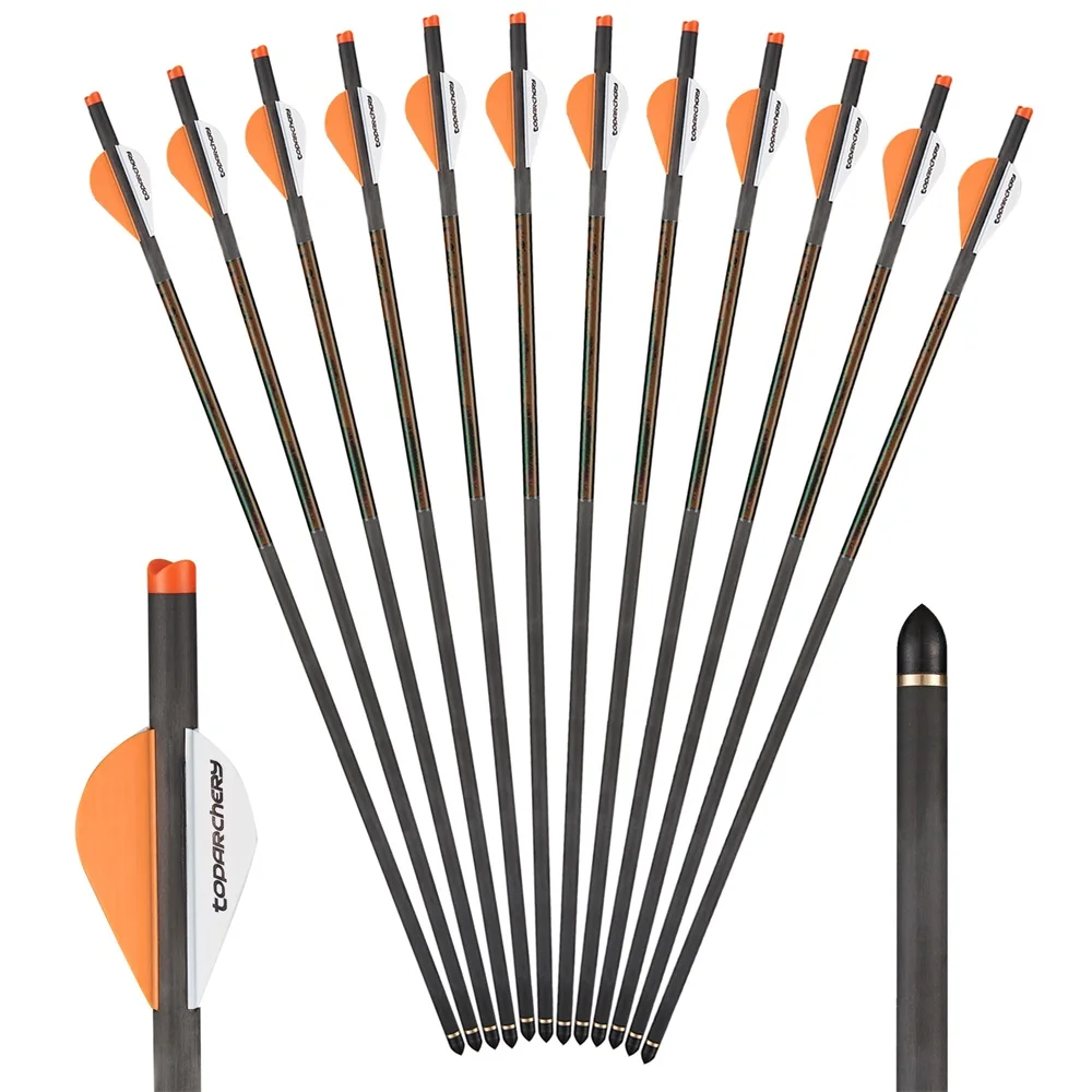 Toparchery 20 pulgadas 100% Flecha de carbono puro con asiento de cobre y aluminio Flecha de ballesta de plumas de 2 pulgadas para tiro con arco al aire libre Caza