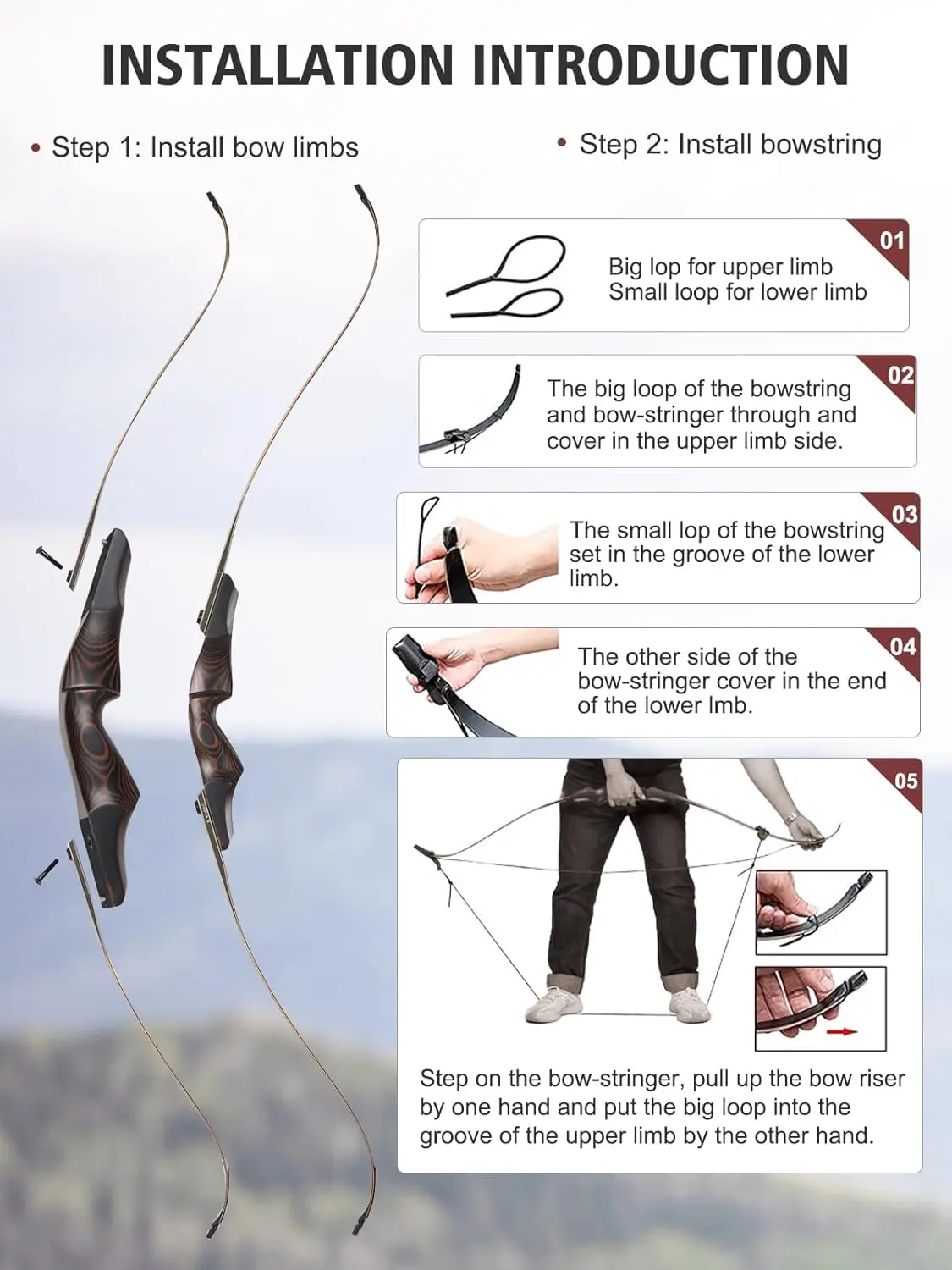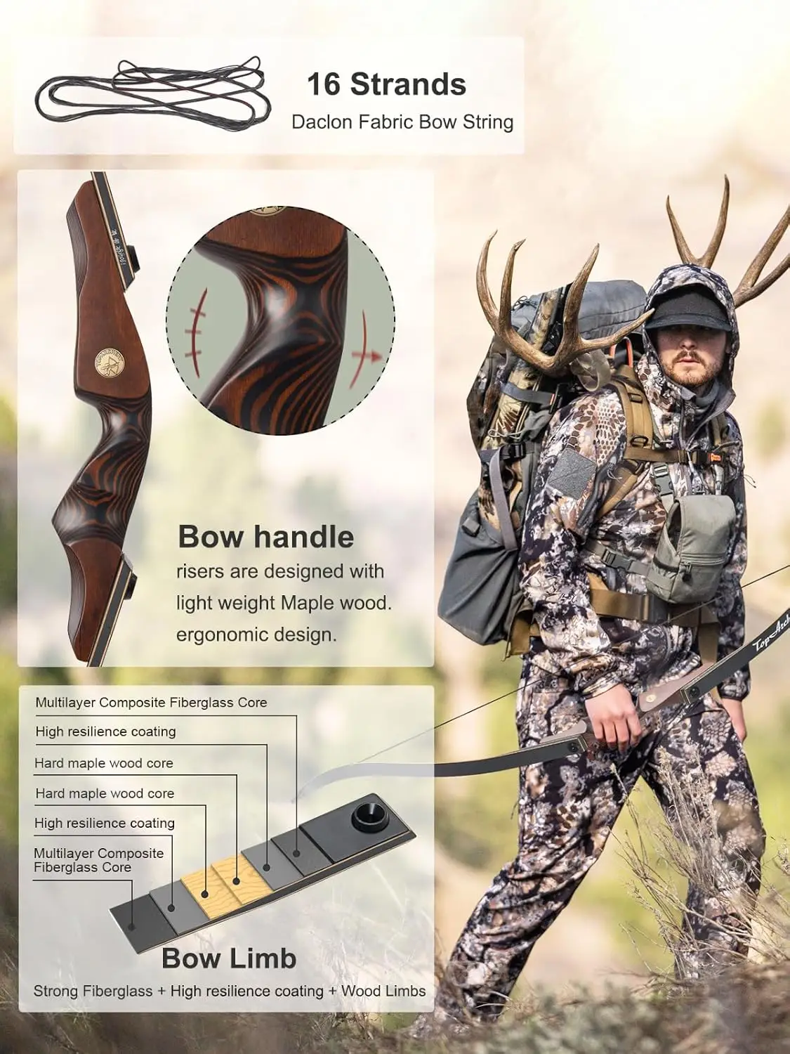 - Arco de caza avanzado y principiante: Opciones de peso que van desde: 30 lbs, 35 lbs, 40 lbs, 45 lbs, 50 lbs, 55 lbs, 60 lbs, adecuado para cazadores principiantes y avanzados.