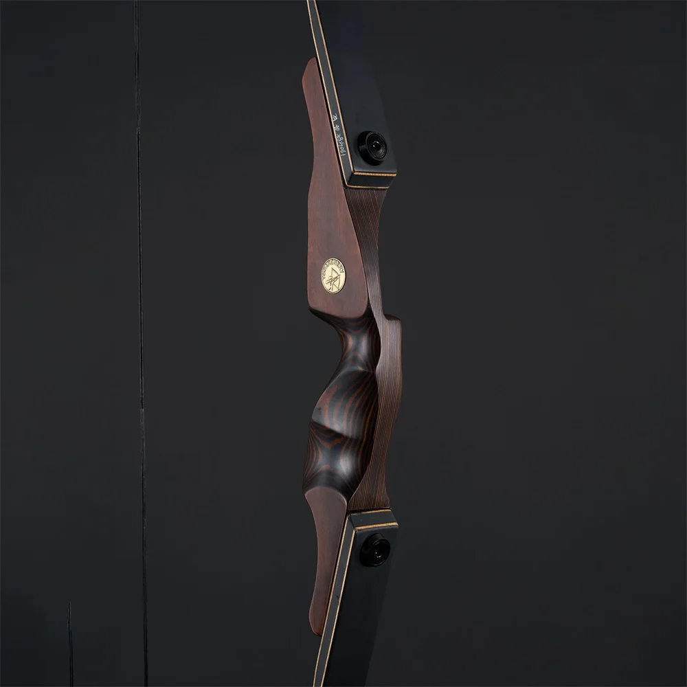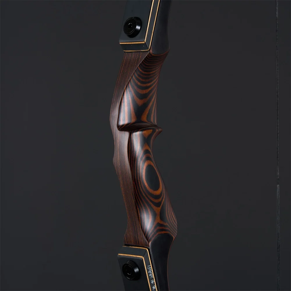 - El elevador de madera de ingeniería de alta densidad gris colorido y las extremidades laminadas de arce y resina epoxi hacen que el arco recurvo sea liviano, duradero y resistente.
