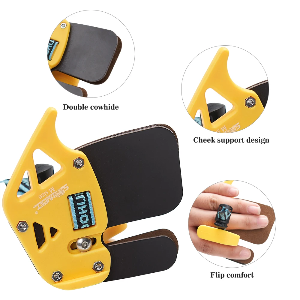 Toparchery-pestaña de piel de vaca auténtica para diestros, Protector de dedo para principiantes y niños, suministros de caza y tiro con arco