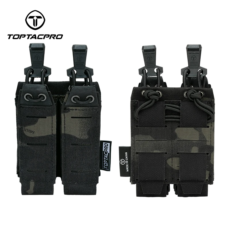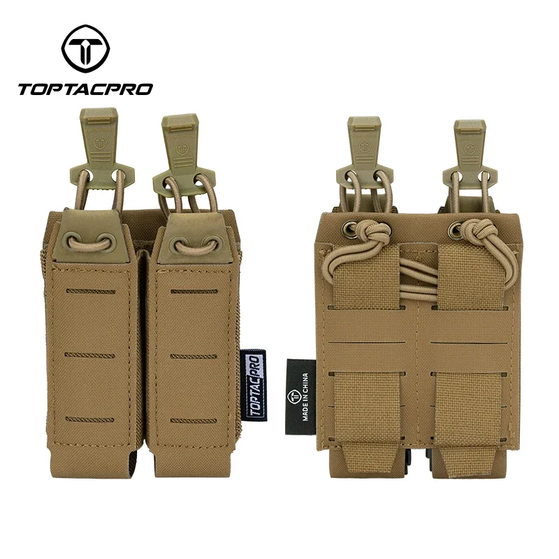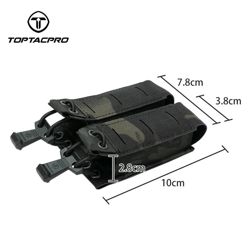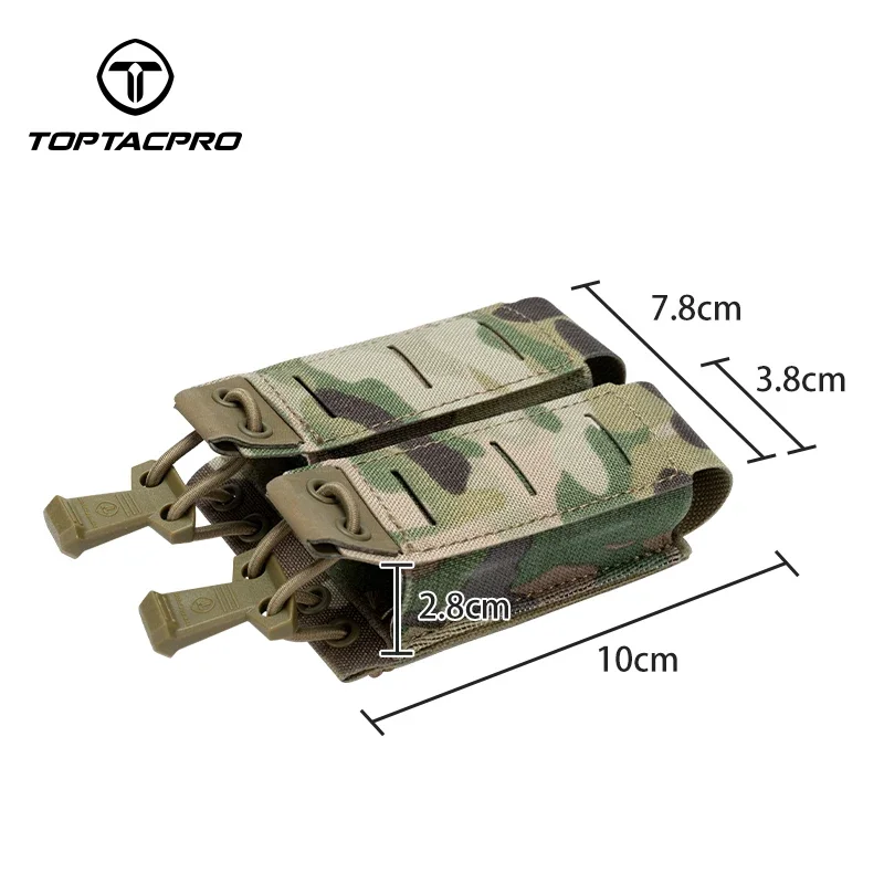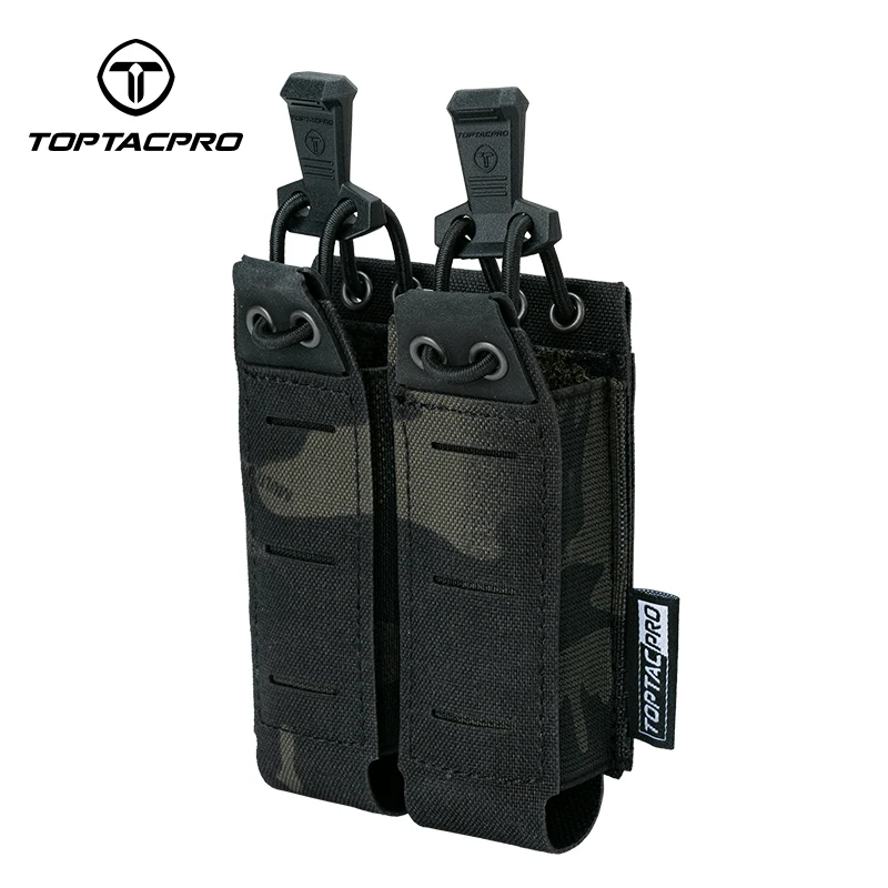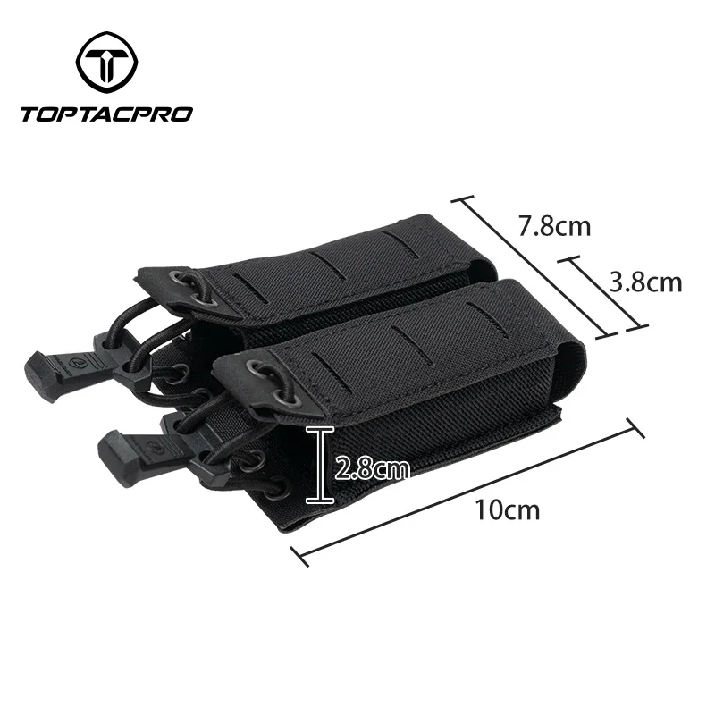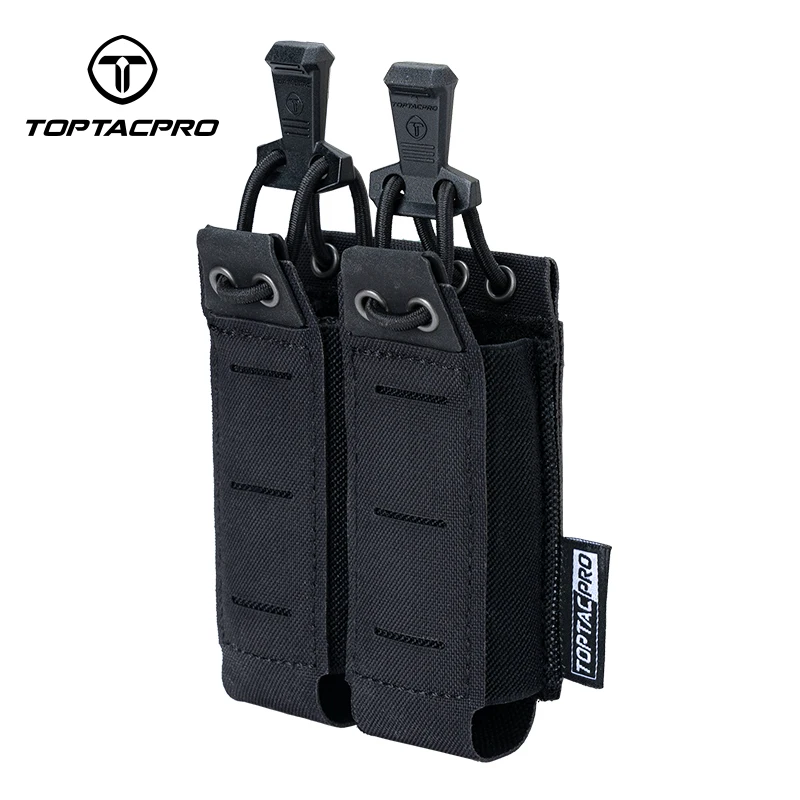 TOPTACPRO bolsa táctica doble Mag para 9mm MOLLE bolsa abierta superior Mag dibujo rápido ligero 8526