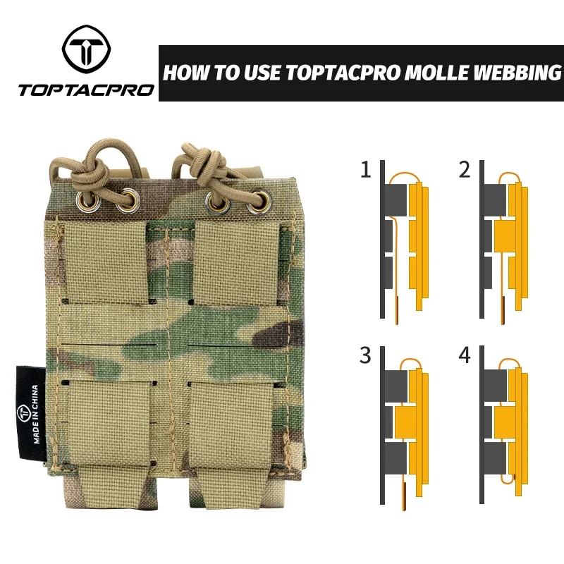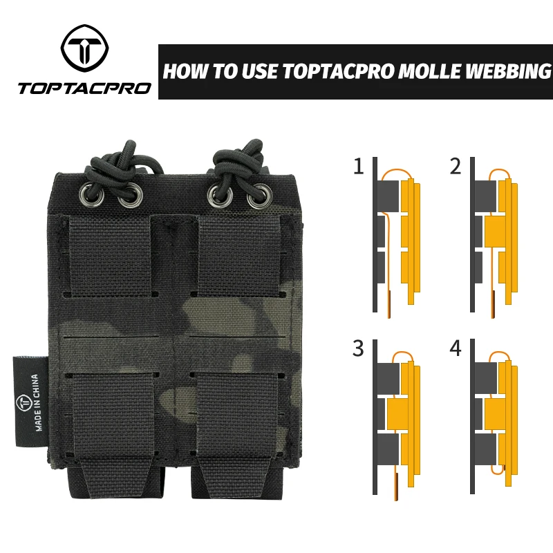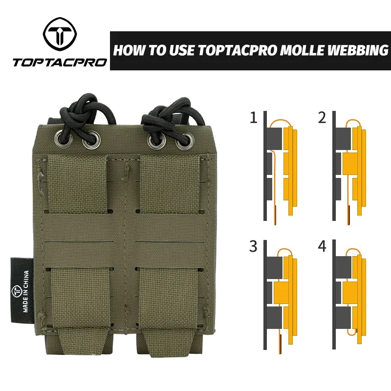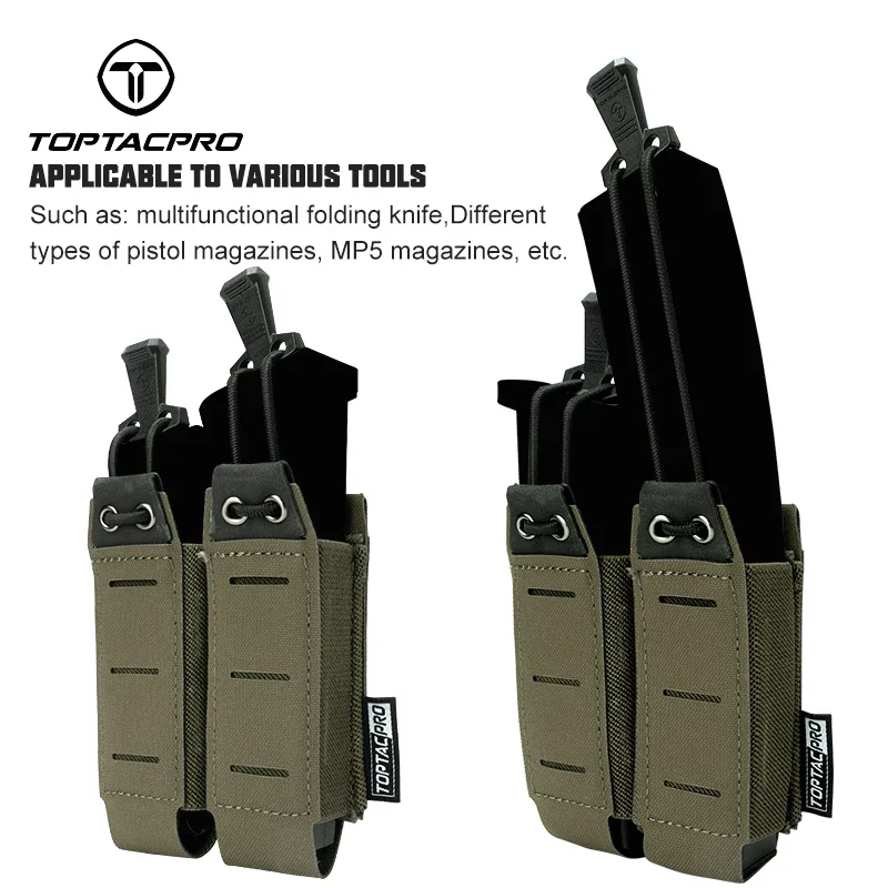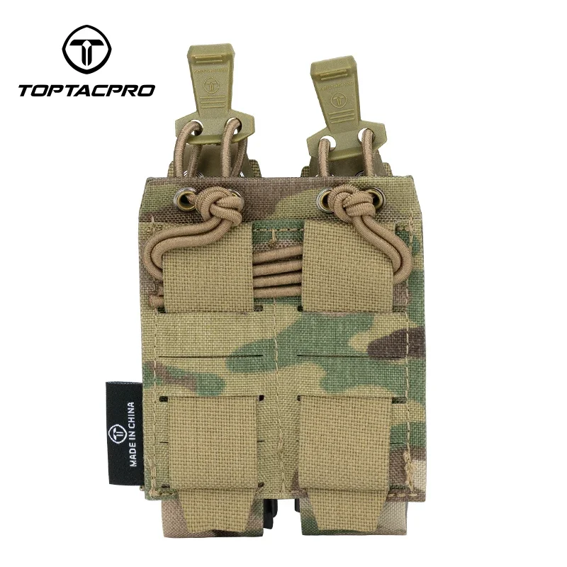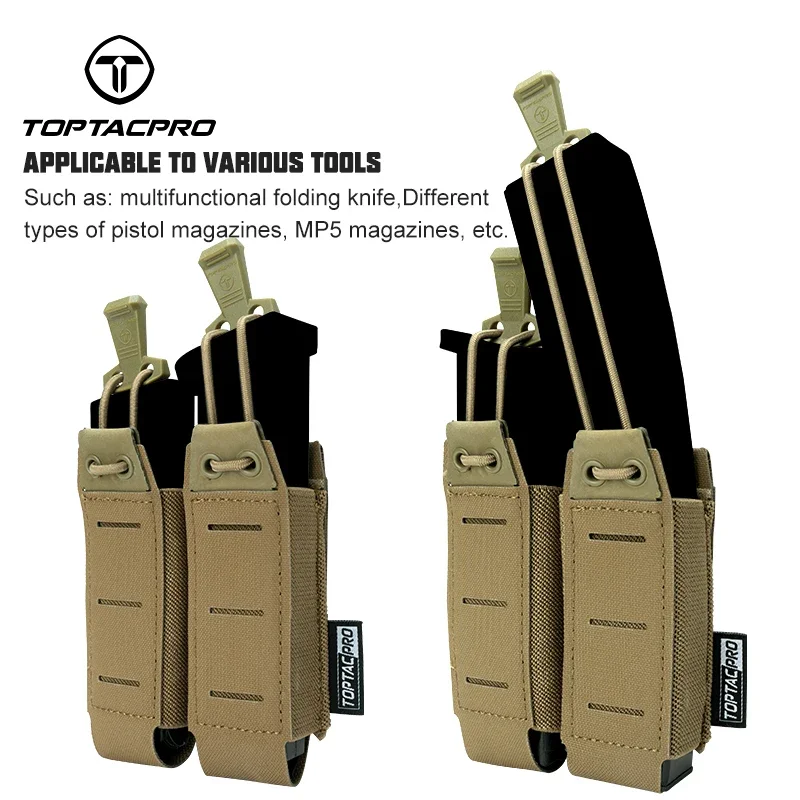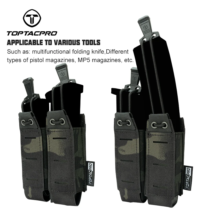 TOPTACPRO bolsa táctica doble Mag para 9mm MOLLE bolsa abierta superior Mag dibujo rápido ligero 8526