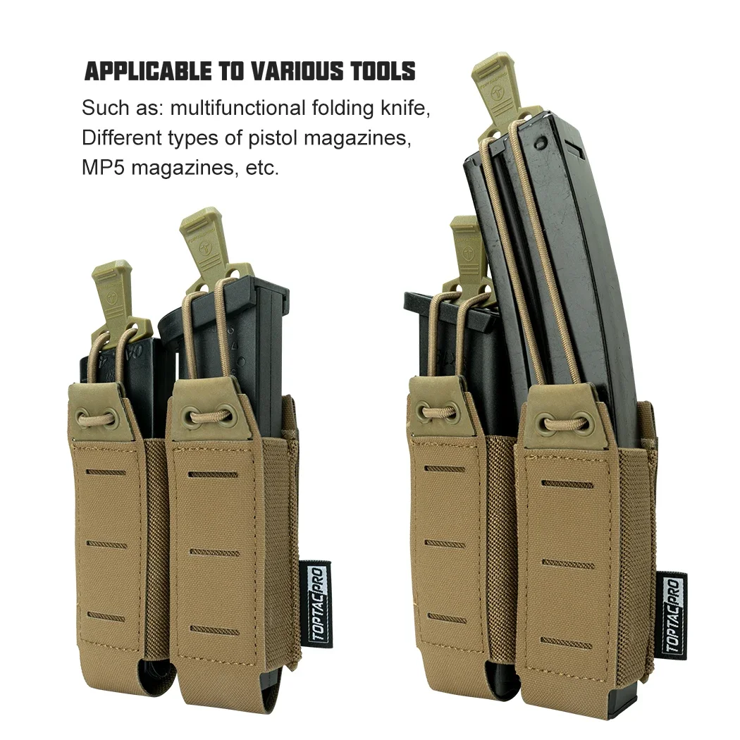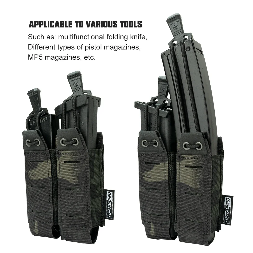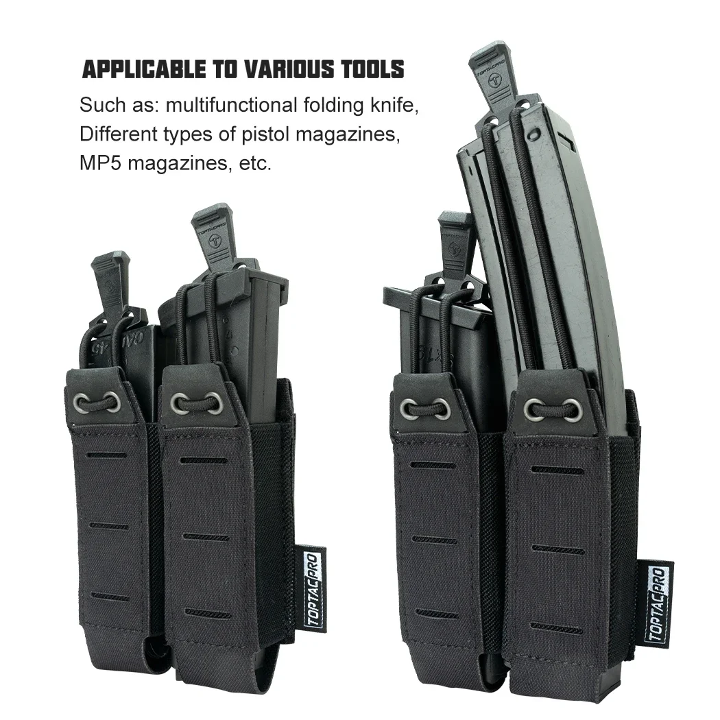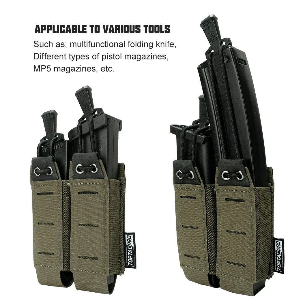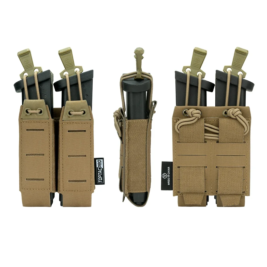 TOPTACPRO bolsa táctica doble Mag para MOLLE de 9mm bolsa Mag abierta de tapa rápida ligera 8526