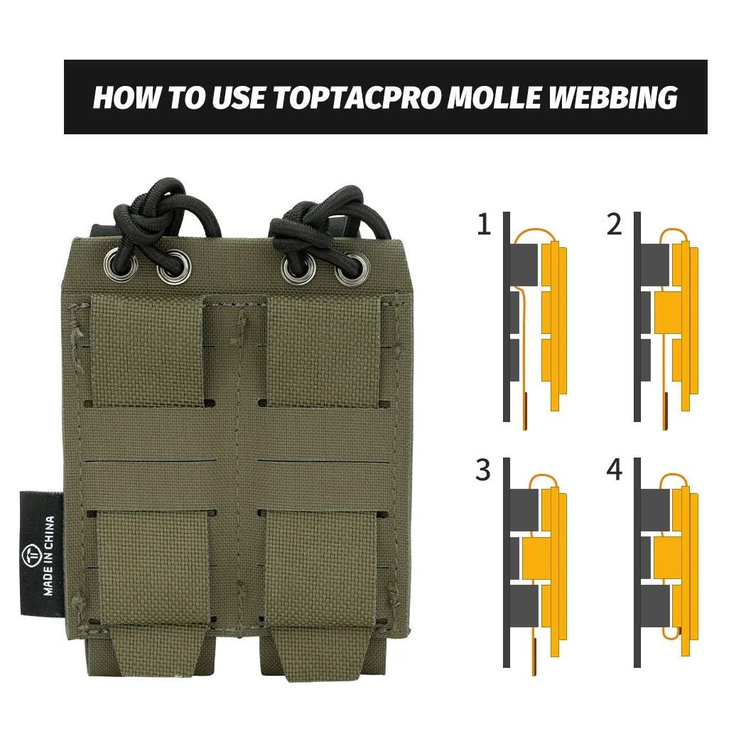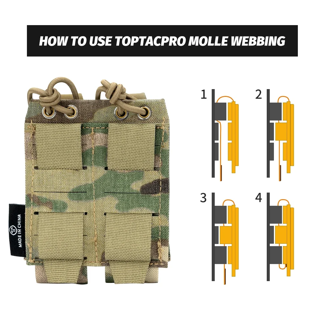 Marca: TOPTACPRO Material: nailon 500D Peso : 100g Tamaño: Tamaño: 10*5*10 cm Paquete: Bolsa doble * 1 (No con otros equipos tácticos)
