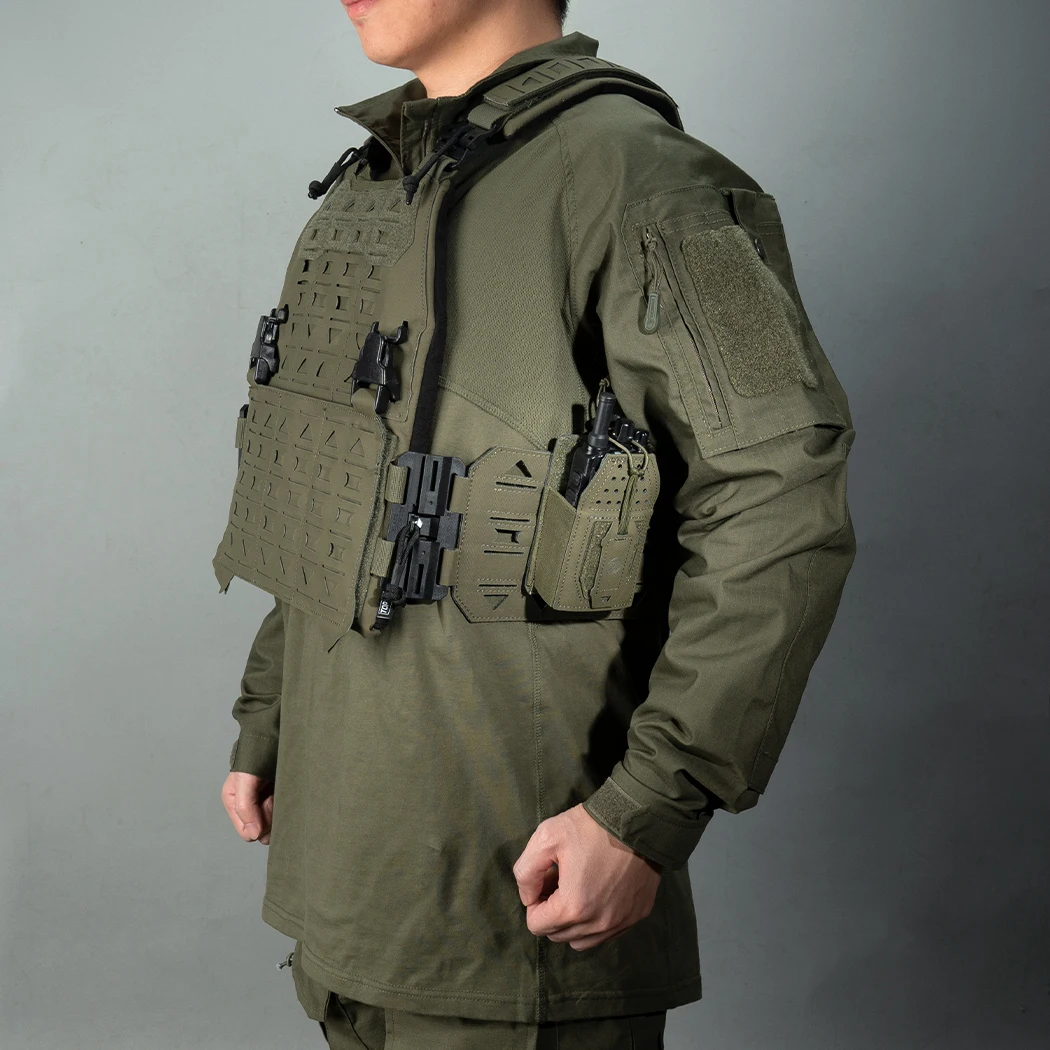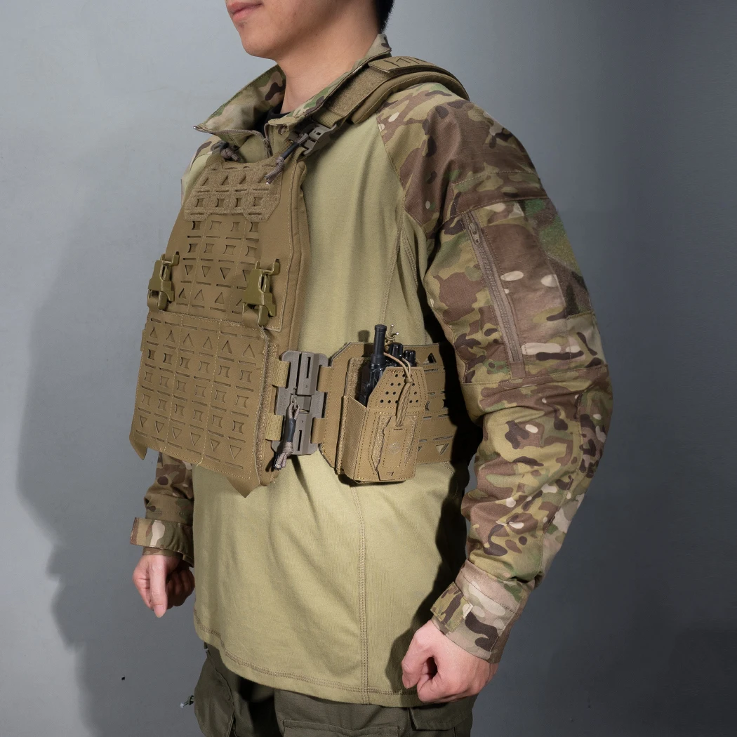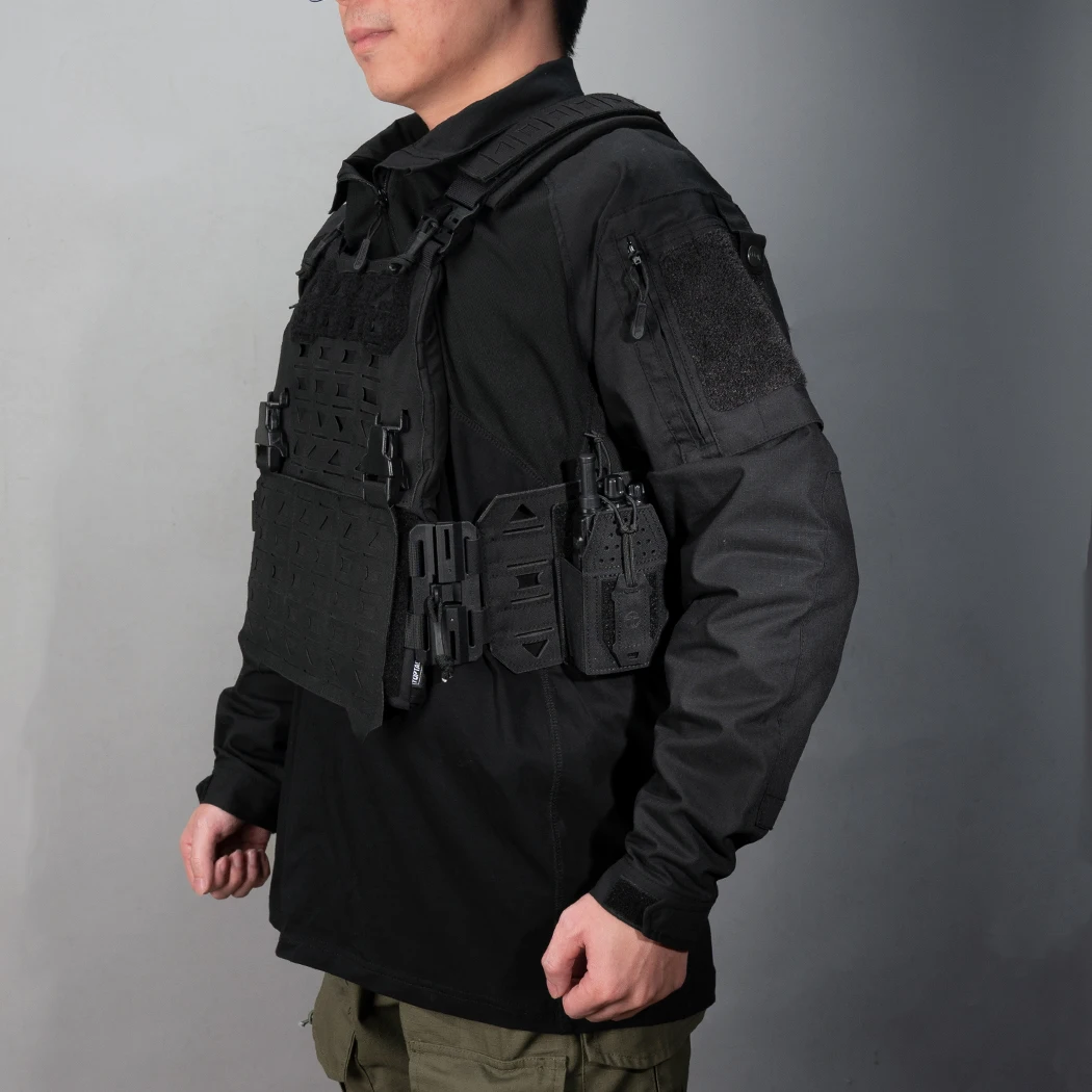 De vuelta con el sistema Molle, se puede conectar a cualquier engranaje táctico Molle, como portador de placa, mochila, cinturón...
