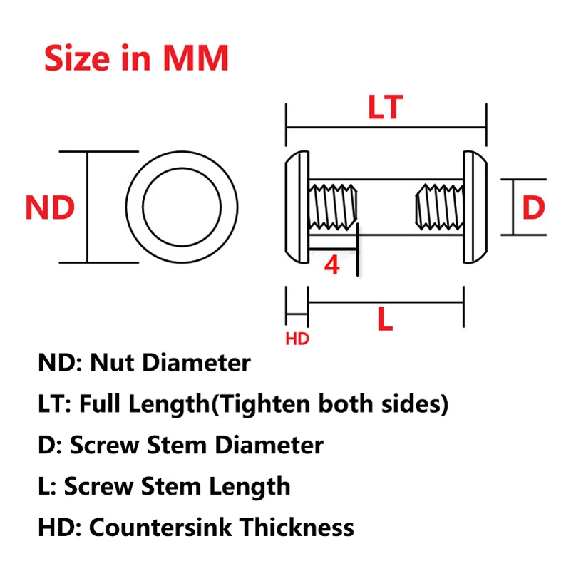 12 juegos por loteMango de cuchillo de acero inoxidable M4 Pares Tornillos de bloqueo Sujetadores de remache