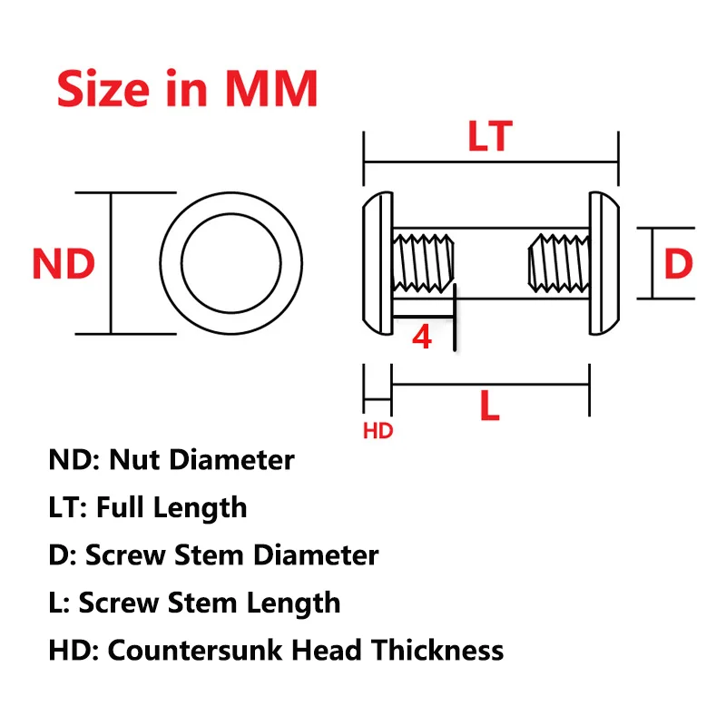 D (diámetro del vástago del tornillo): 5MM