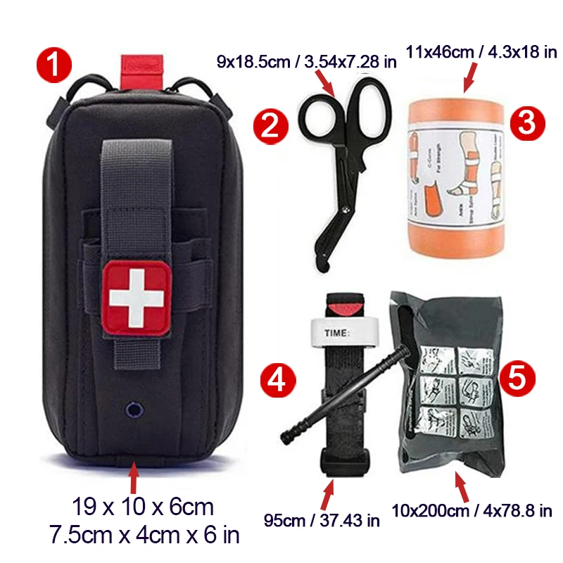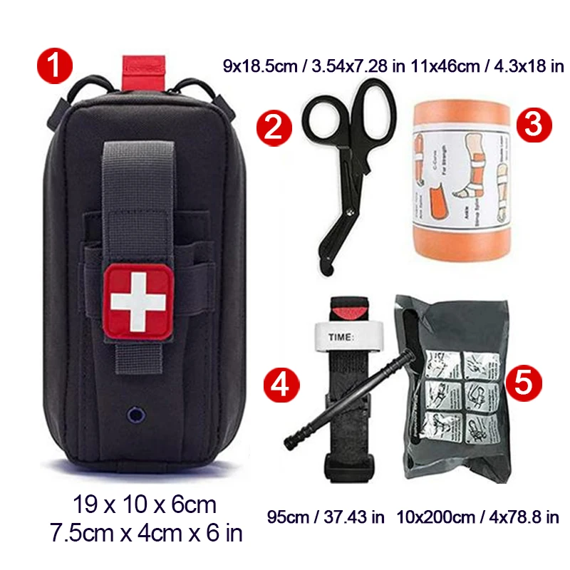 Torniquete táctico para exteriores, equipo de supervivencia, bolsa de nailon Molle, botiquín de primeros auxilios de emergencia, vendaje israelí