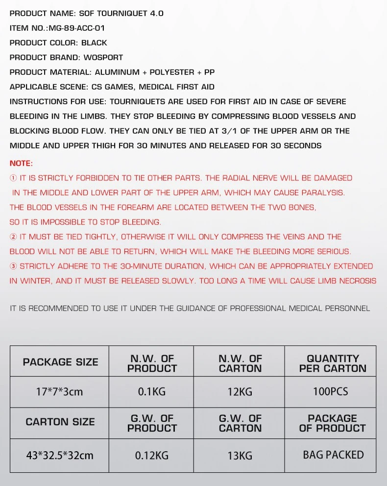 Torniquete táctico SOF 4,0, operación con una sola mano, suministros de primeros auxilios, equipo de combate, banda de compresión de 1,5 pulgadas para Control de sangrado