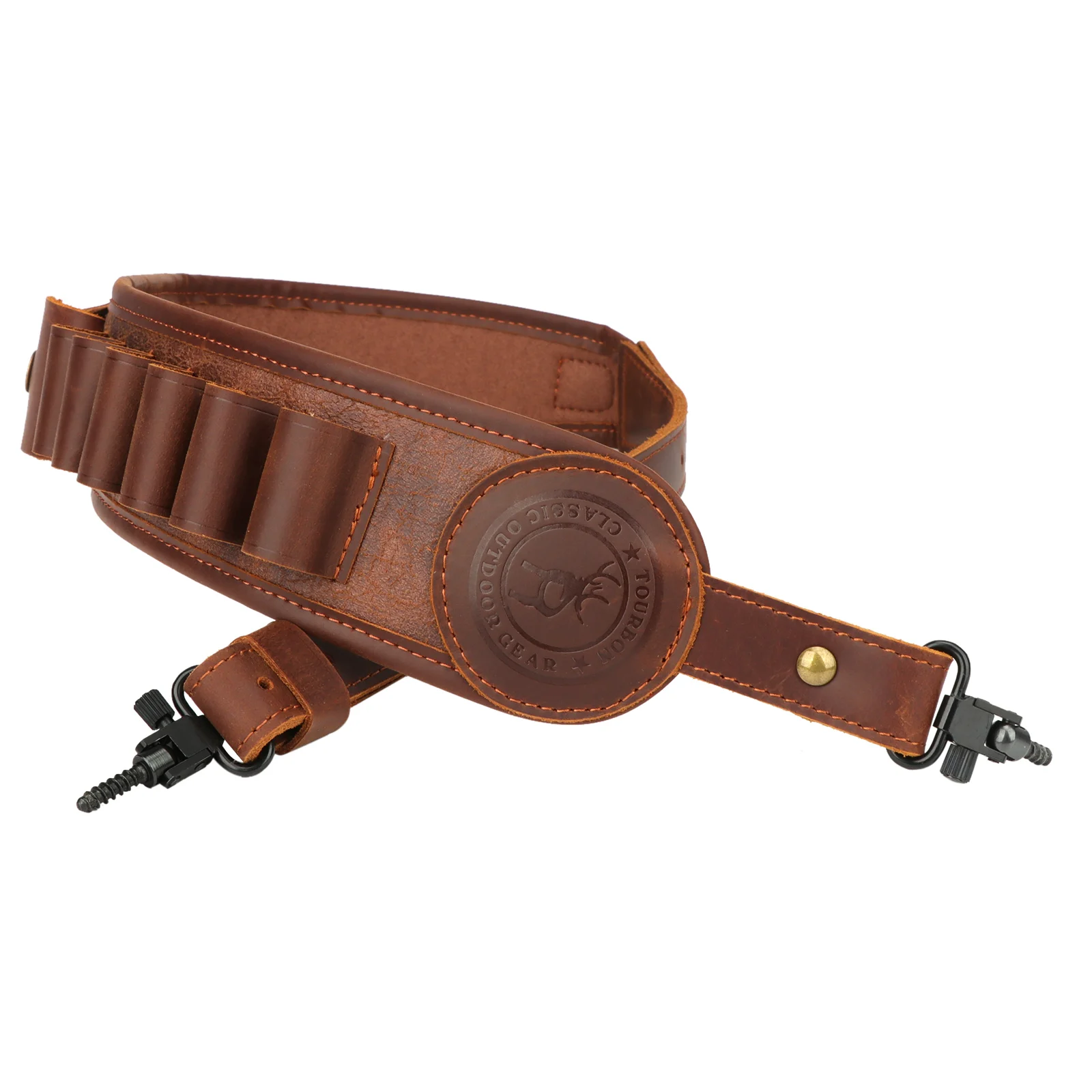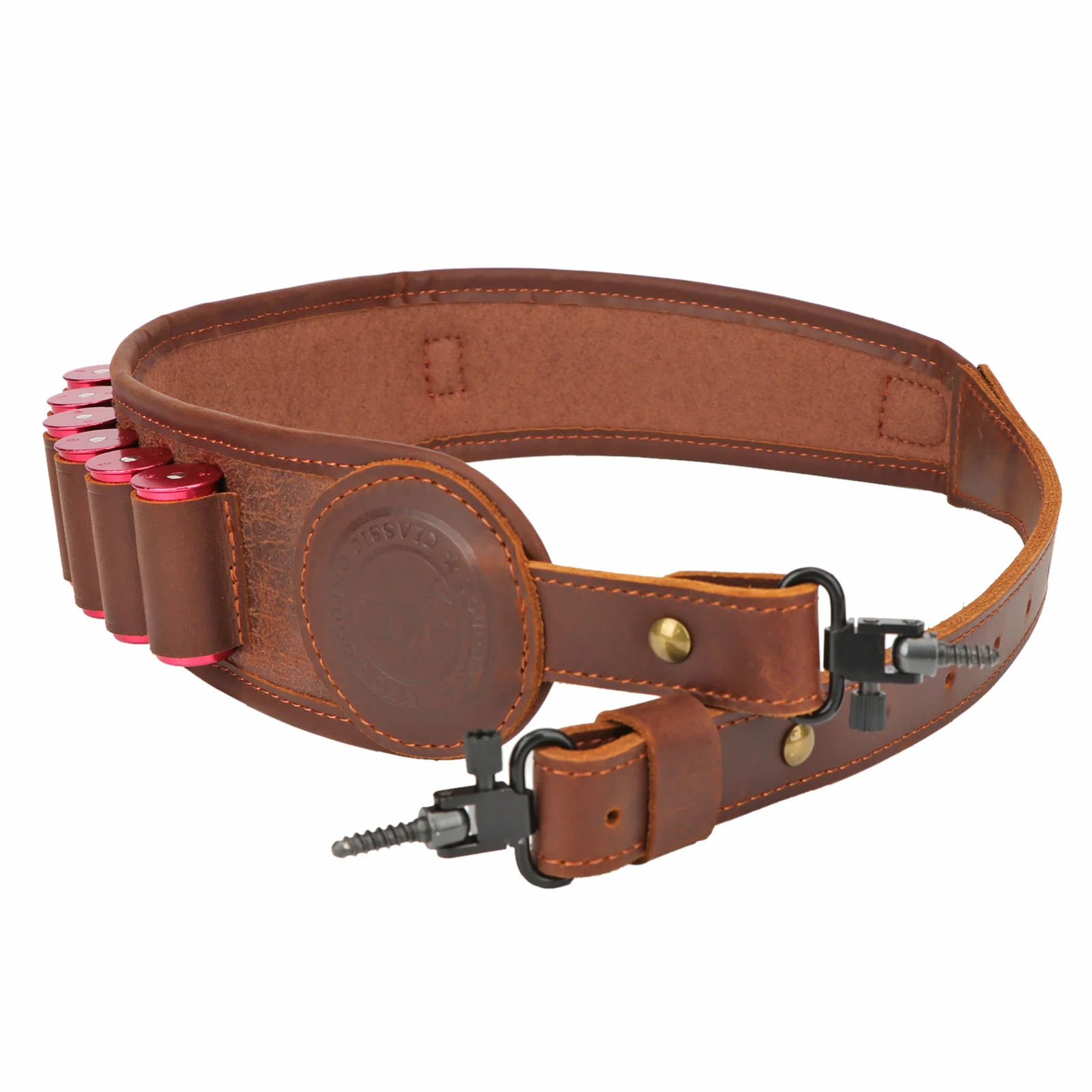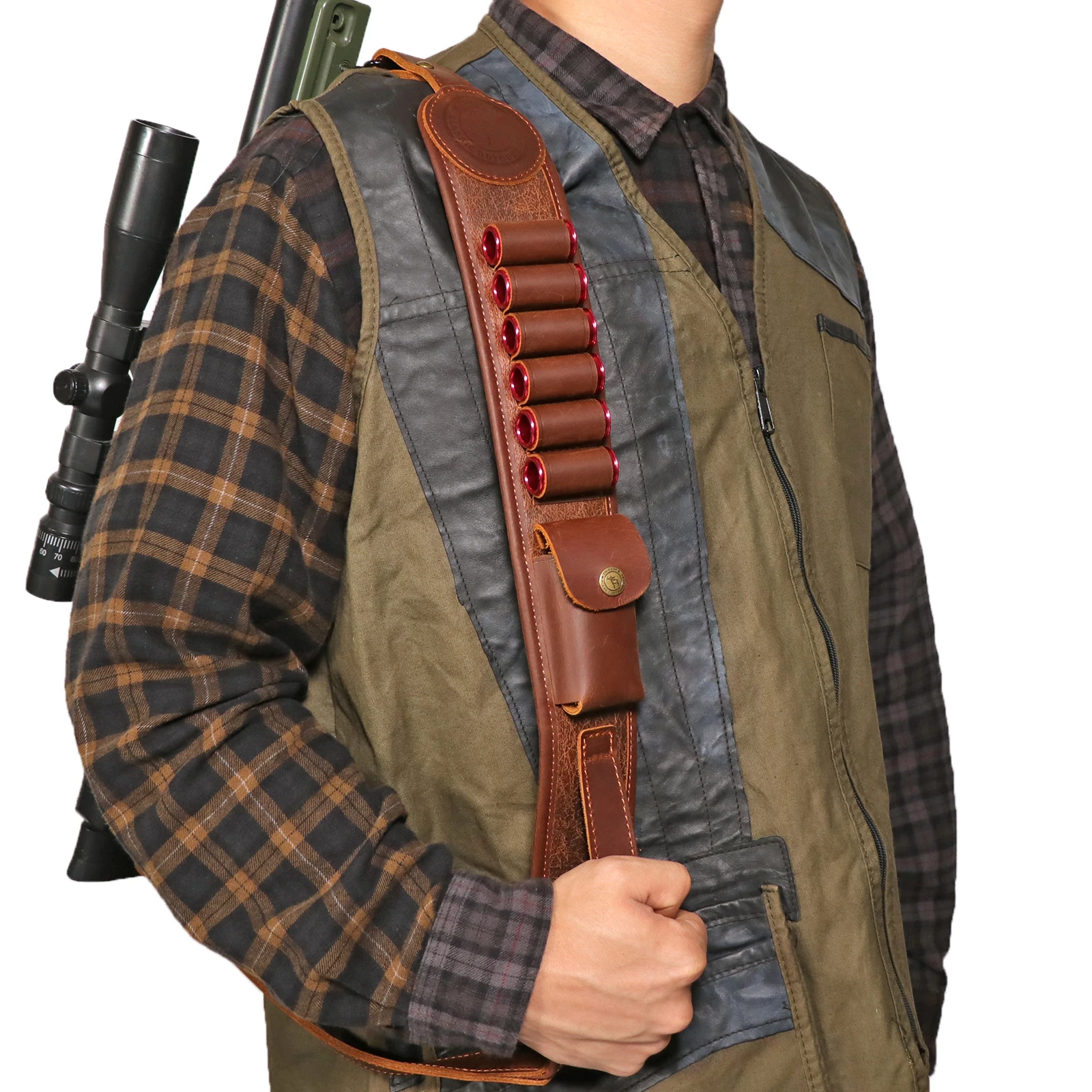 - El cabestrillo para rifle tiene un soporte para cartuchos de 6 cartuchos para calibre 12.