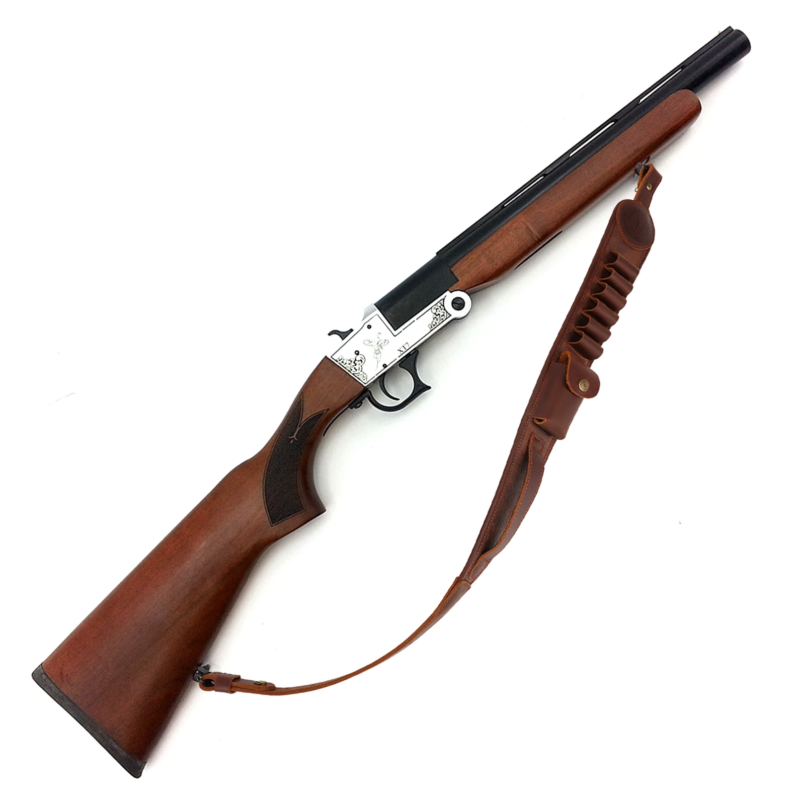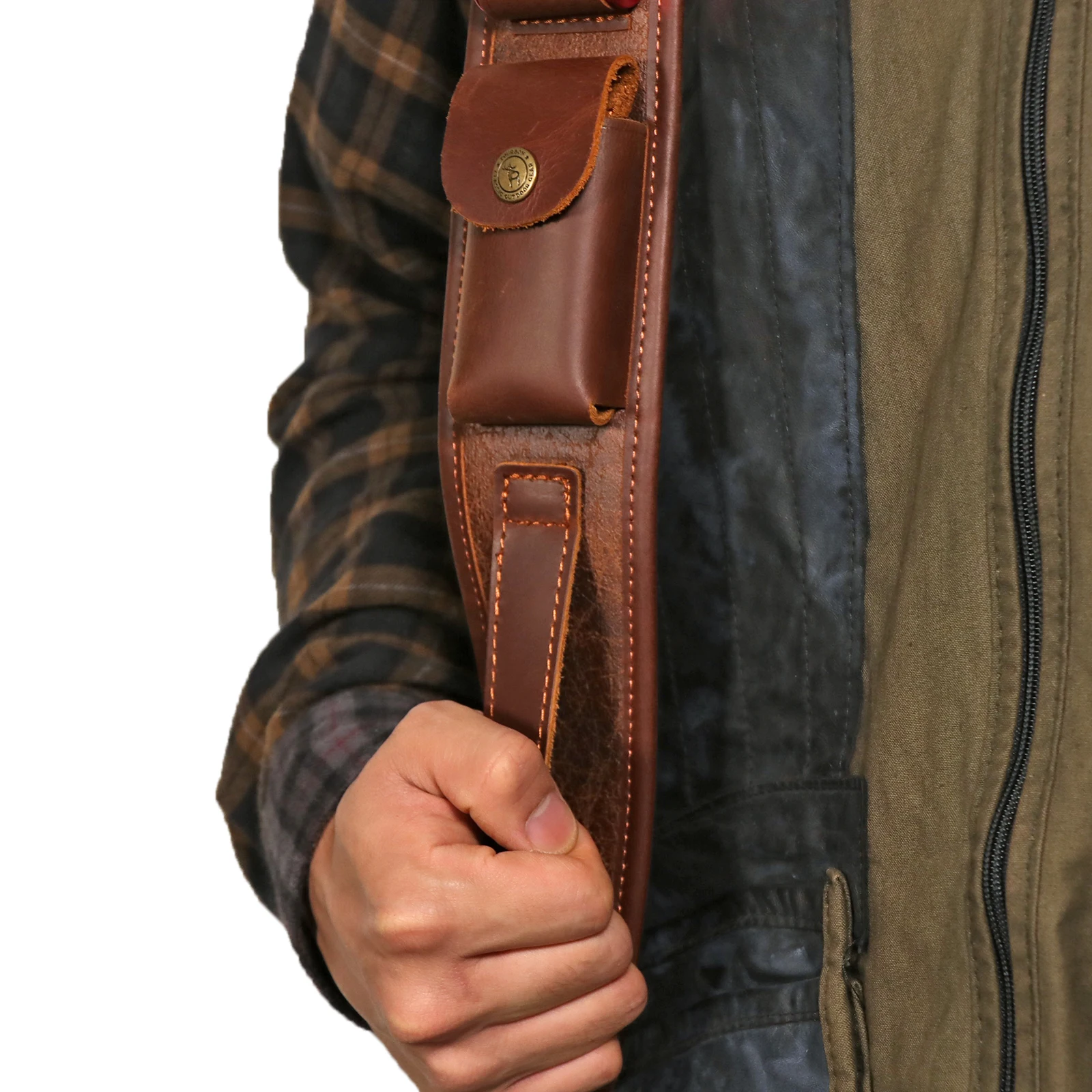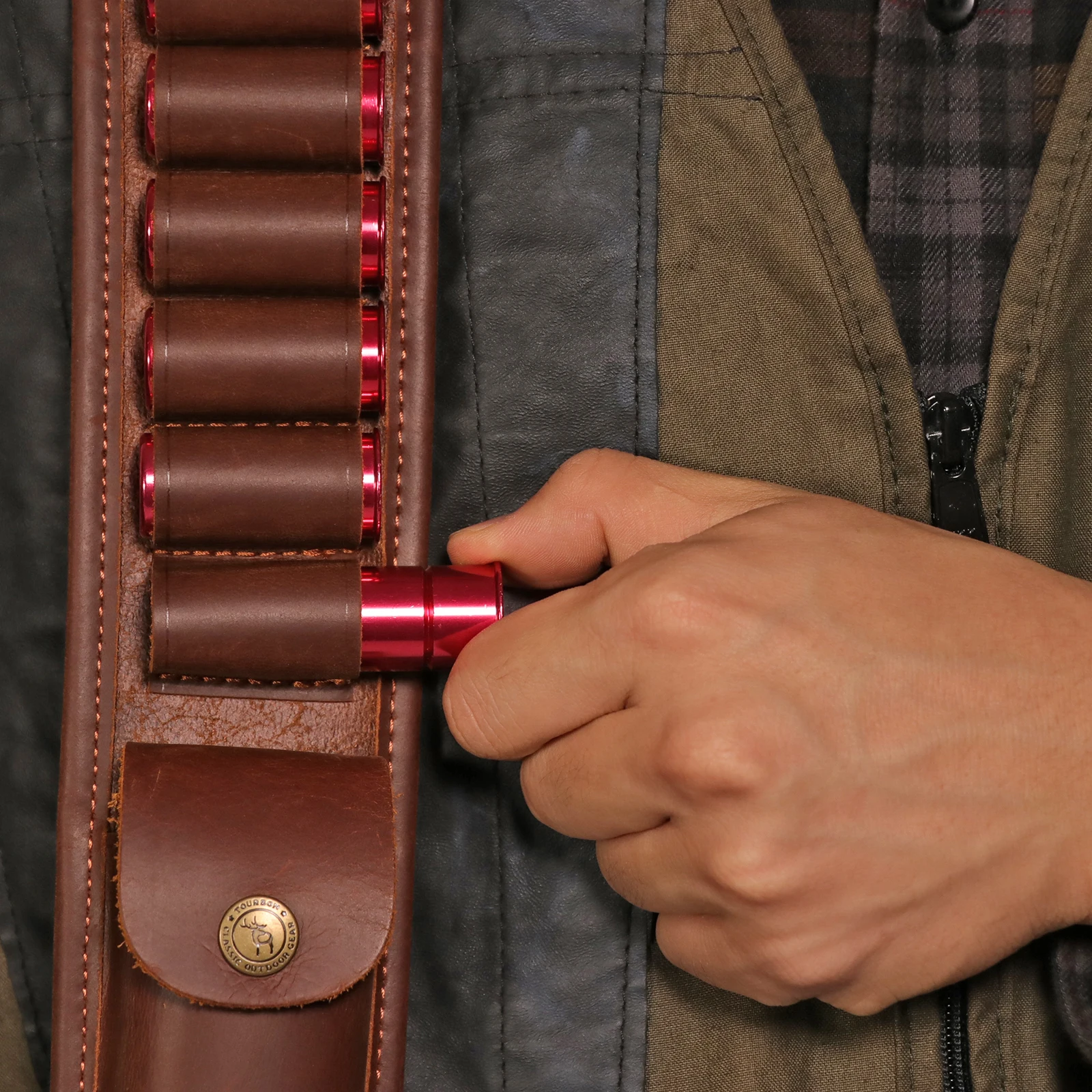 - El cabestrillo para rifle tiene un soporte para cartuchos de 6 cartuchos para calibre 12.