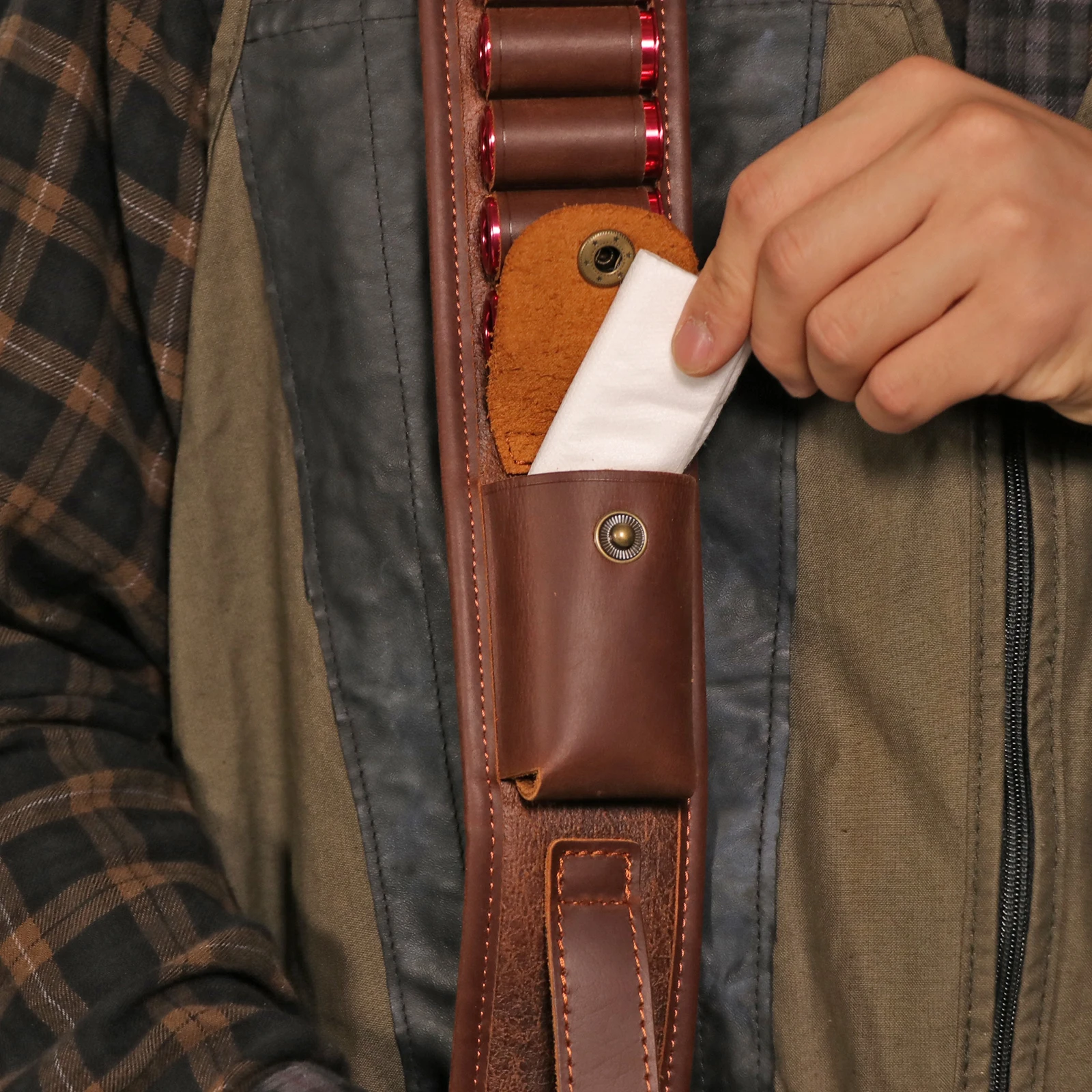 - Viene con una pequeña bolsa de cuero que puede contener accesorios de caza.