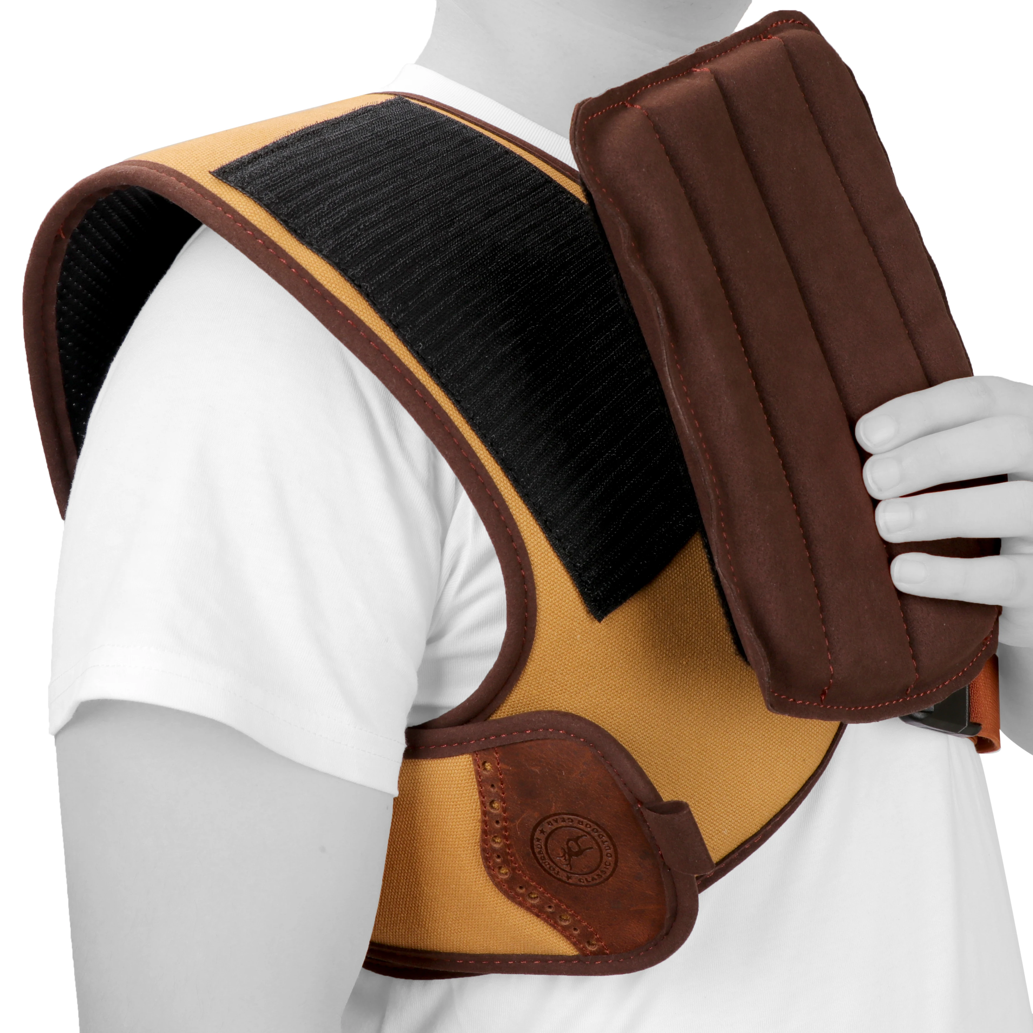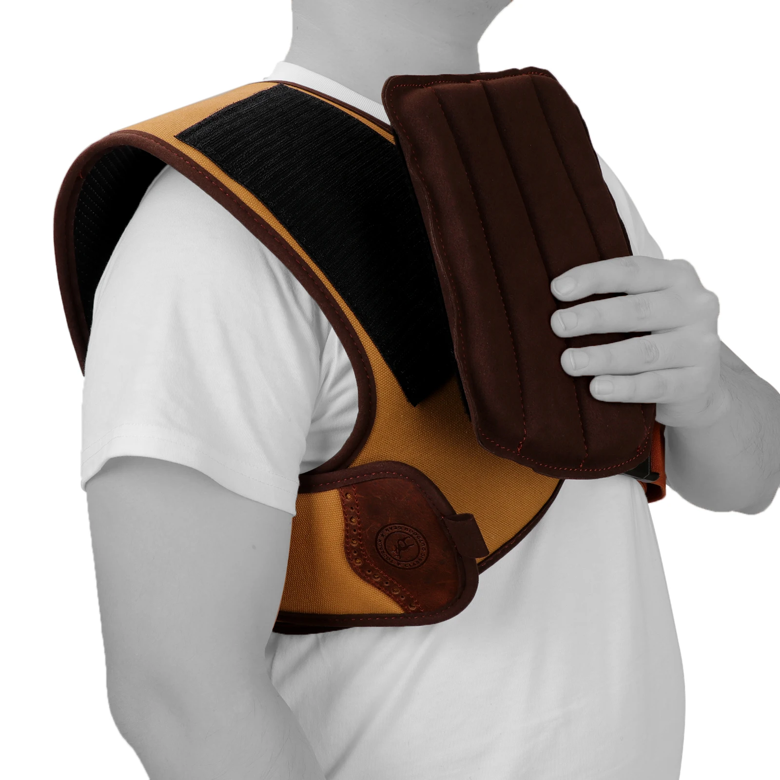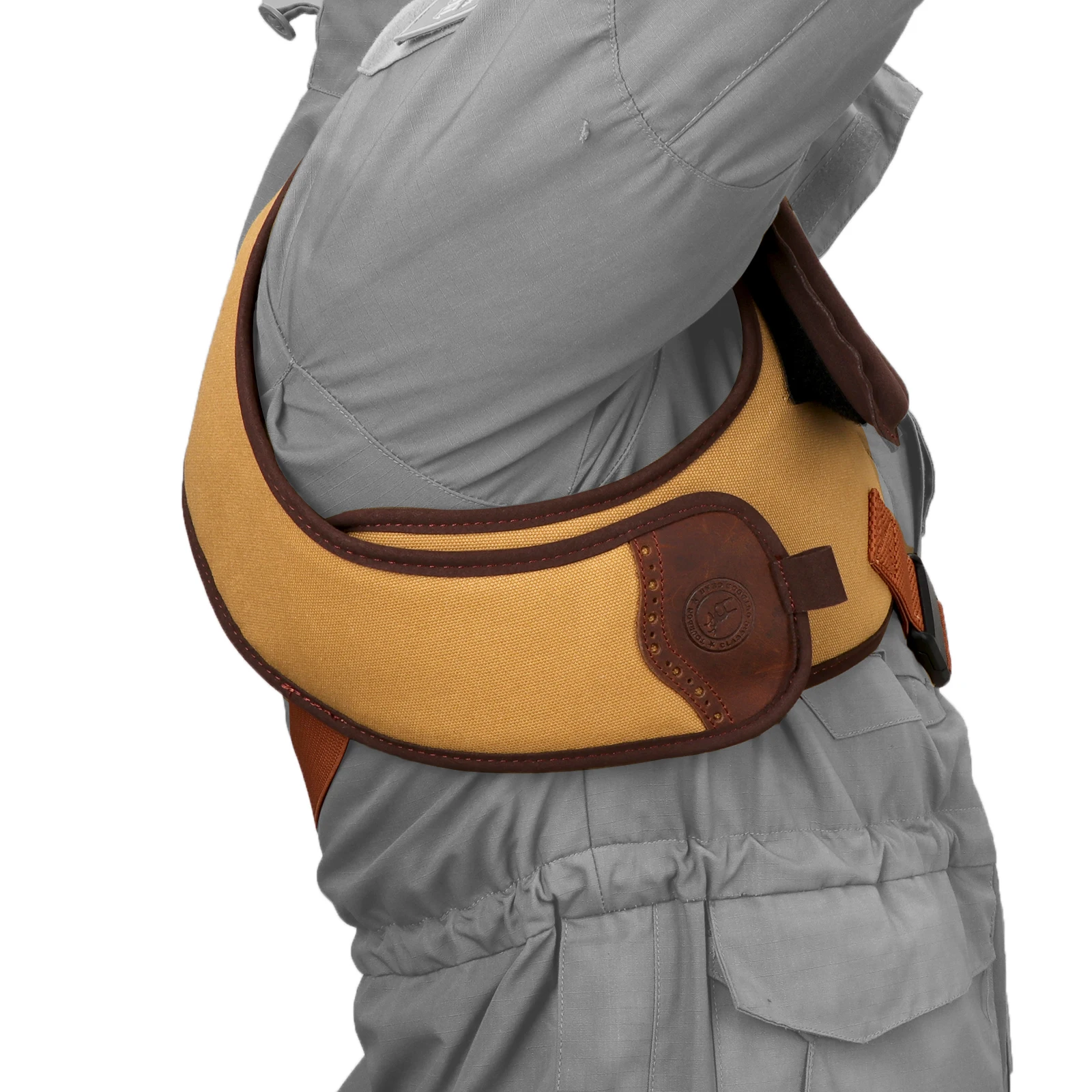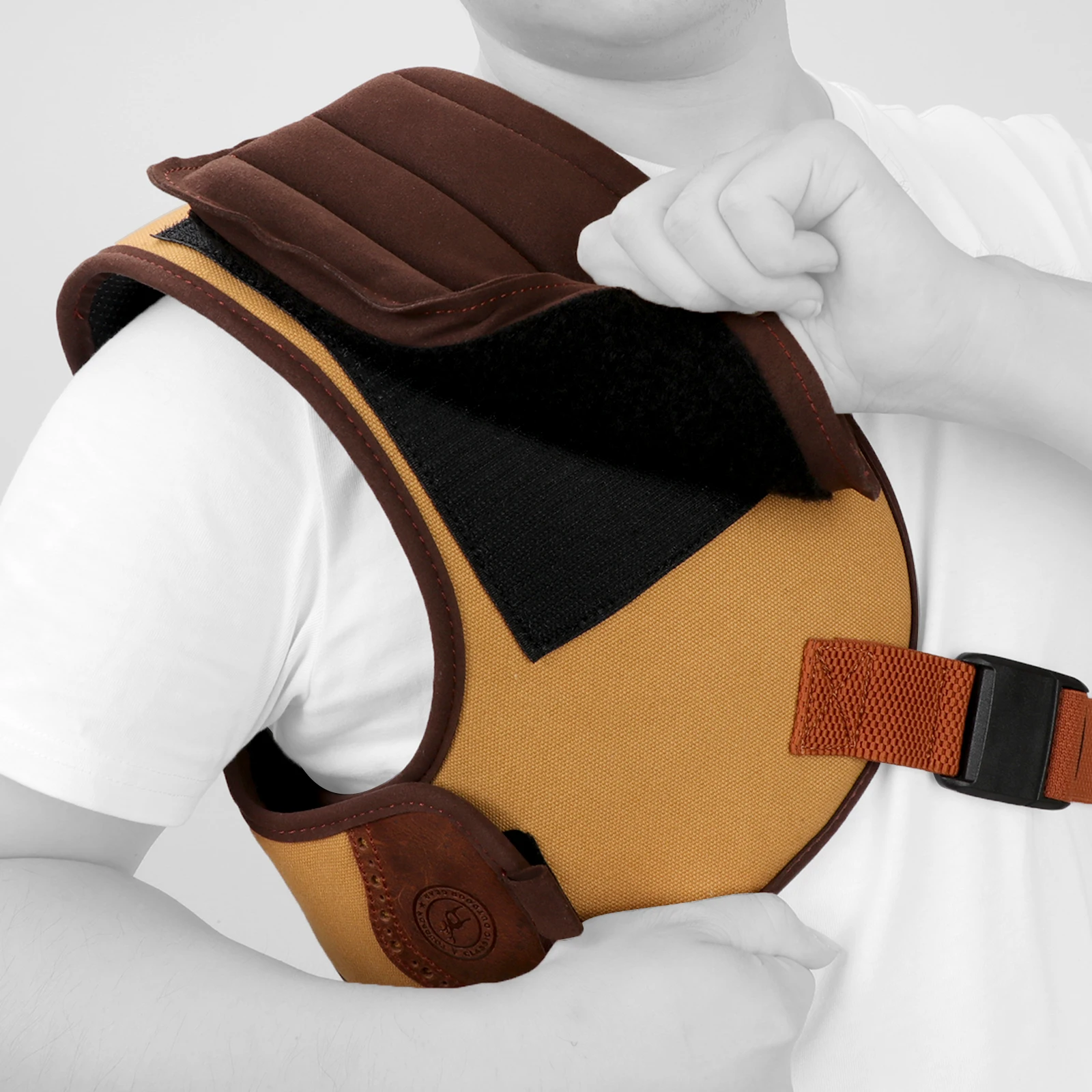 -Esta hombrera de tiro se puede llevar en el hombro derecho y se sujeta con un cierre lateral fácilmente ajustable para un ajuste seguro.