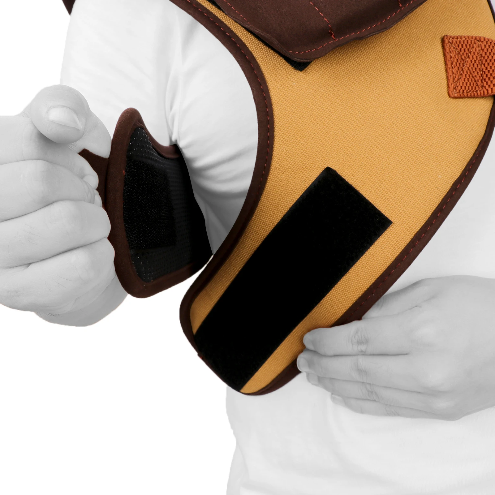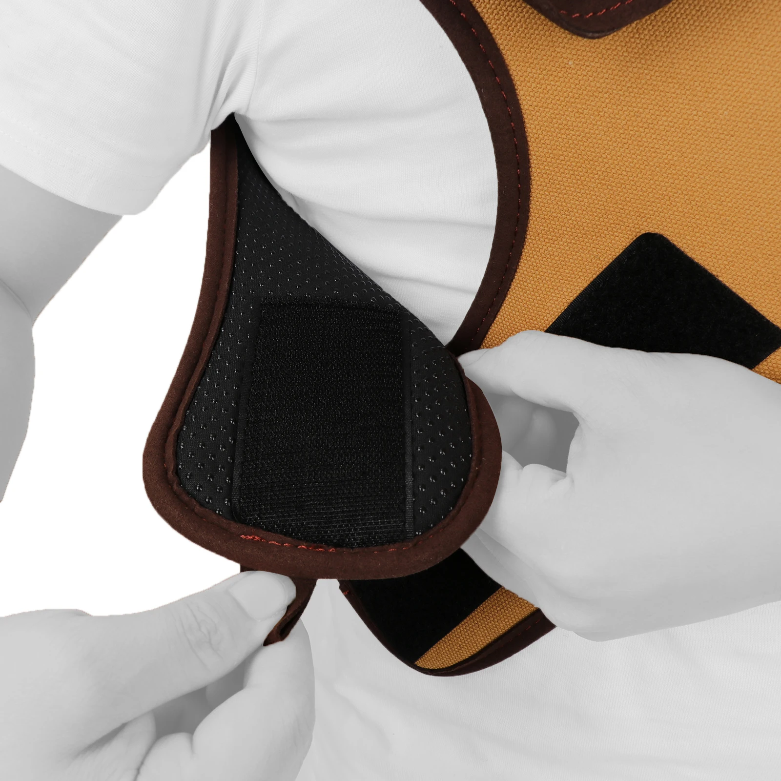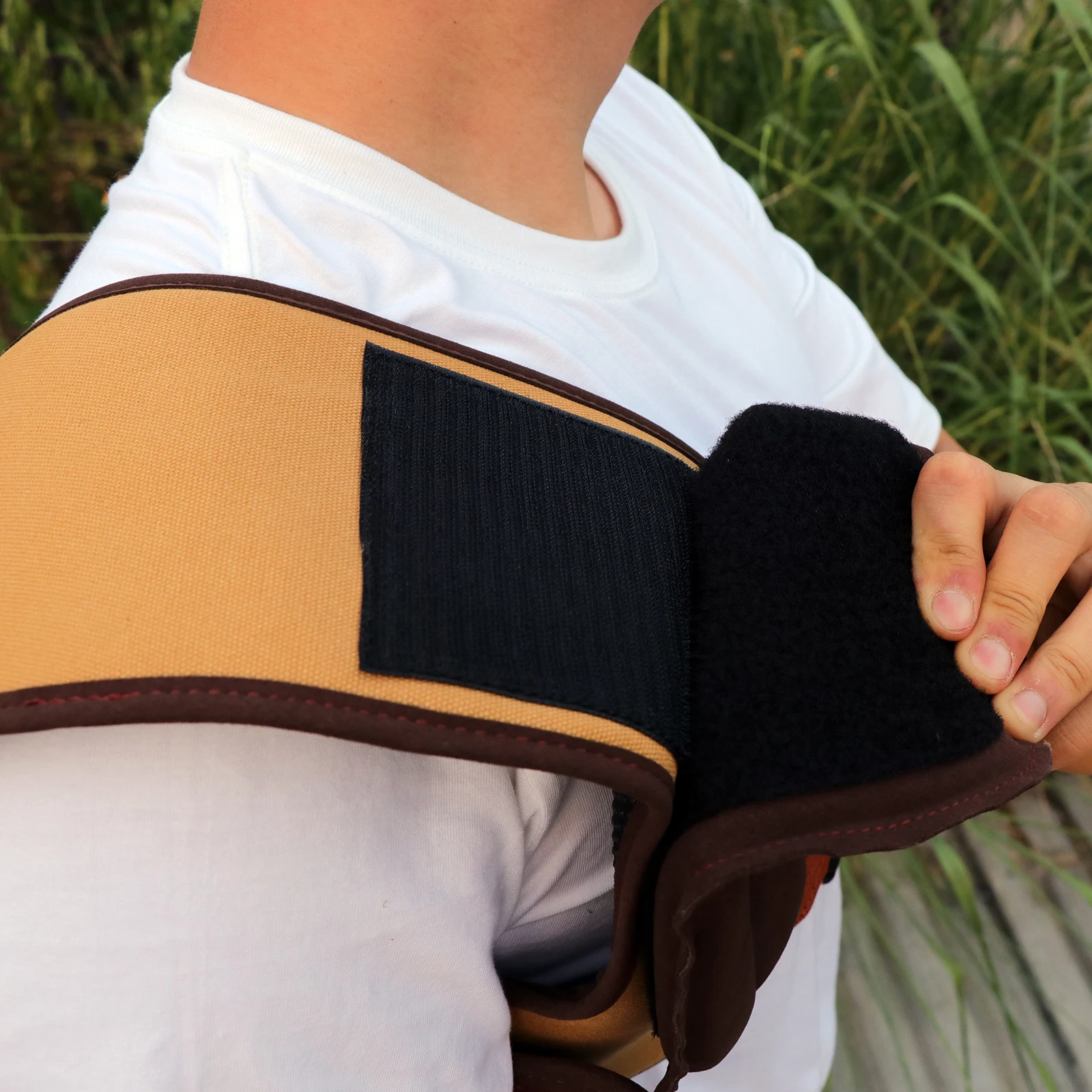 -Esta hombrera de tiro se puede llevar en el hombro derecho y se sujeta con un cierre lateral fácilmente ajustable para un ajuste seguro.