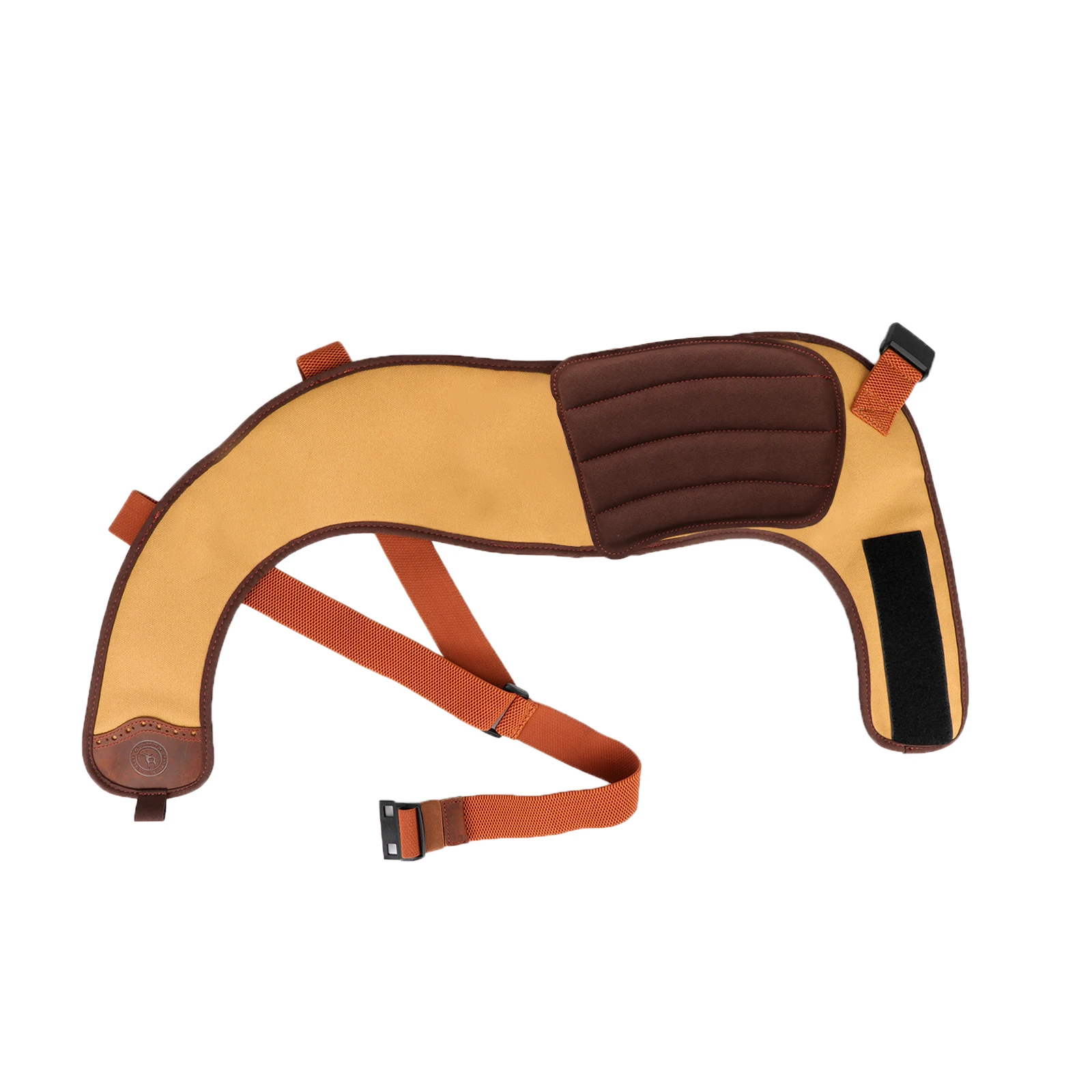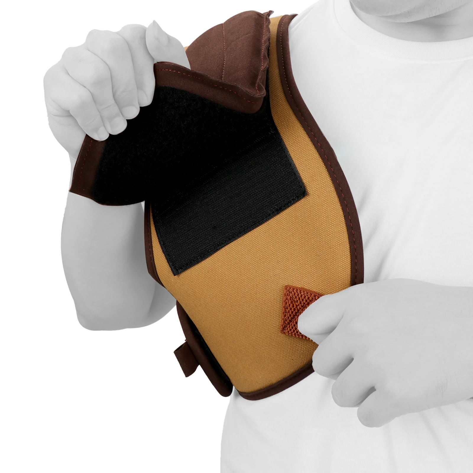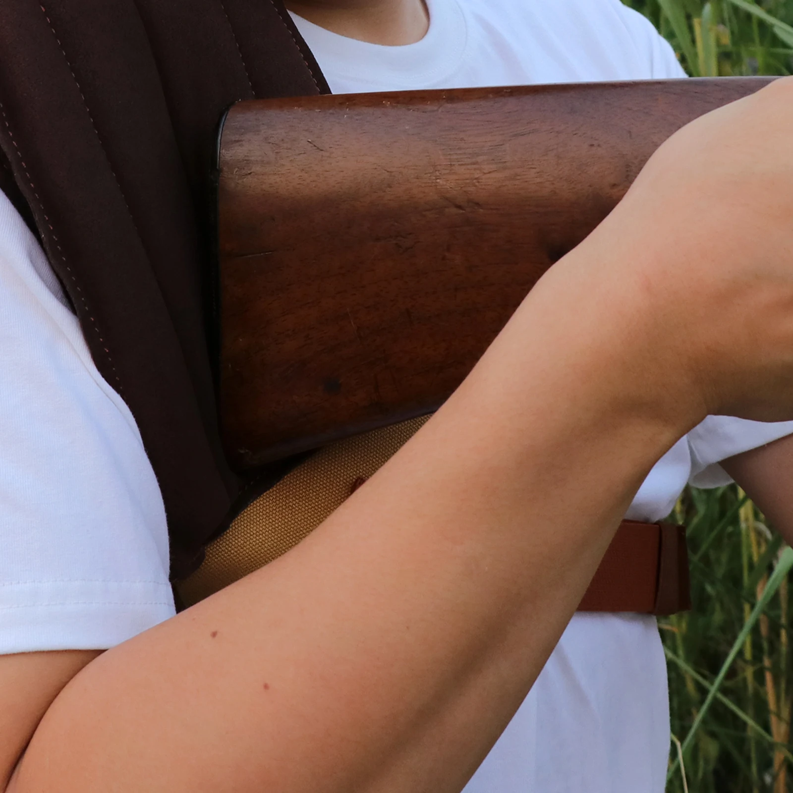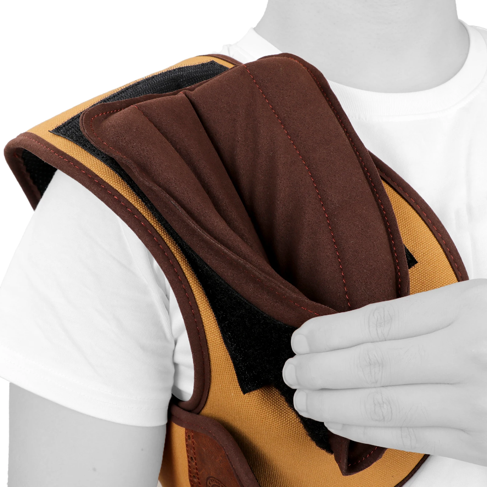 -Esta hombrera de tiro se puede llevar en el hombro derecho y se sujeta con un cierre lateral fácilmente ajustable para un ajuste seguro.