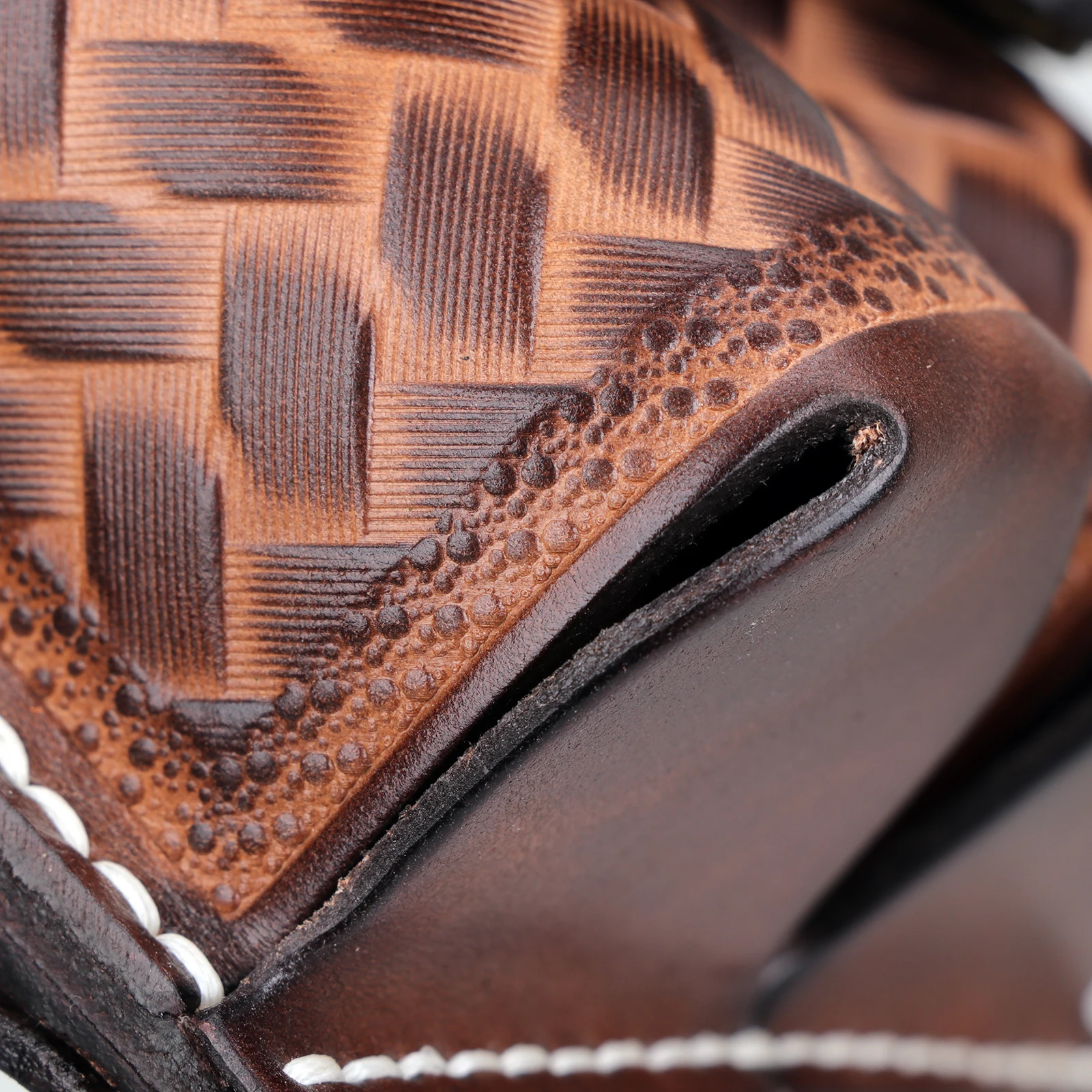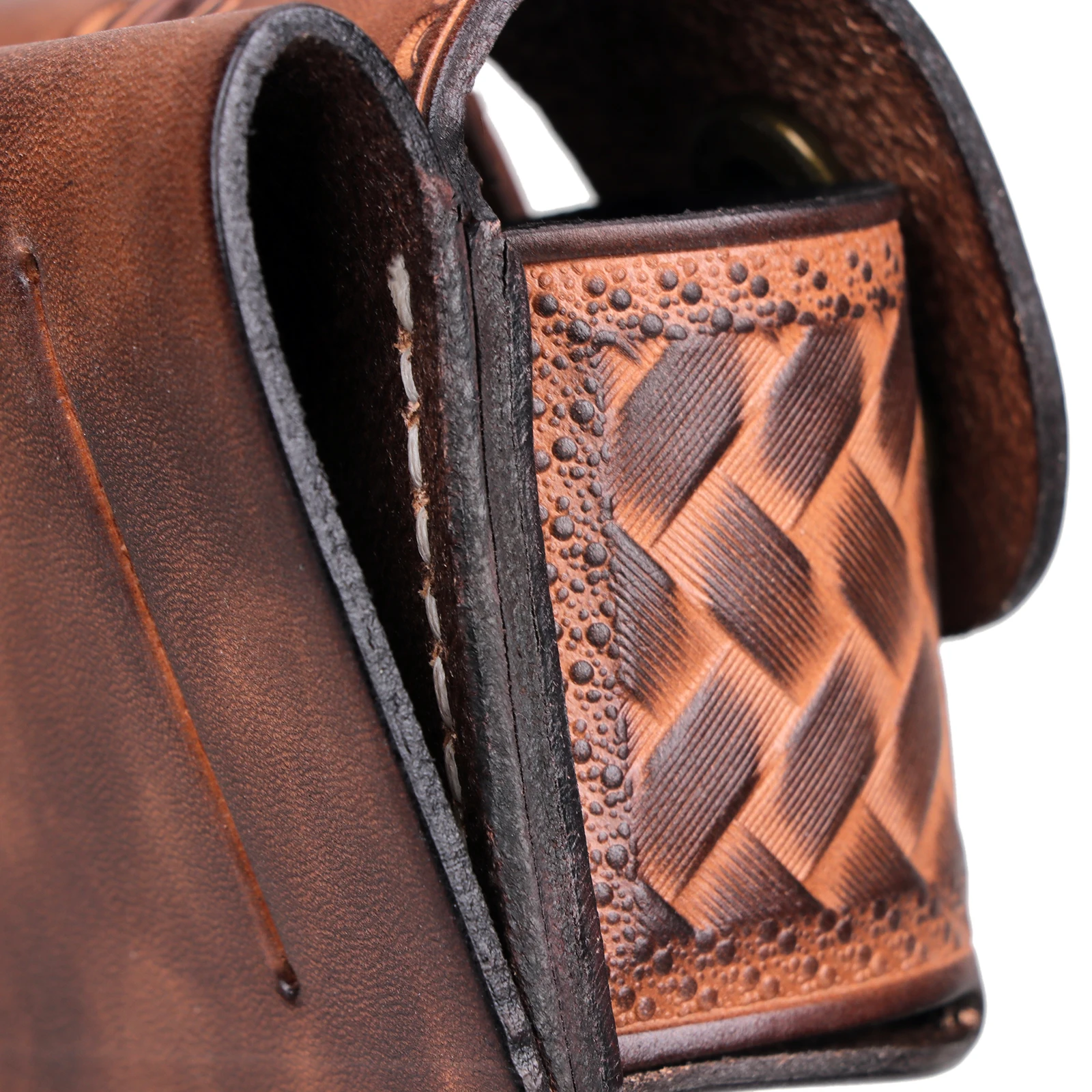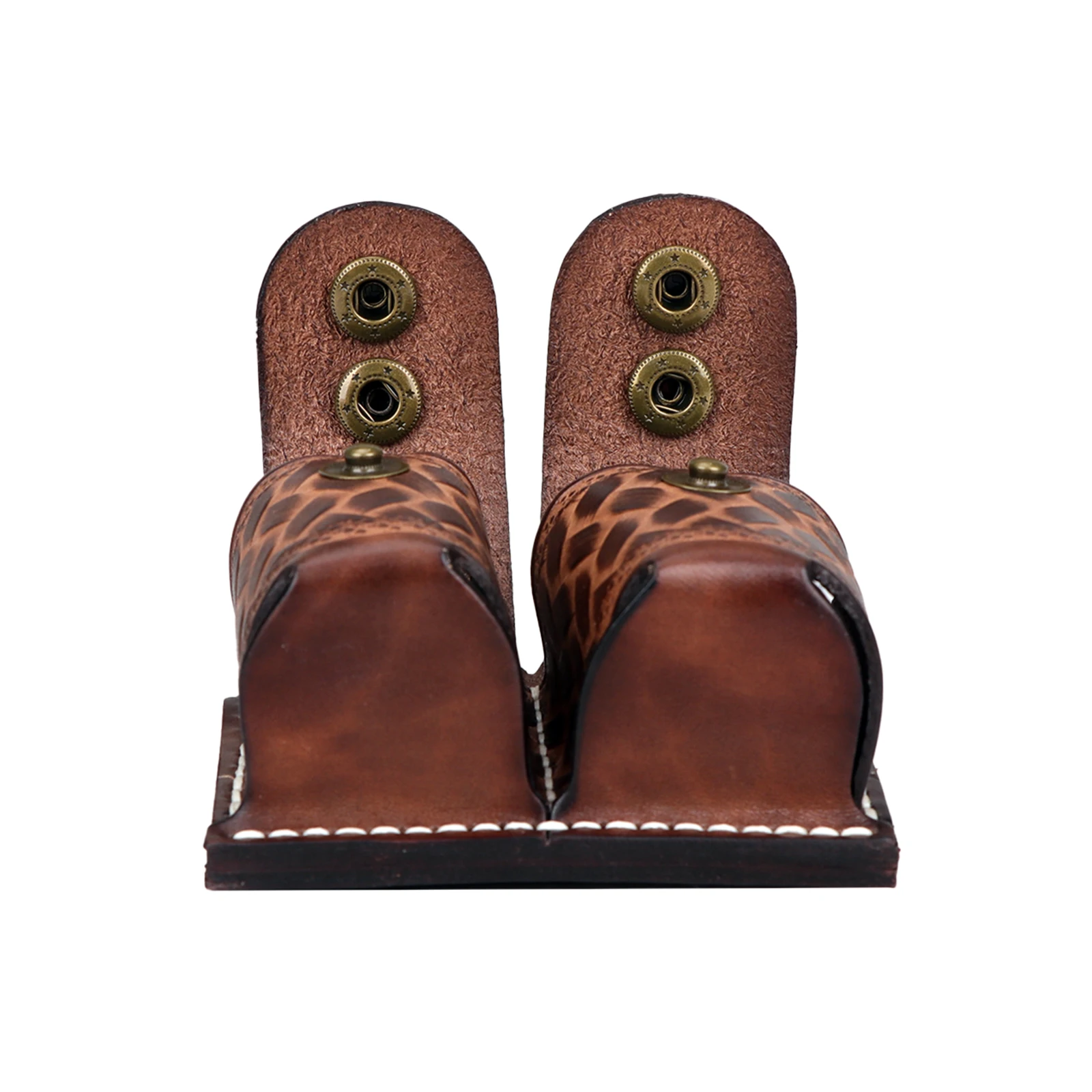 - Hecho de cuero de alta calidad, que es lo suficientemente grueso como para brindar protección y comodidad cuando se usa durante largos períodos.