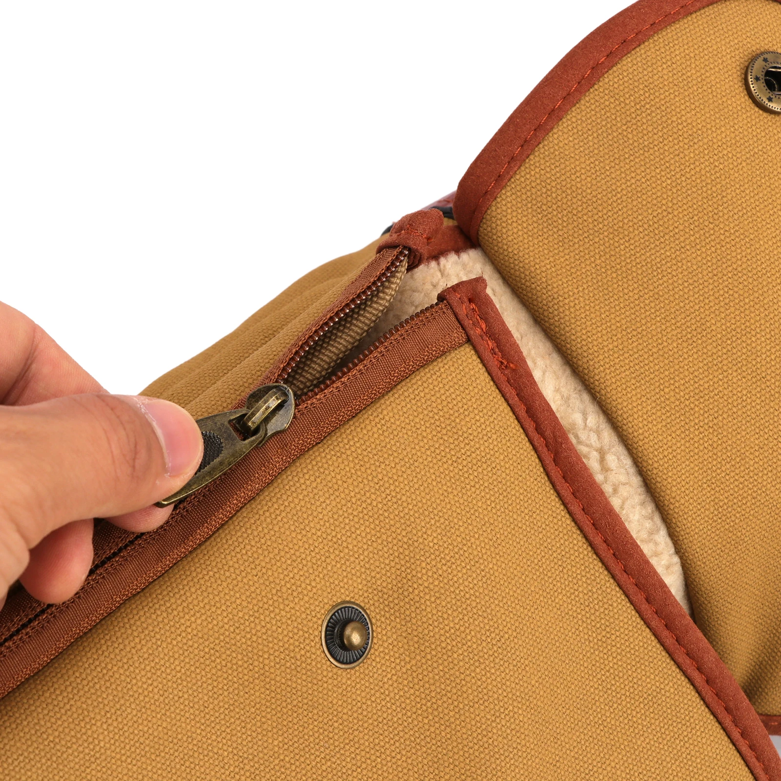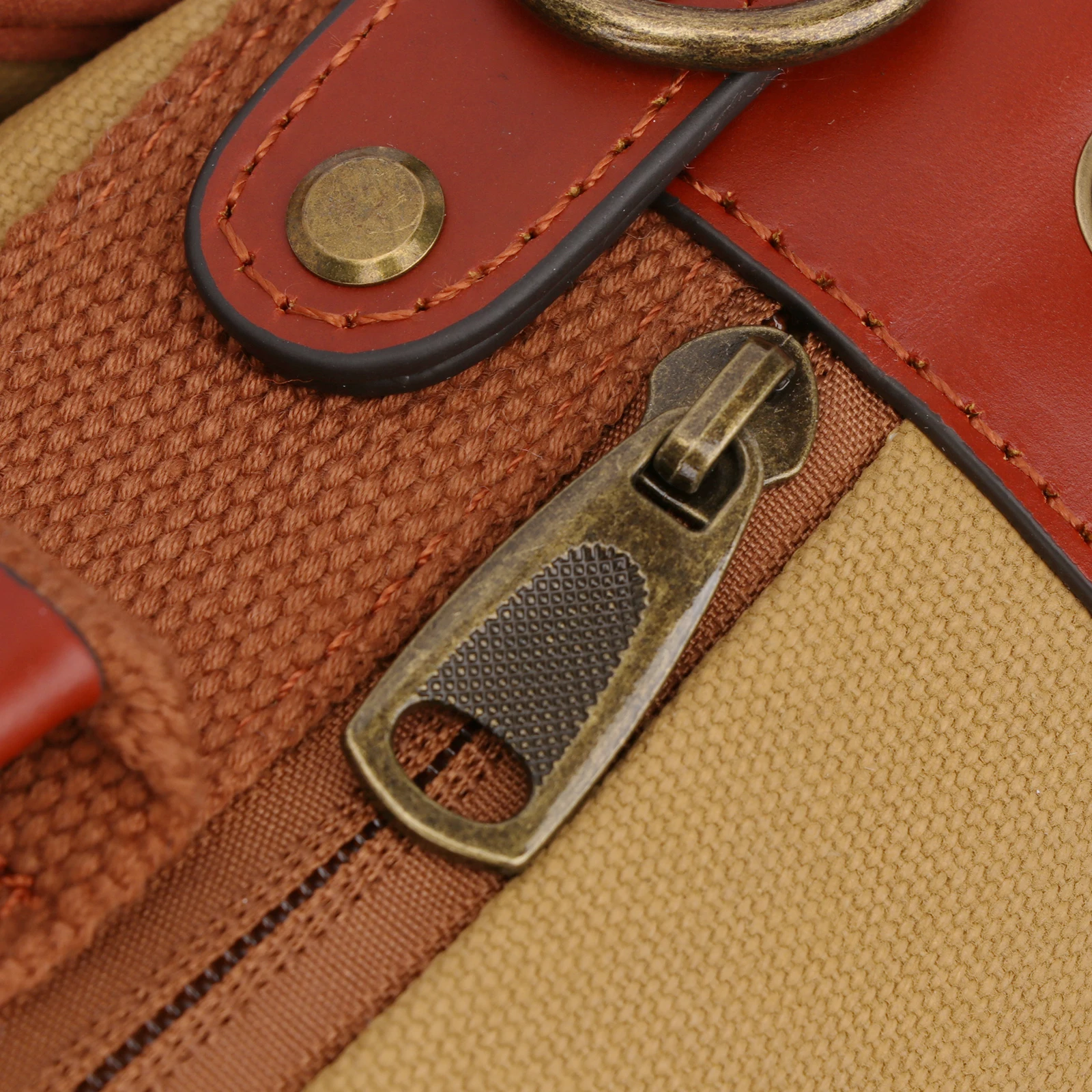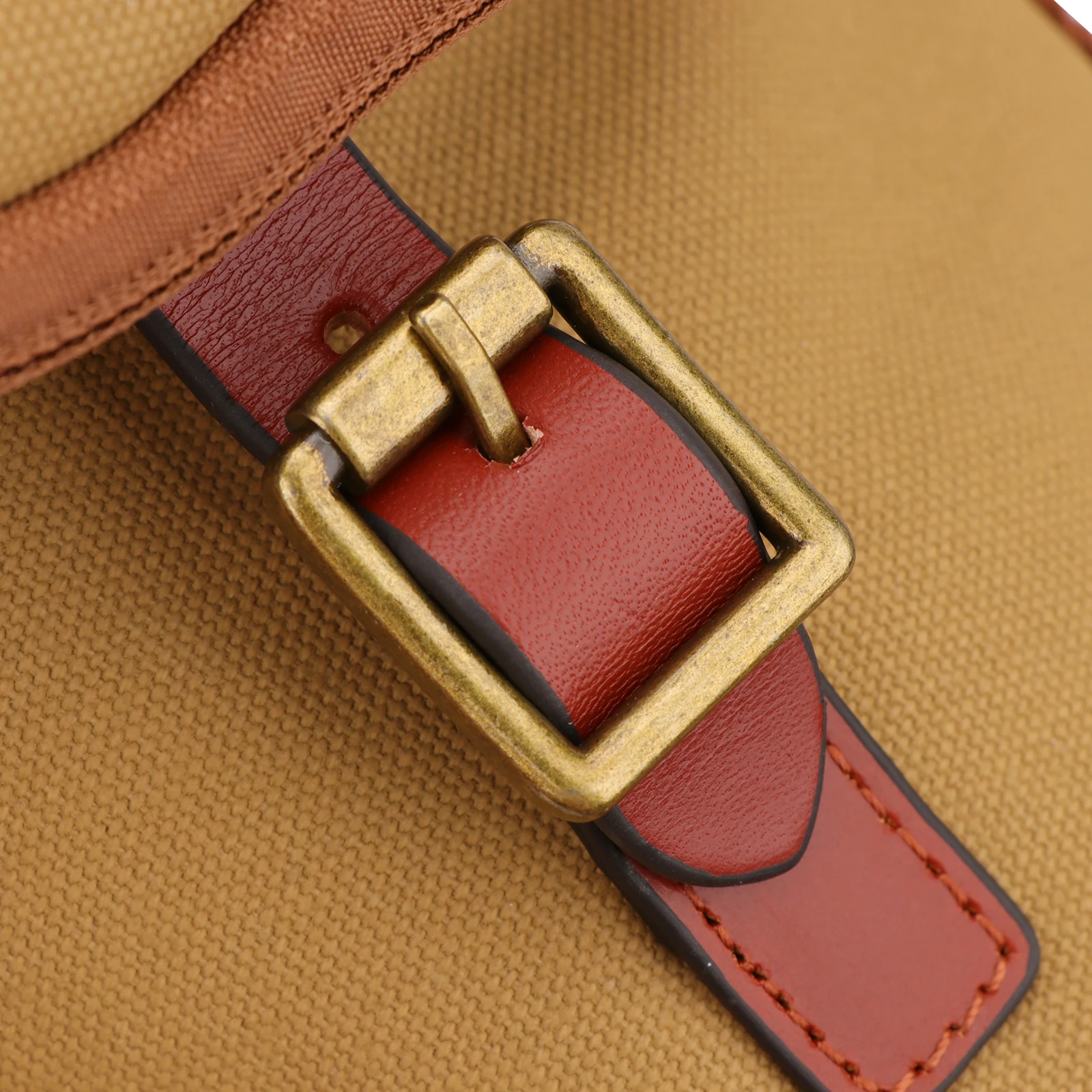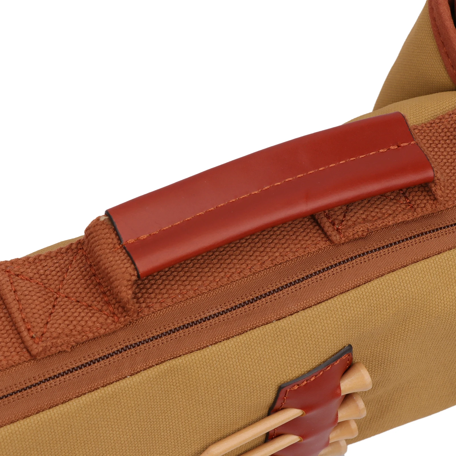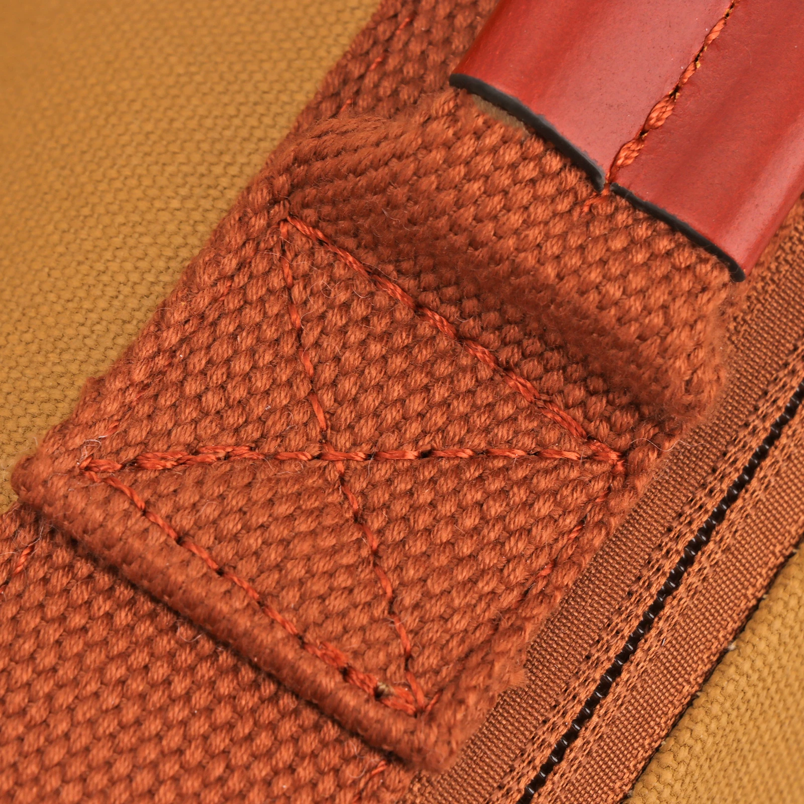 - Borde de cuero con cuerpo de lona, lona y cabestrillo ajustable de cuero