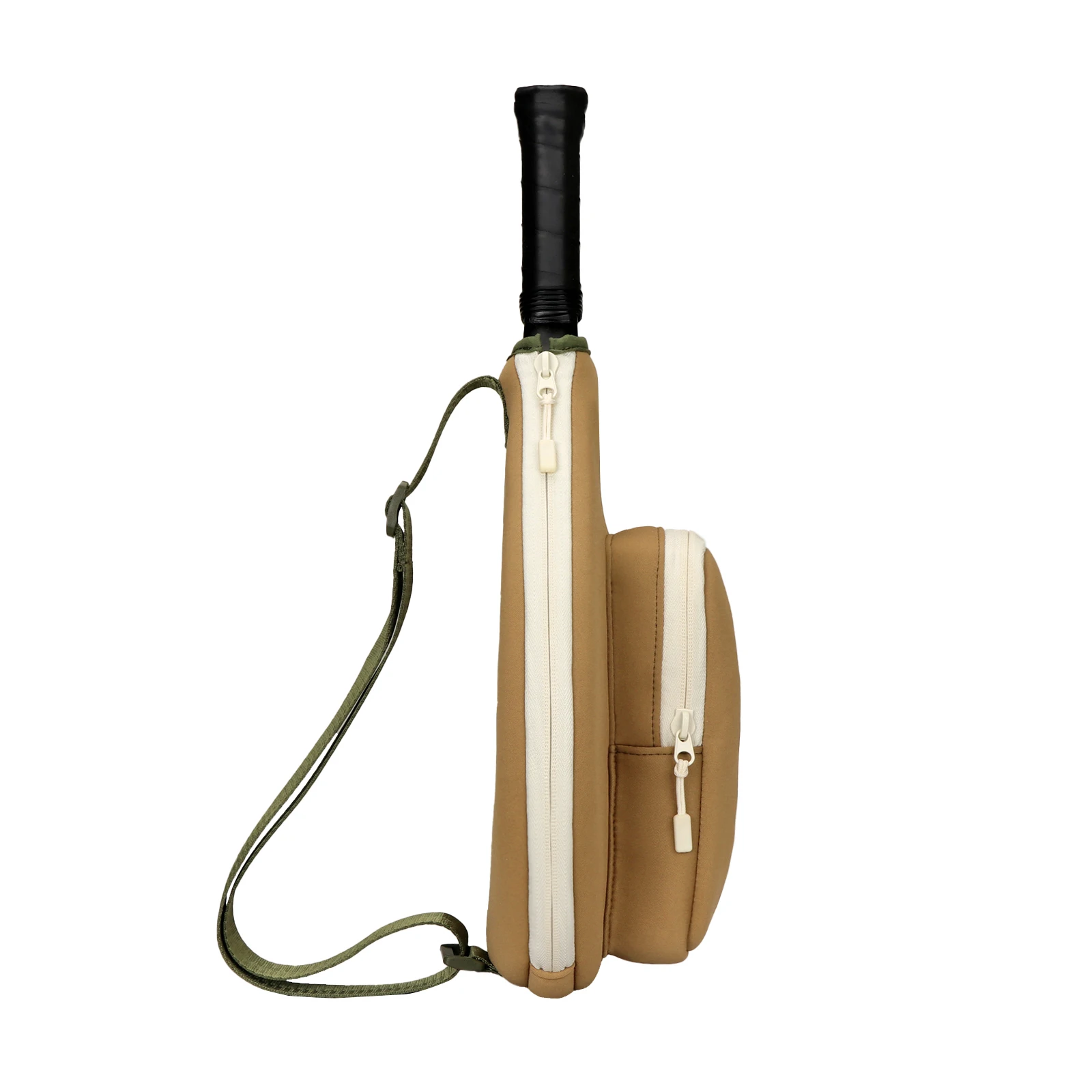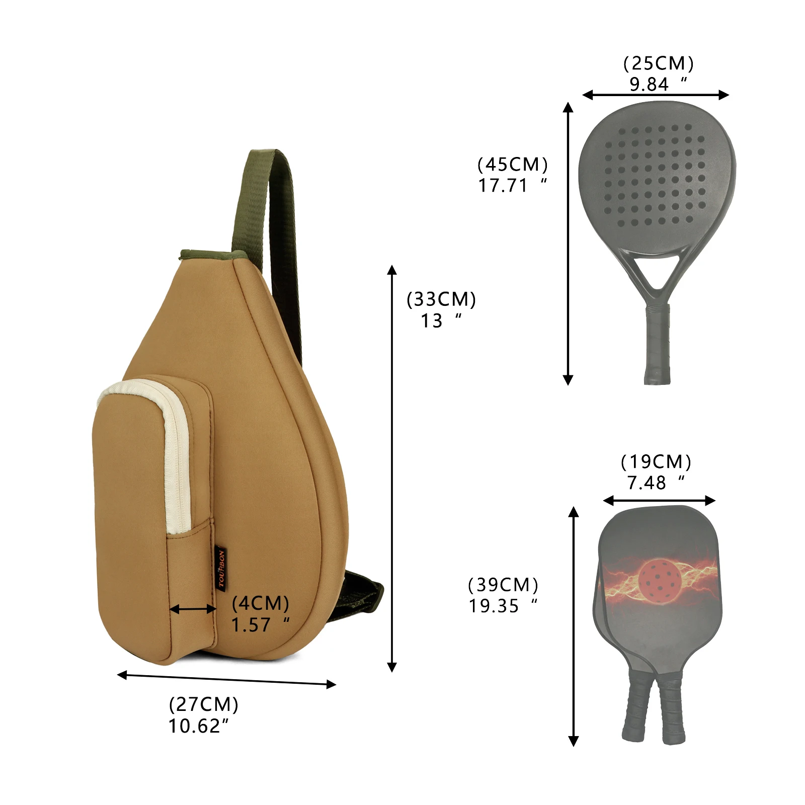Ligero y sencillo -Esta bolsa tipo bandolera para pickleball pddle tiene 13'' de largo y 10' de ancho máximo, y puede caber cómodamente en 1 raqueta de padel o 1 pddle de pickleball.Un pequeño bolsillo exterior con cremallera perfecto para guardar pelotas.Es súper simple y liviano para los engranajes de pickleball esenciales.