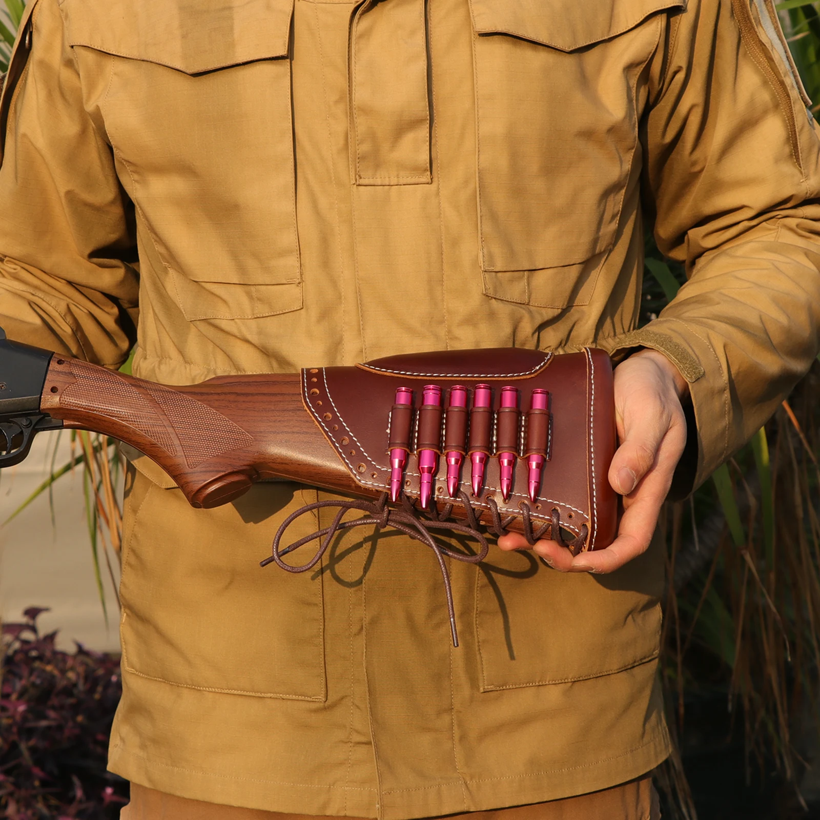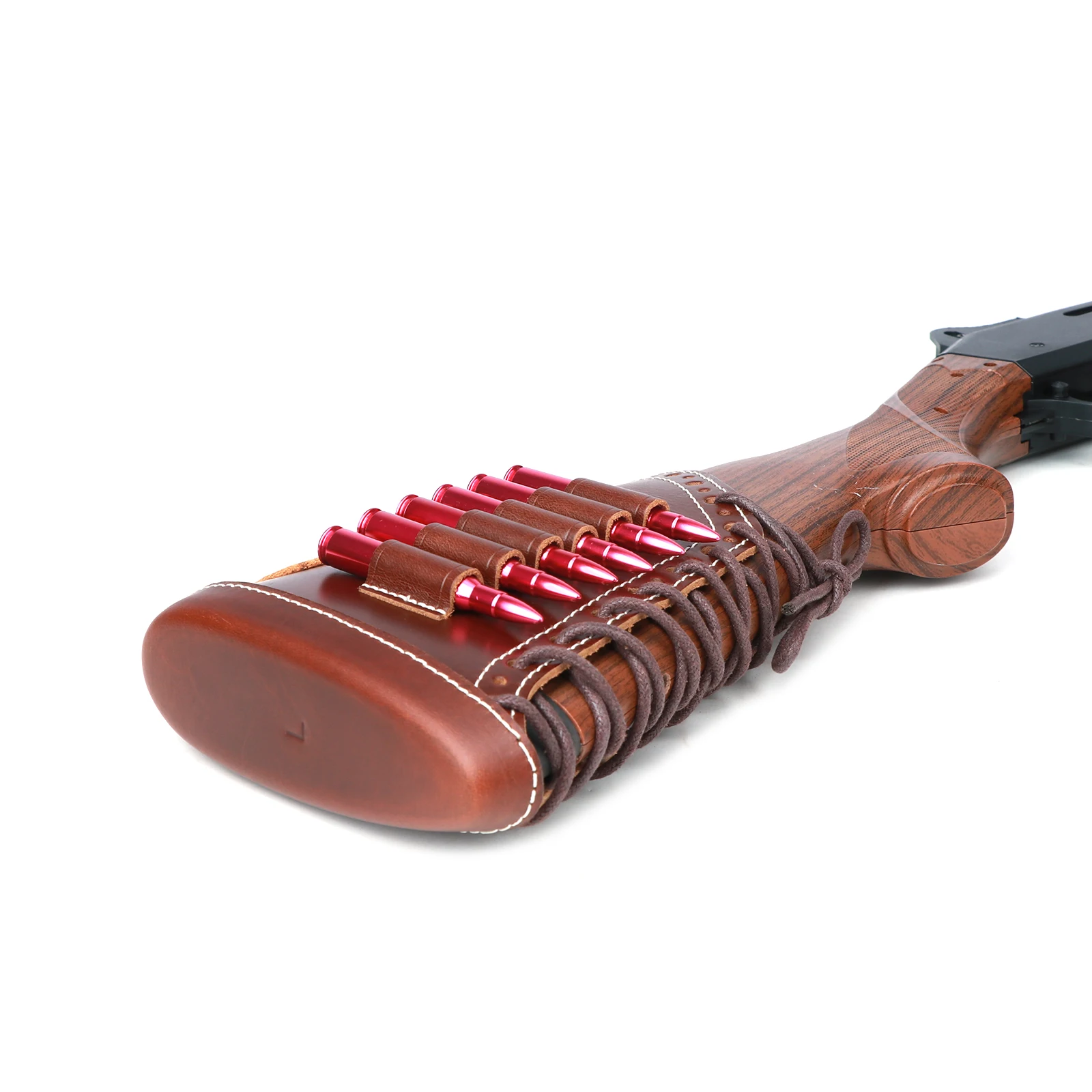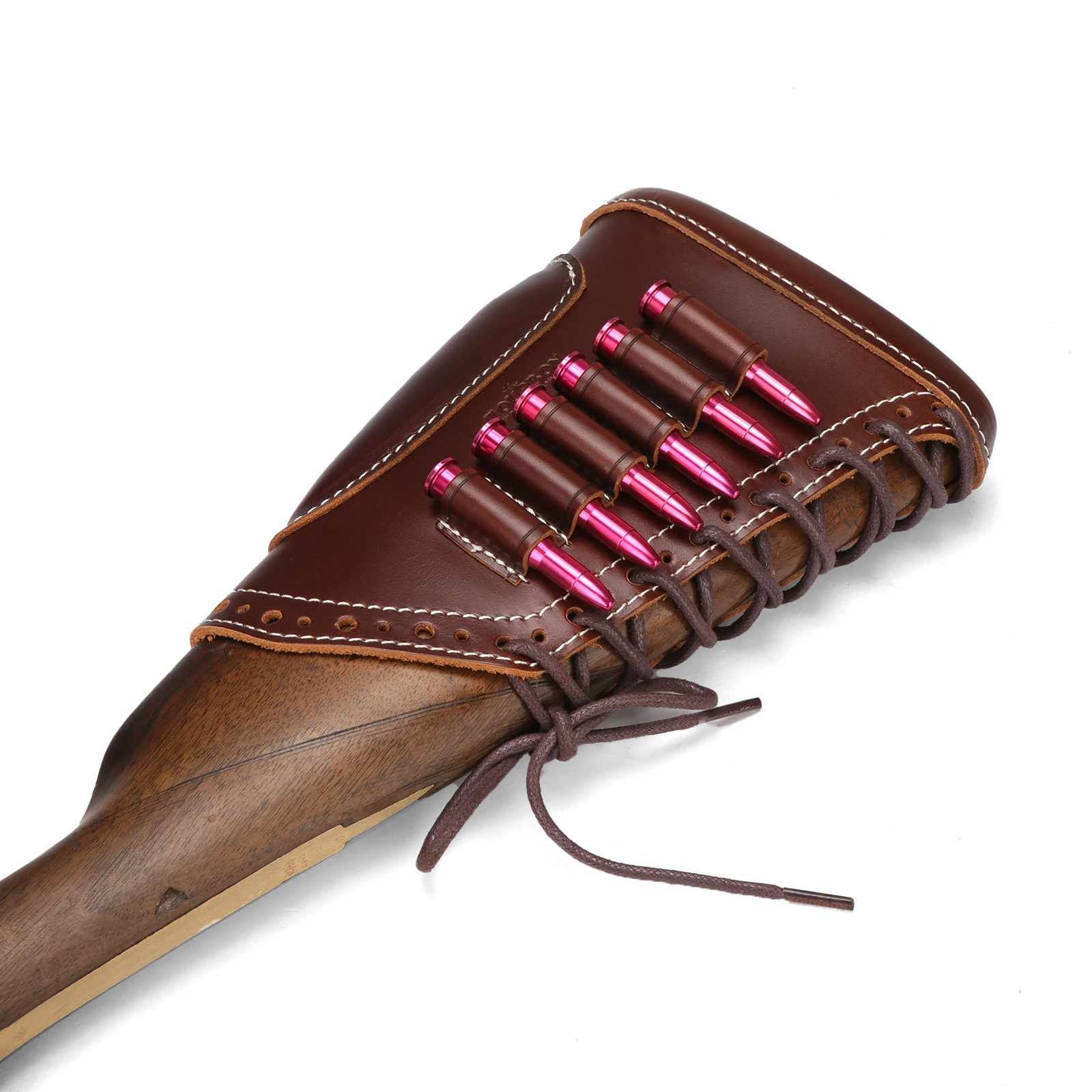 - Con 6 ranuras de munición de rifle de cuero que pueden transportar 308win, 30-06, 45-70 (pequeño apretado), 207win, 30-30, Creedmoor de 6,5 mm, etc.