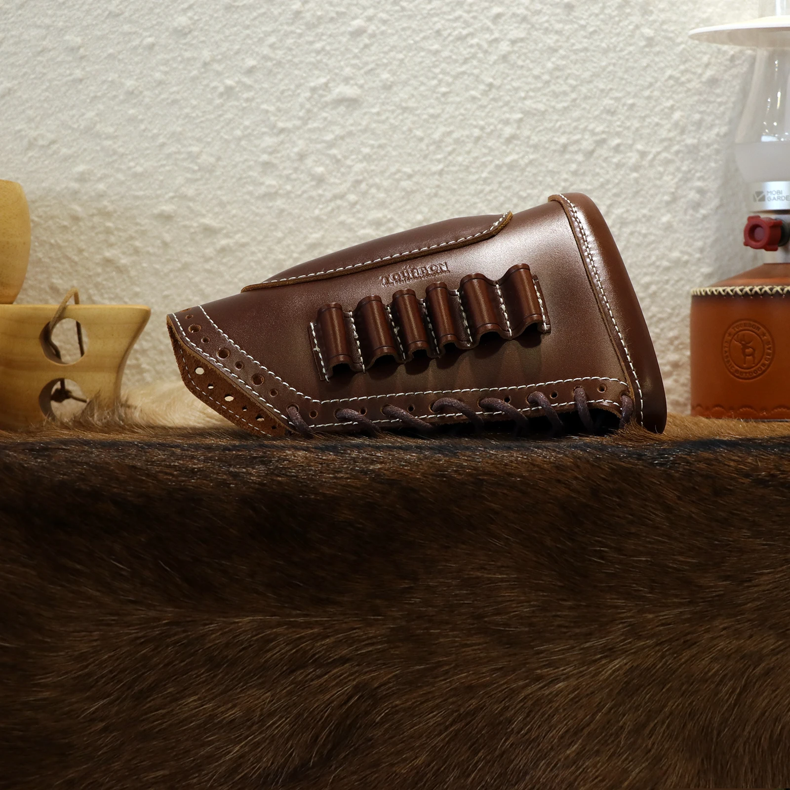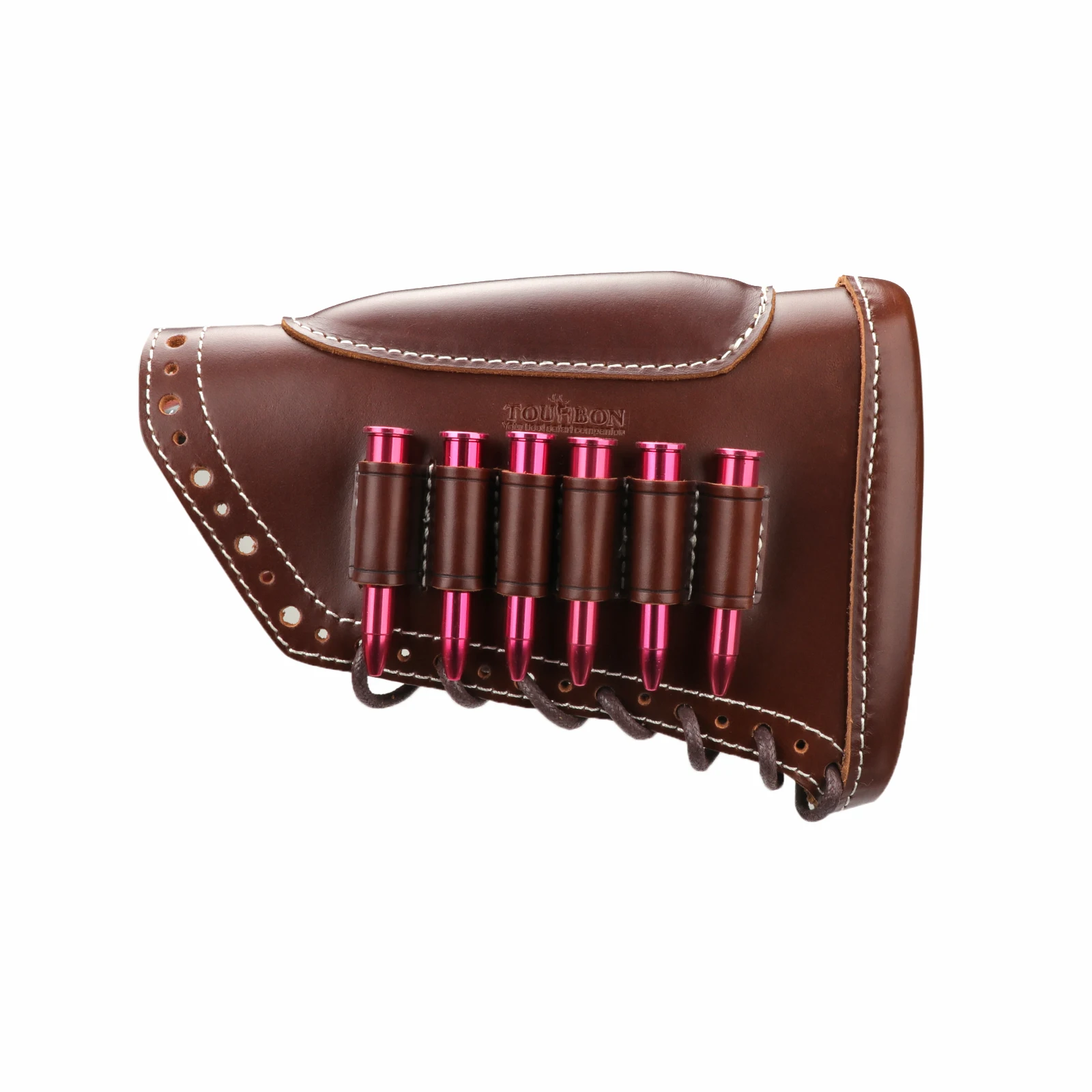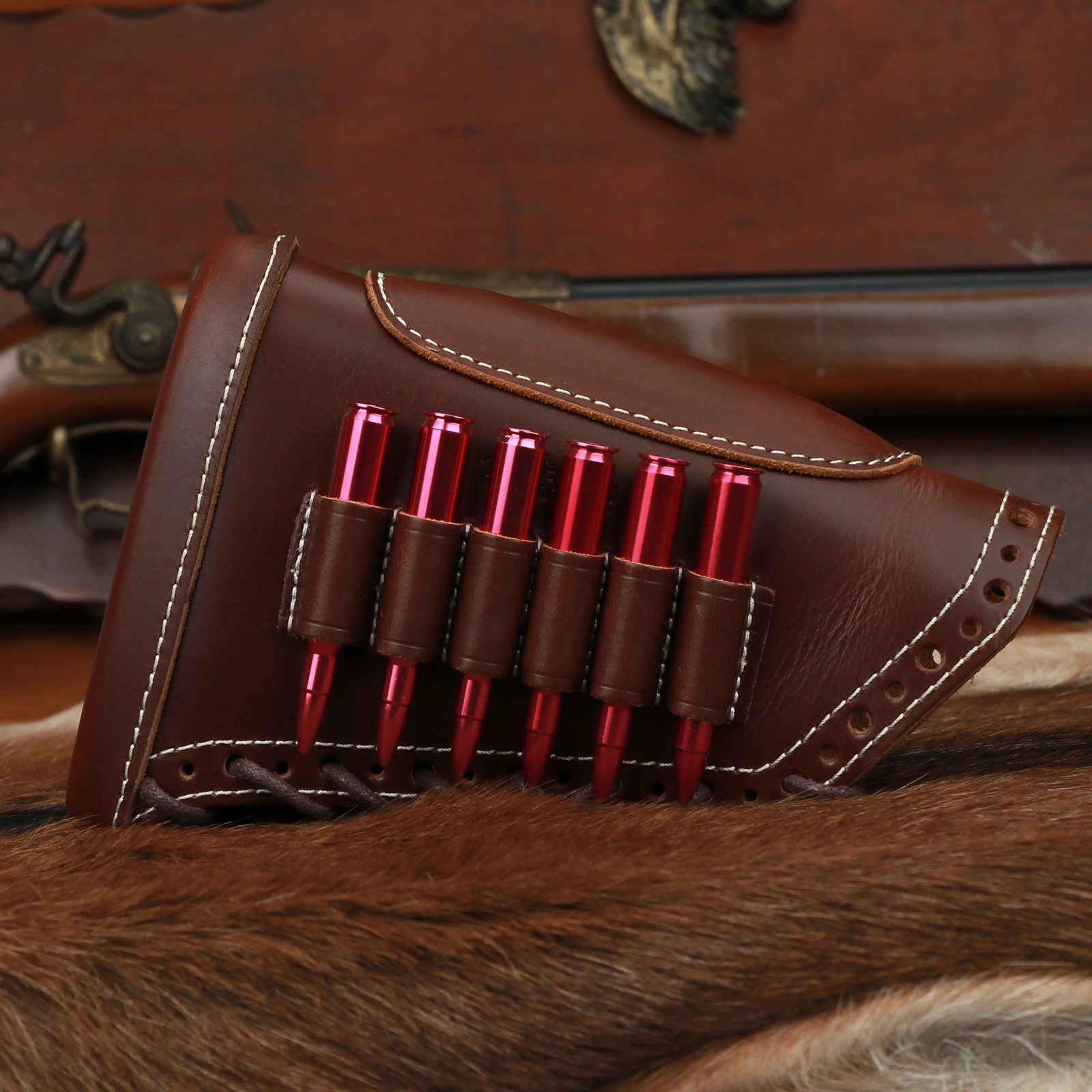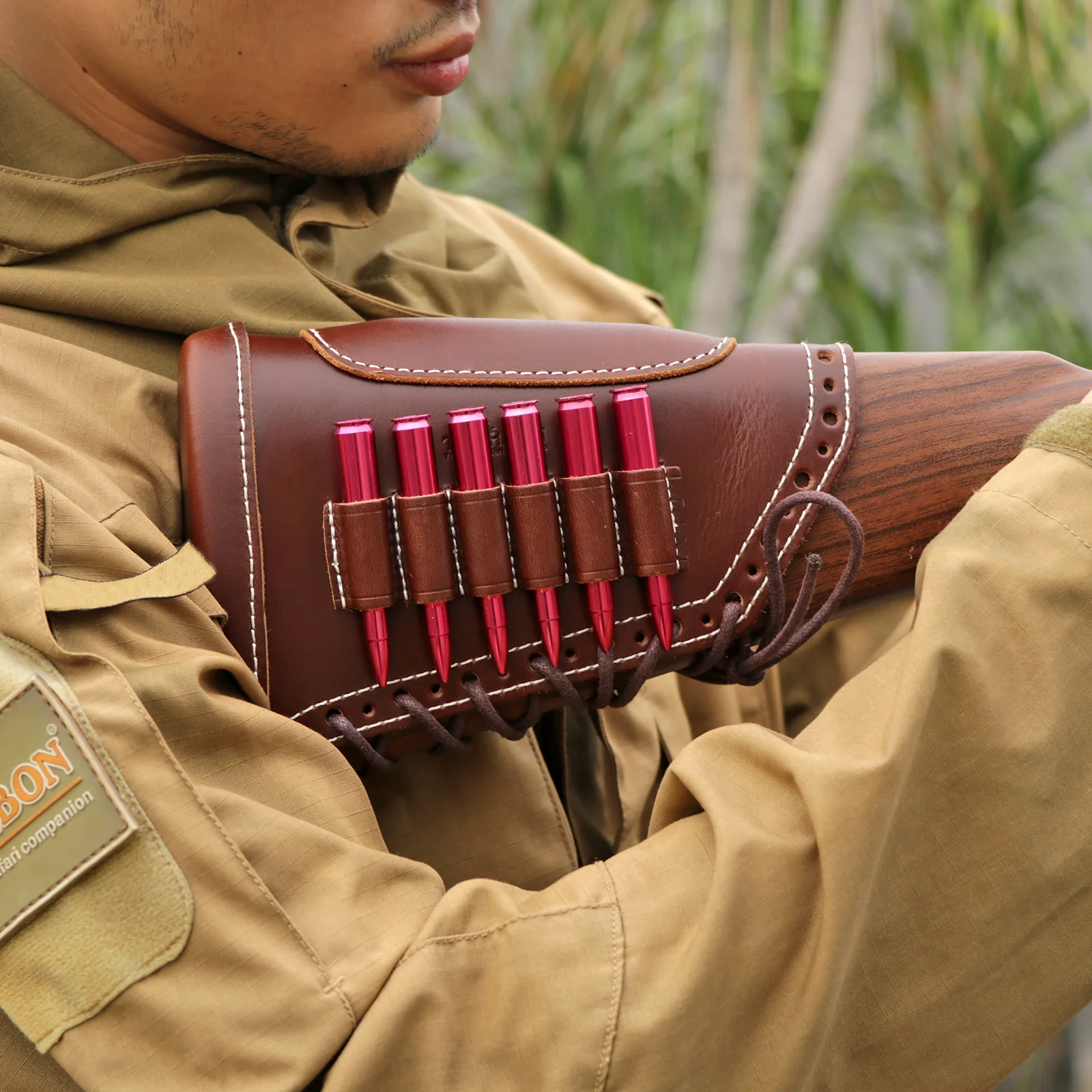 - Con 6 ranuras de munición de rifle de cuero que pueden transportar 308win, 30-06, 45-70 (pequeño apretado), 207win, 30-30, Creedmoor de 6,5 mm, etc.