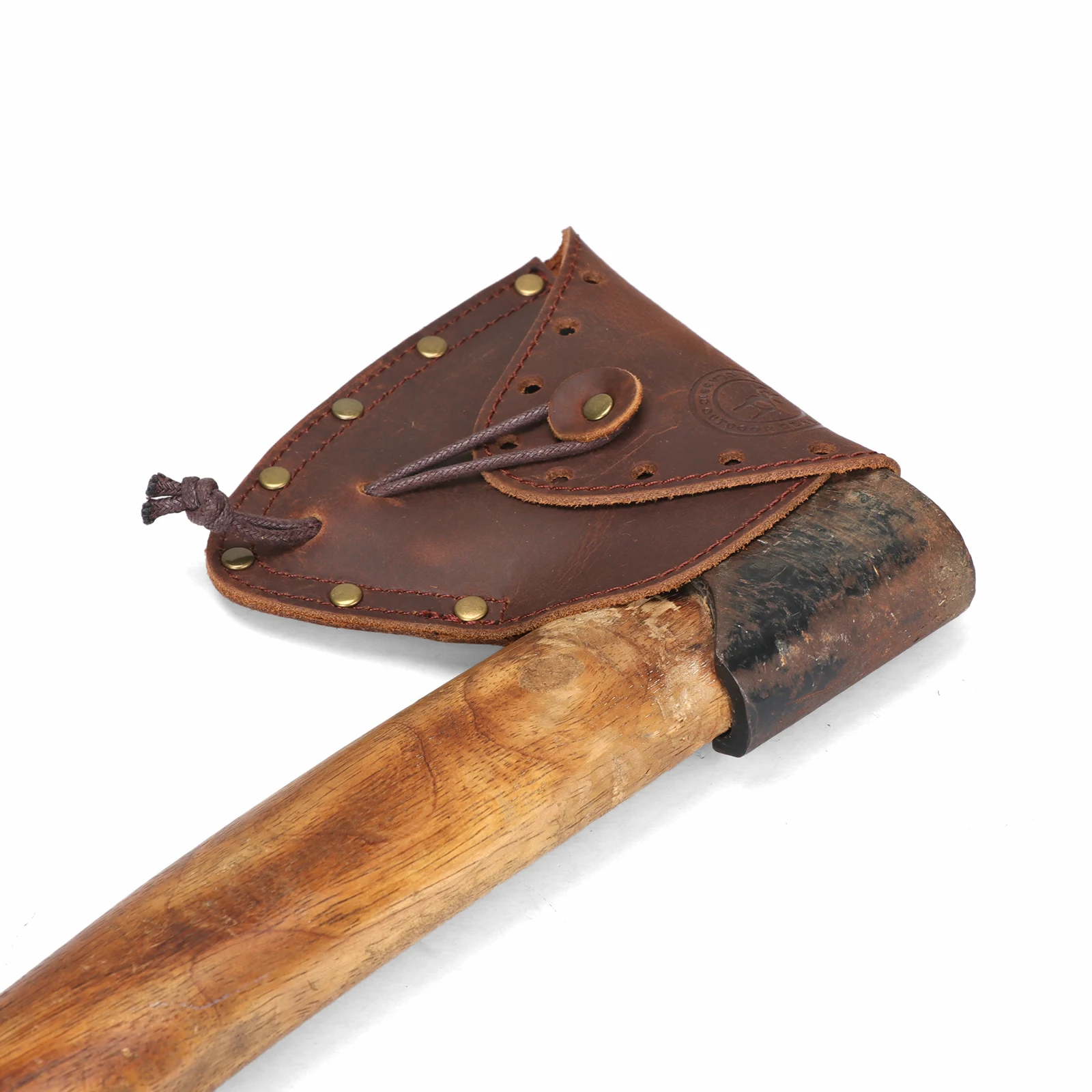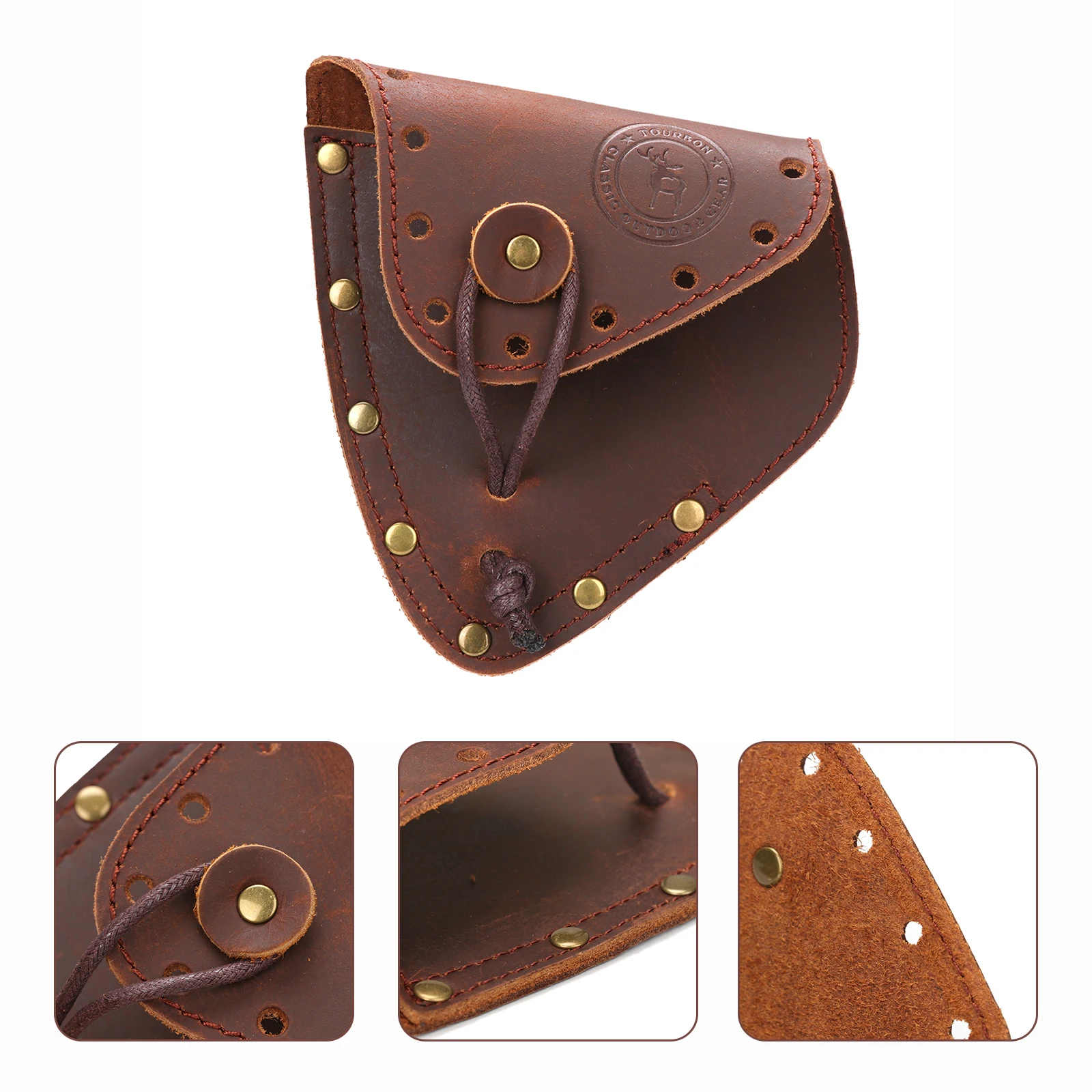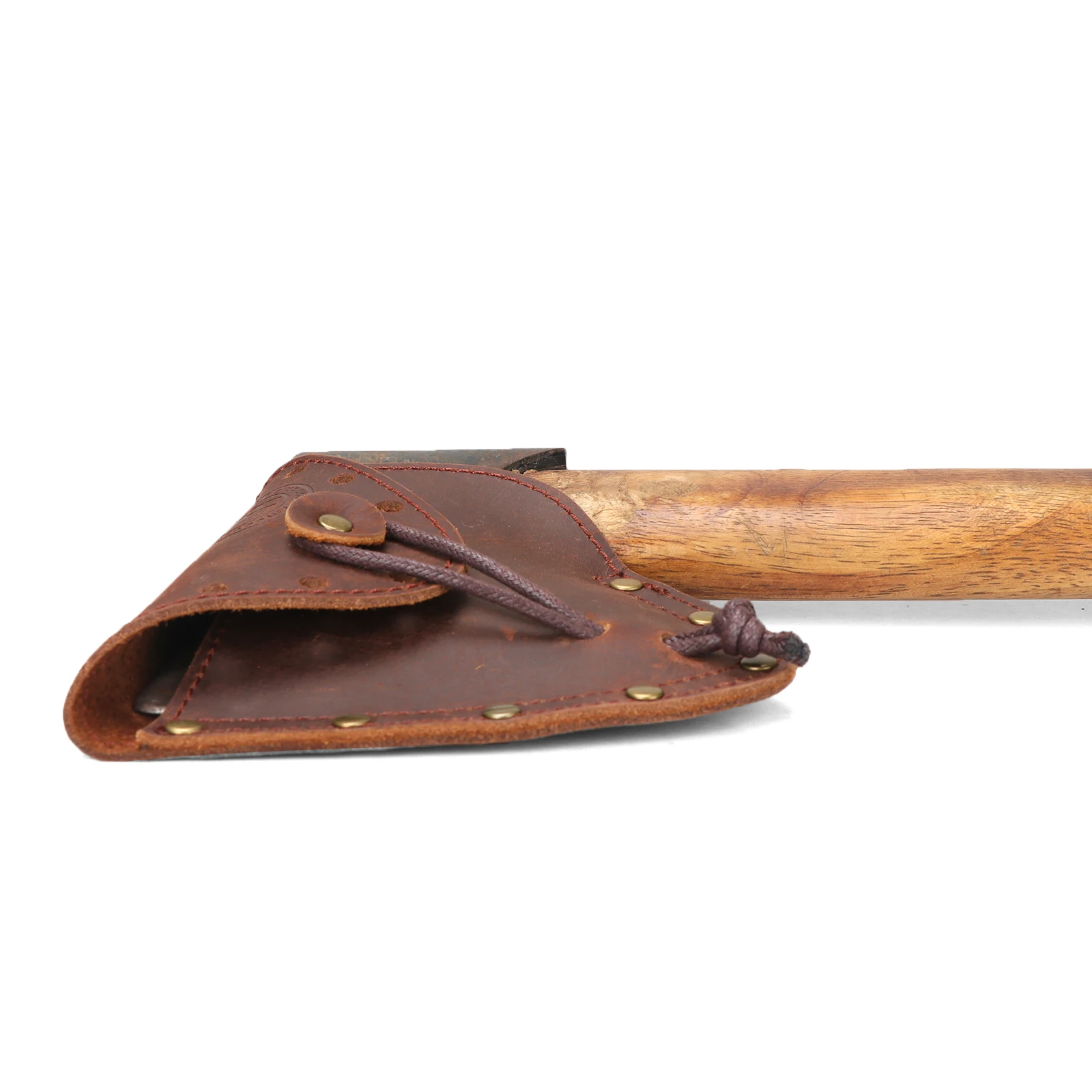 -Con un cinturón para apretar el mango del hacha, la correa de cuero es ajustable.