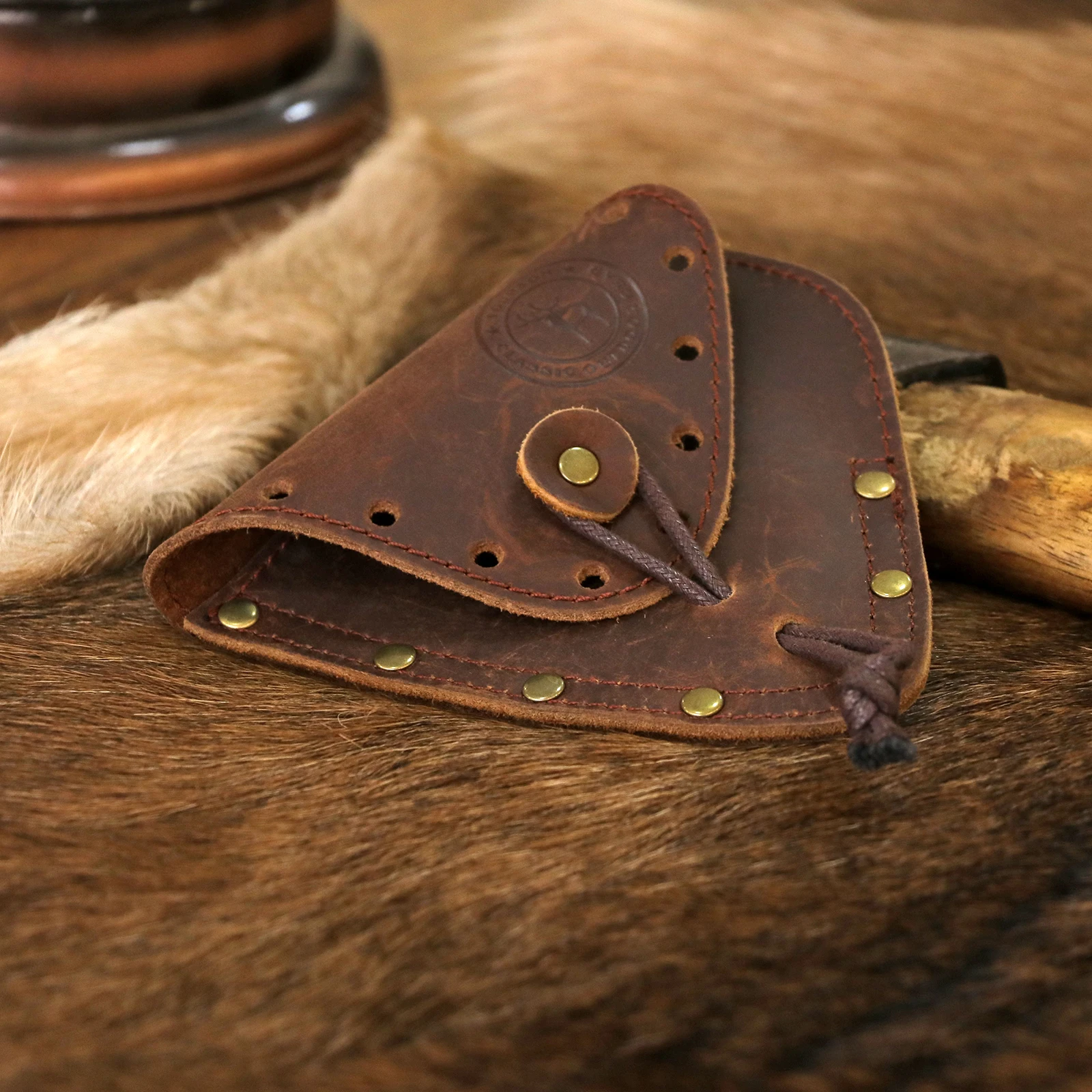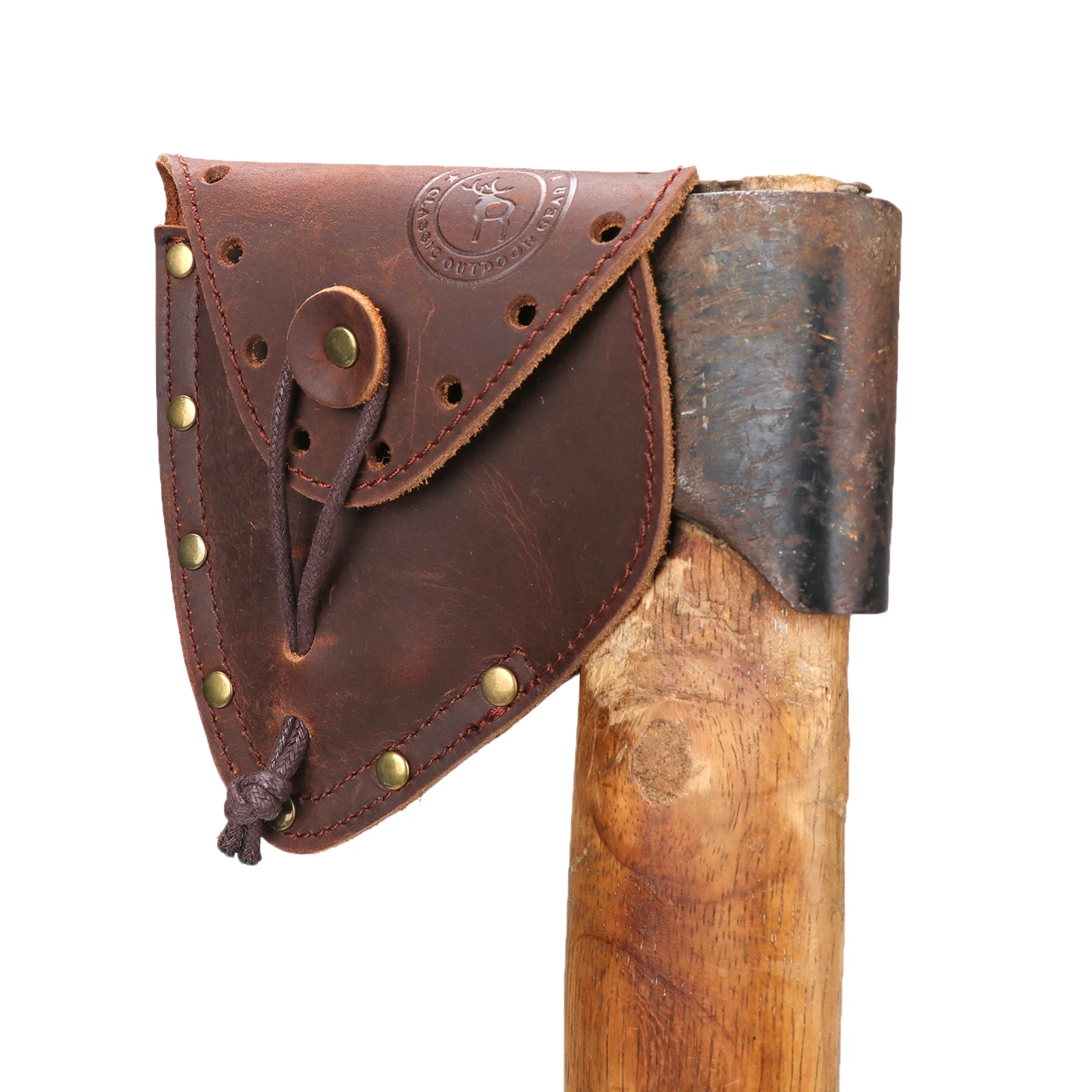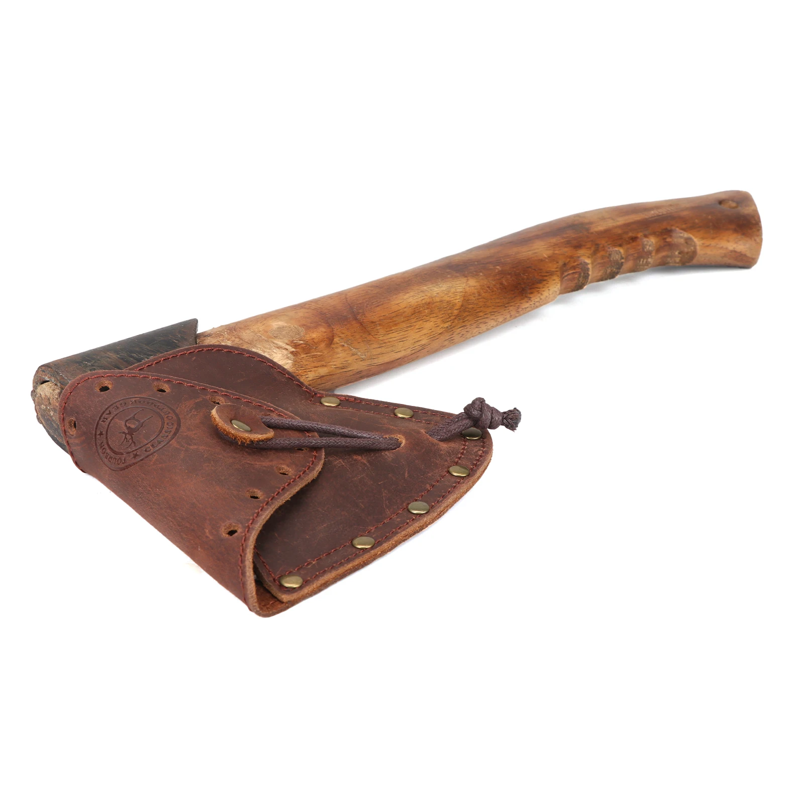 -Con un cinturón para apretar el mango del hacha, la correa de cuero es ajustable.