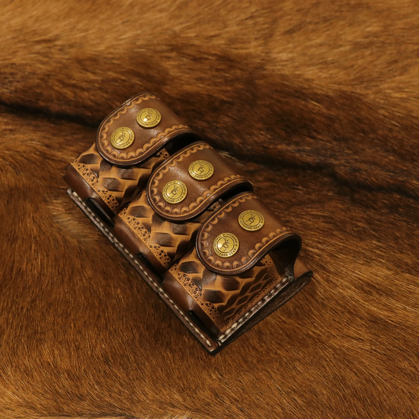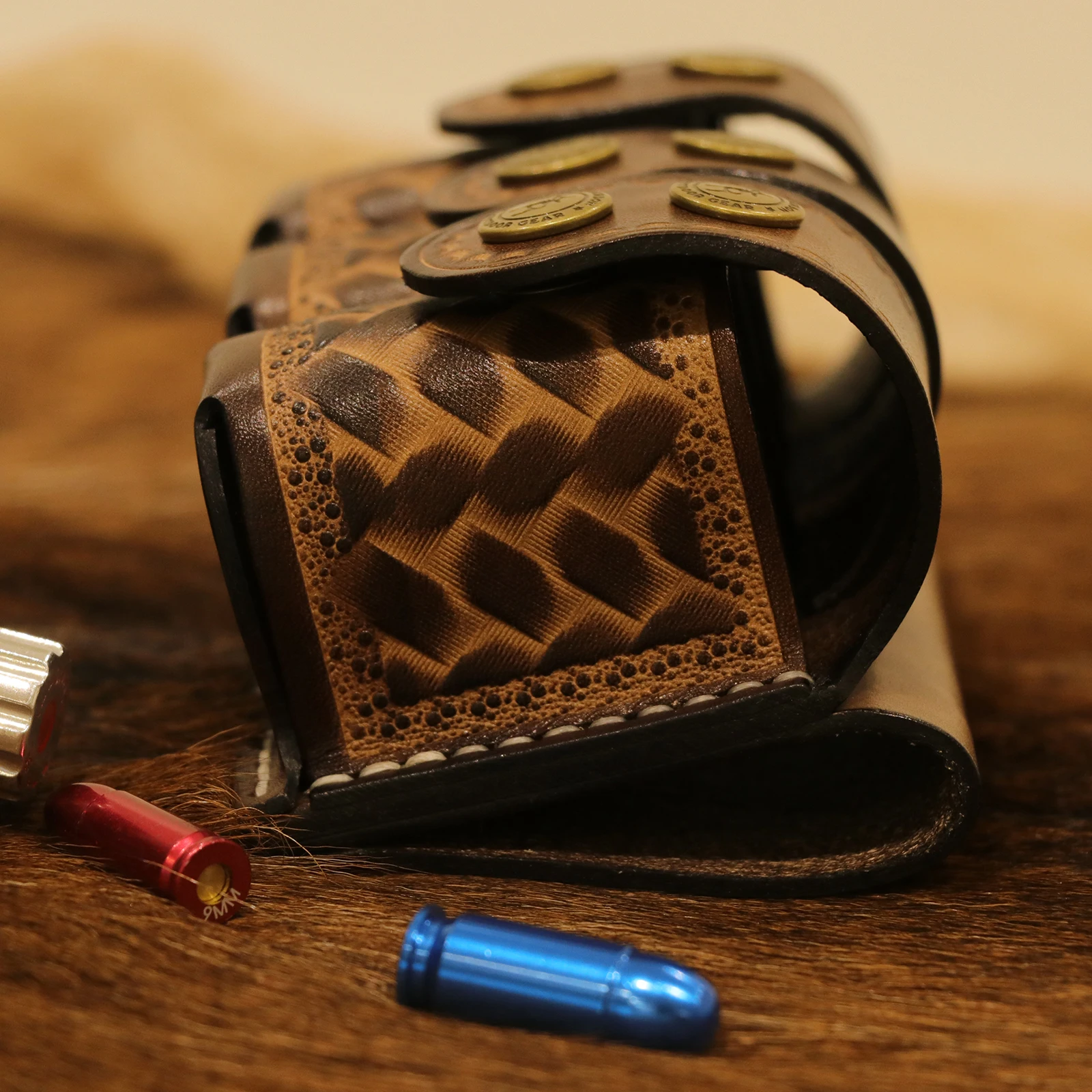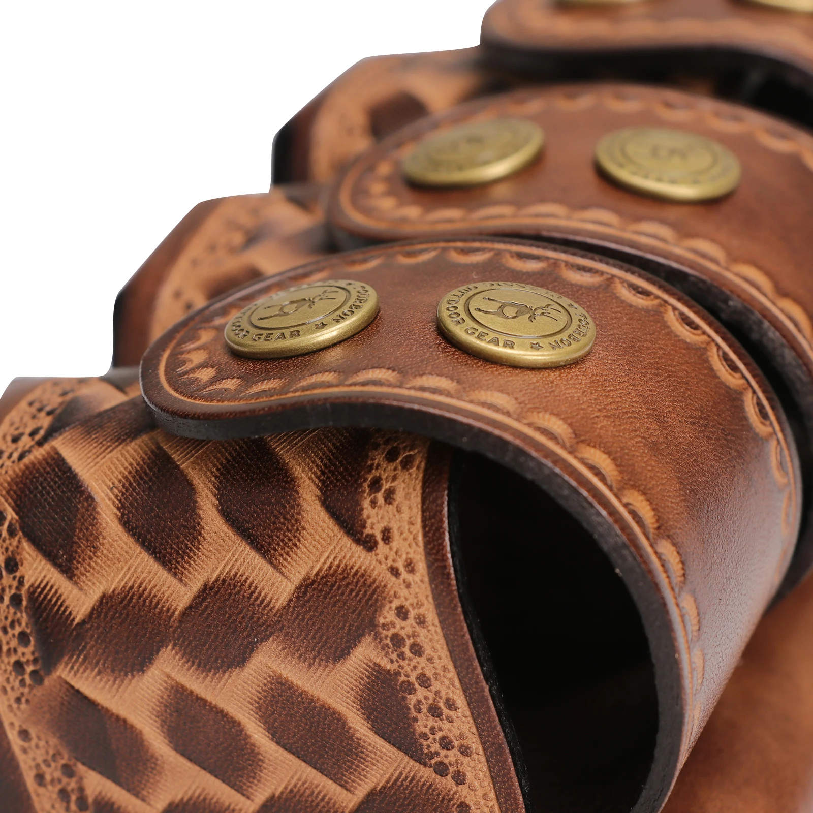 - Hecho de cuero de alta calidad, que es lo suficientemente grueso como para brindar protección y comodidad cuando se usa durante largos períodos.