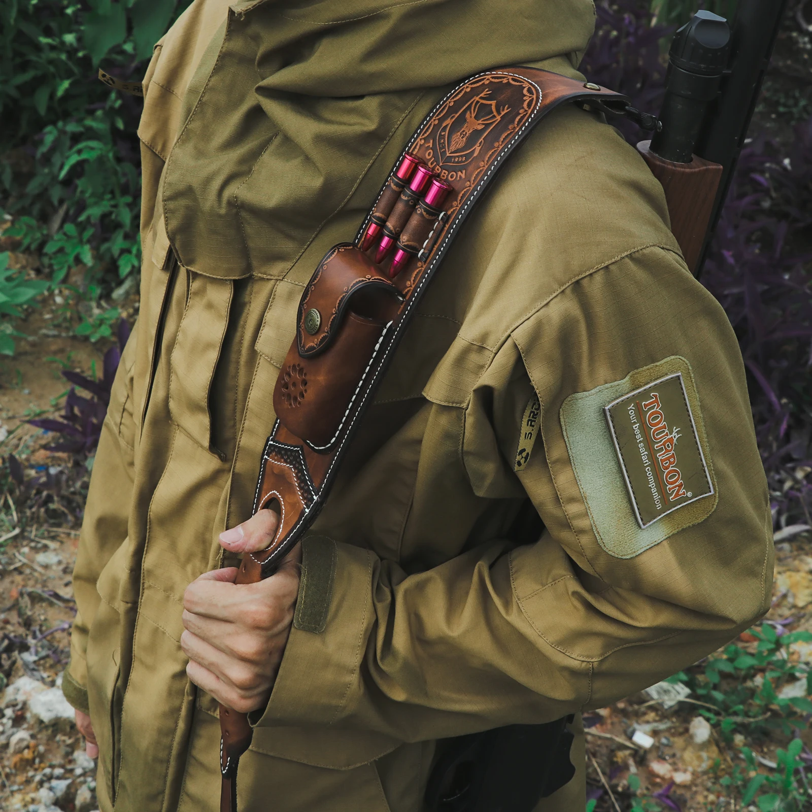 -Viene con una pequeña bolsa de cuero que puede contener accesorios de caza