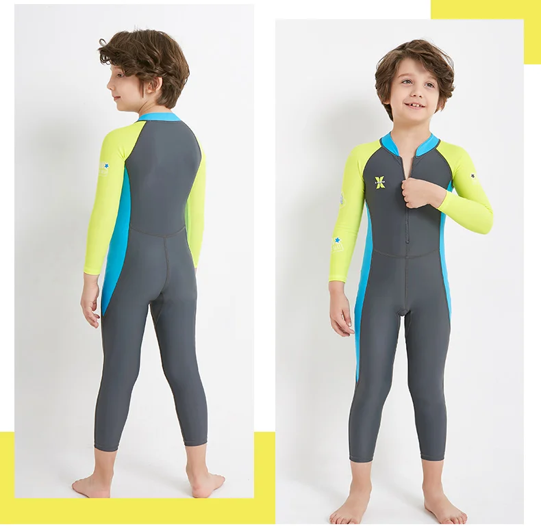 Es un mono con protección UV, parece ser de buena calidad. La talla XXL era adecuada para un niño que mide 1.32m y pesa 32kg, y se puede usar hasta que crezca un poco más.