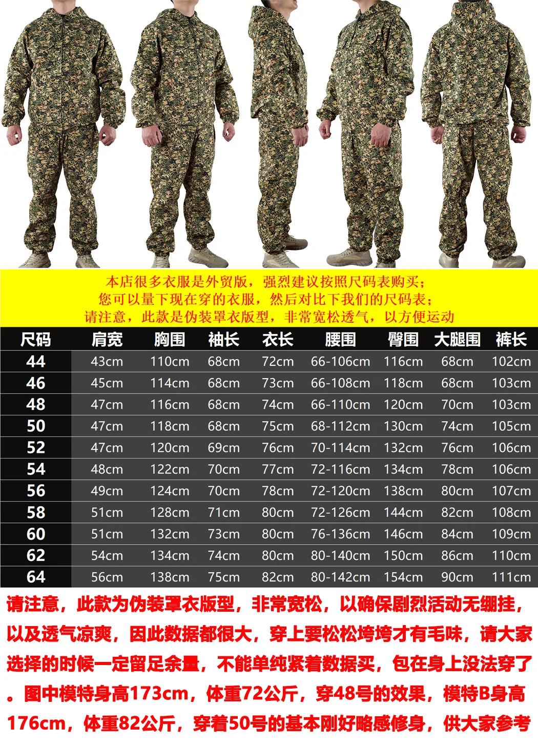 Please note that this is a camouflage cover-up version, very loose, to ensure strenuous activities without hanging, as well as breathable cool, so the data are very large, please everyone.When choosing, be sure to leave enough margin, you can't simply buy the data, and you can't wear the package on your body.