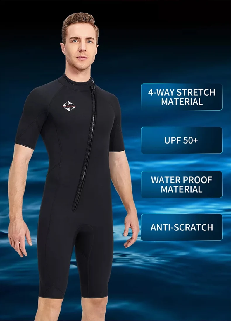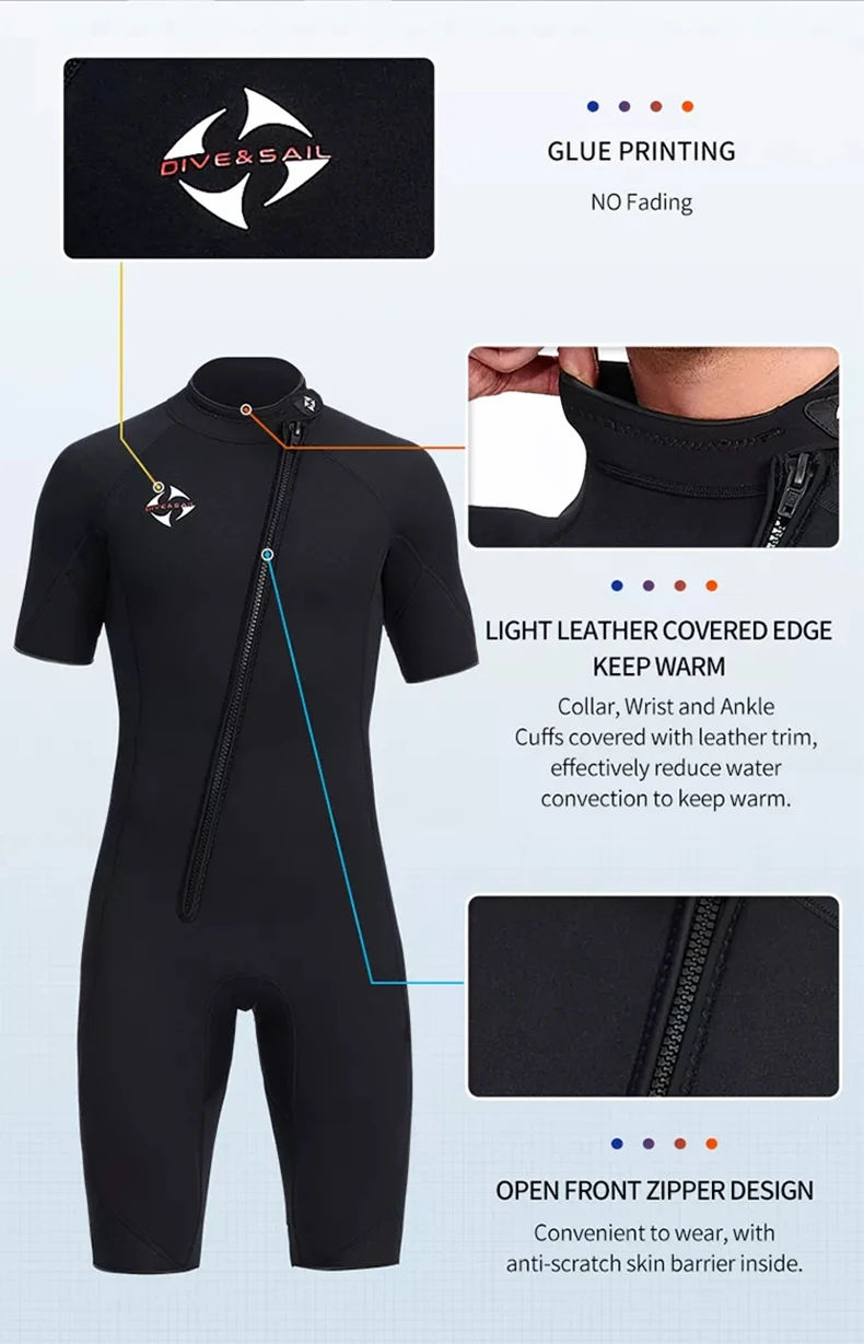-- Fácil de usar: Diseño de cremallera frontal, que es conveniente y de fácil acceso dentro y fuera de los trajes de neopreno. Puede estirarse hasta el 130%.