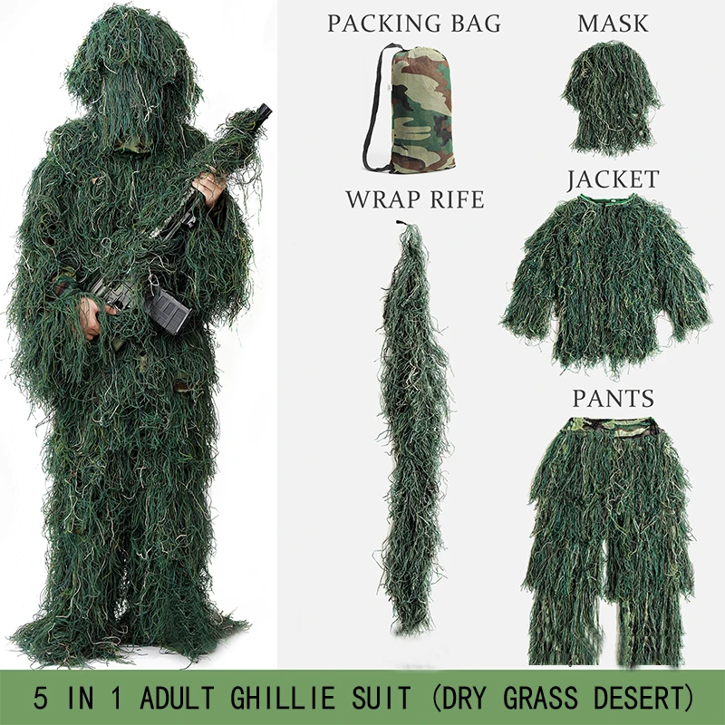 5 unids/set camuflaje Ghillie traje niños adultos Universal francotirador militar táctico ejército ropa caza observación de aves ropa Invisible