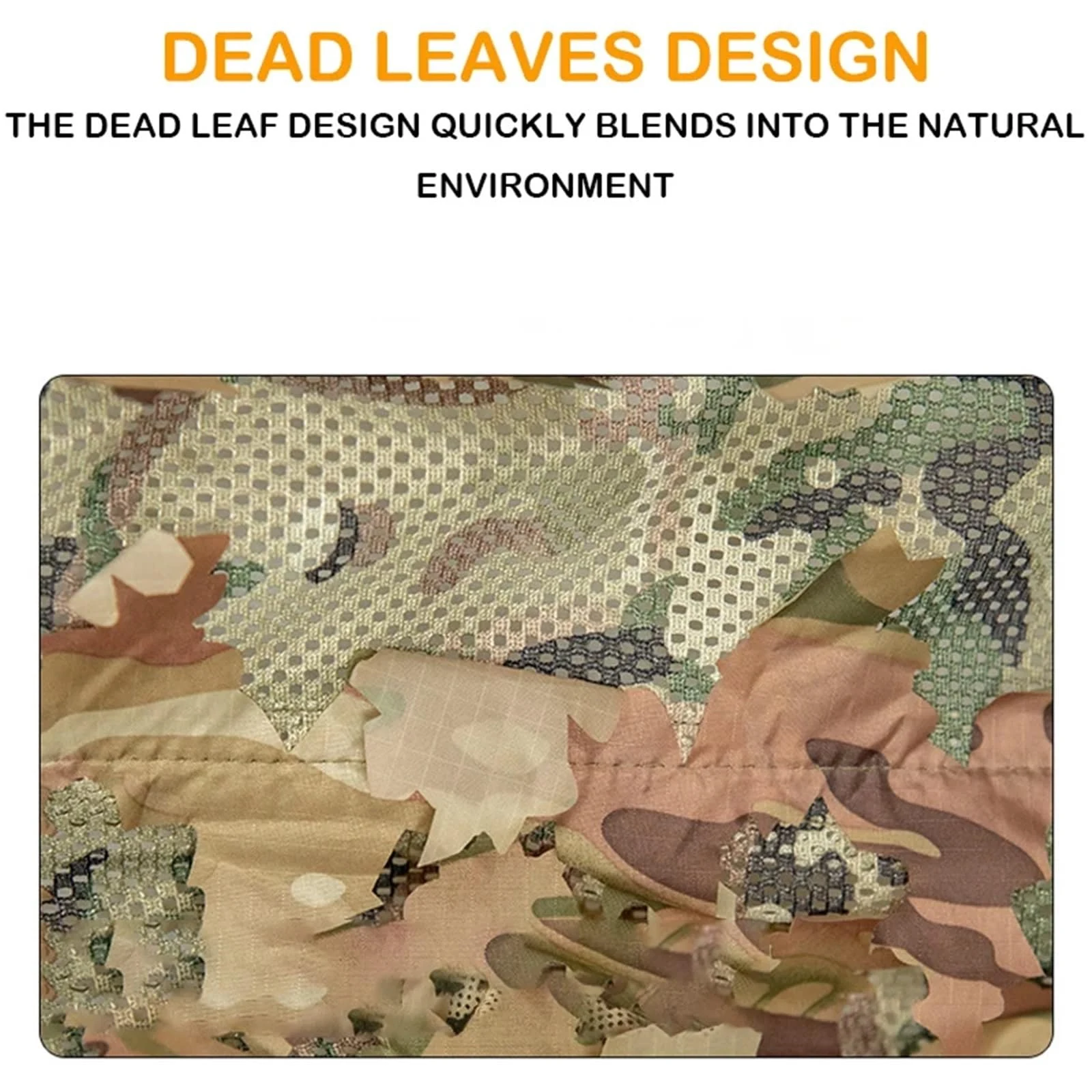 3. Diseño de hoja realista: este traje Ghillie tiene un diseño de hoja muerta vívido que imita el entorno natural. Te ayuda a mezclarte con el entorno y evitar ser detectado por tus enemigos o presas.