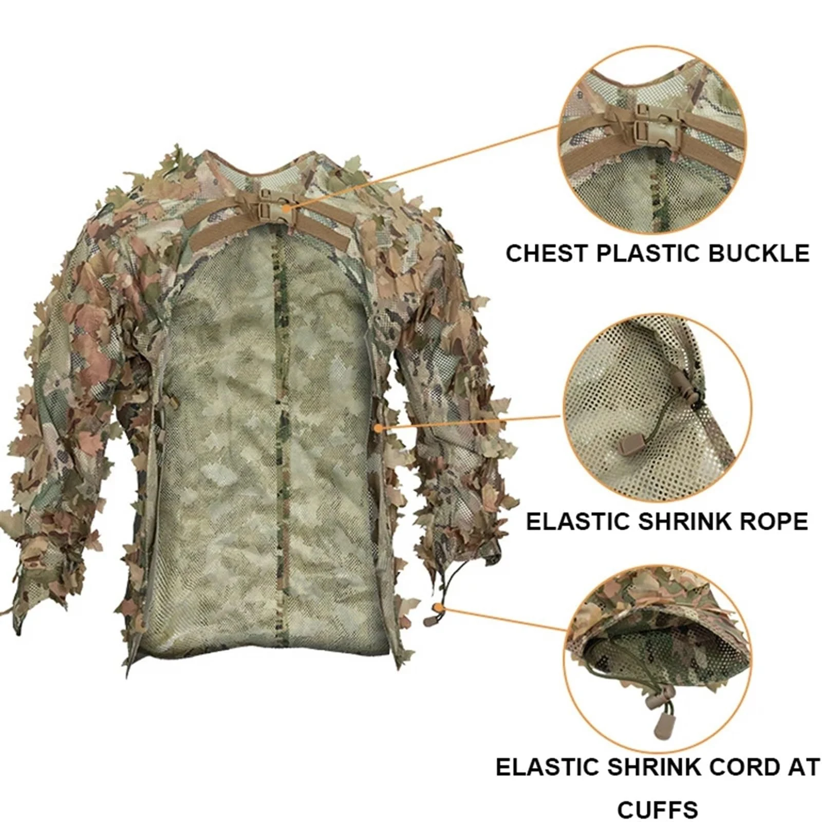 Capa de camuflaje de hoja táctica ropa de caza malla Aldult Camuflaje Airsoft CS traje de tiro equipo de caza al aire libre