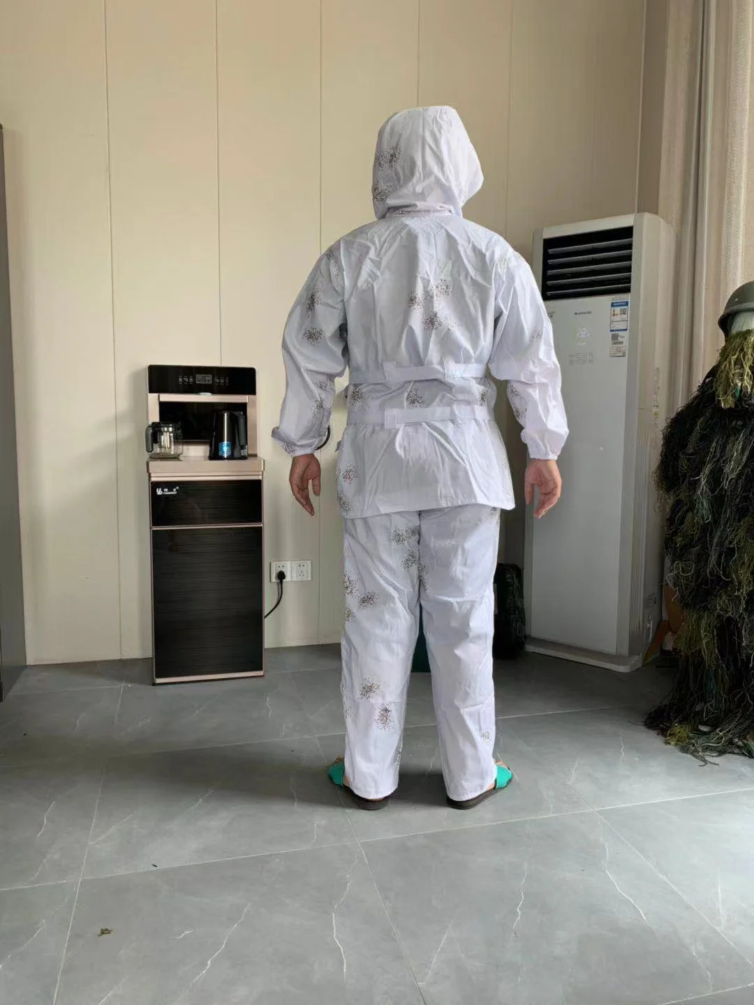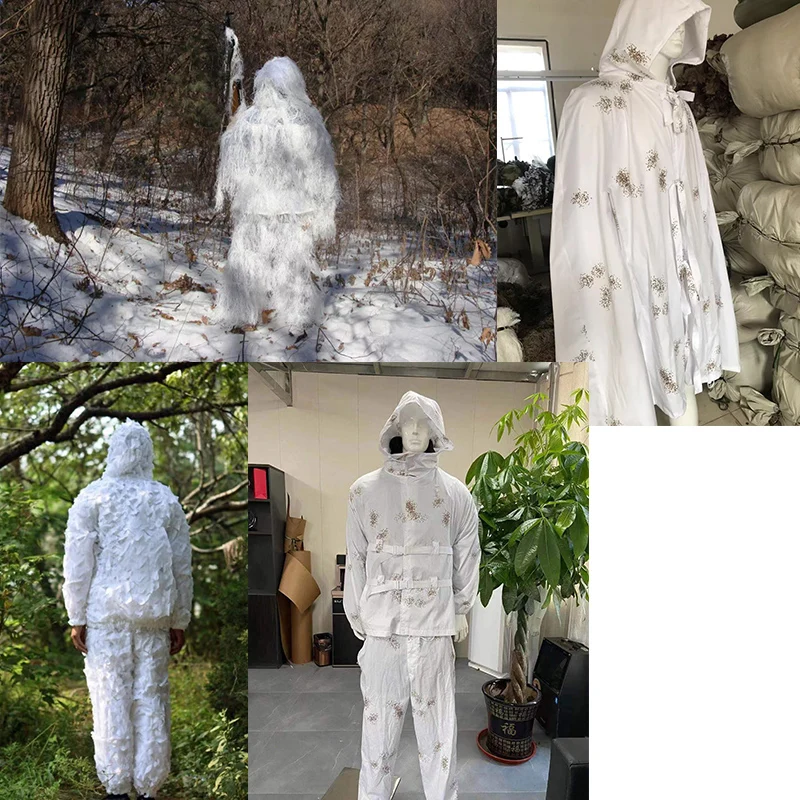 Traje de camuflaje de nieve blanco Digital, abrigo, pantalones, traje Ghillie, cinta de red de sombra, capa de camuflaje