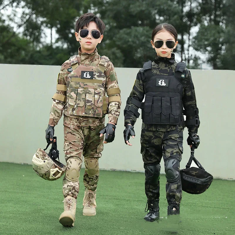 Traje de camuflaje para niños, uniforme de entrenamiento para estudiantes de escuela primaria y secundaria, campamento de fuerzas especiales, Verano