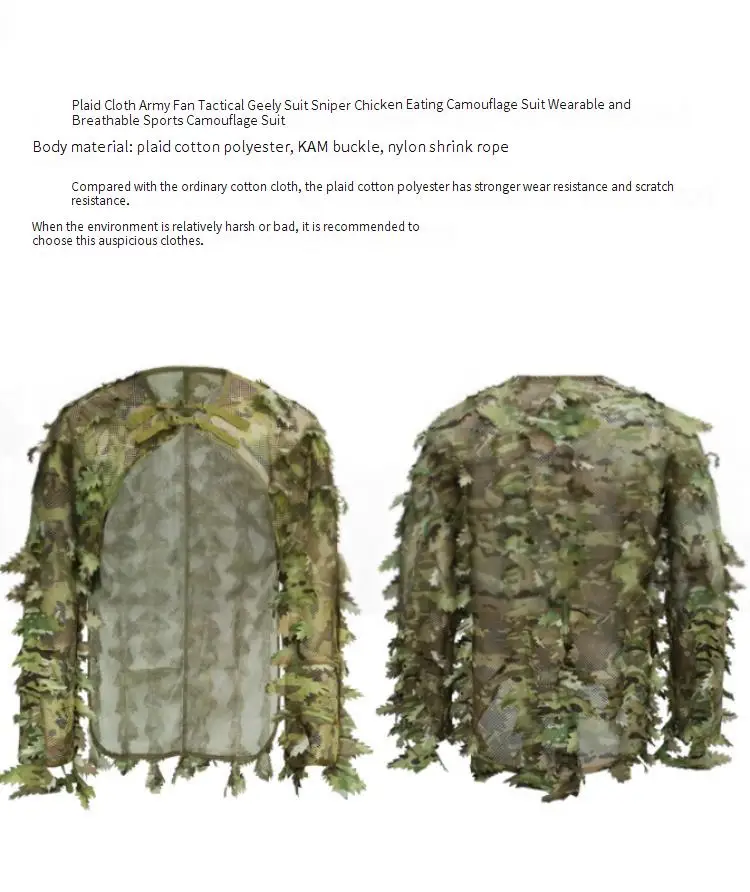 Traje de camuflaje táctico de caza estilo capa, traje Geely ligero CS para observación de aves, abrigo de pesca transpirable y resistente al desgaste
