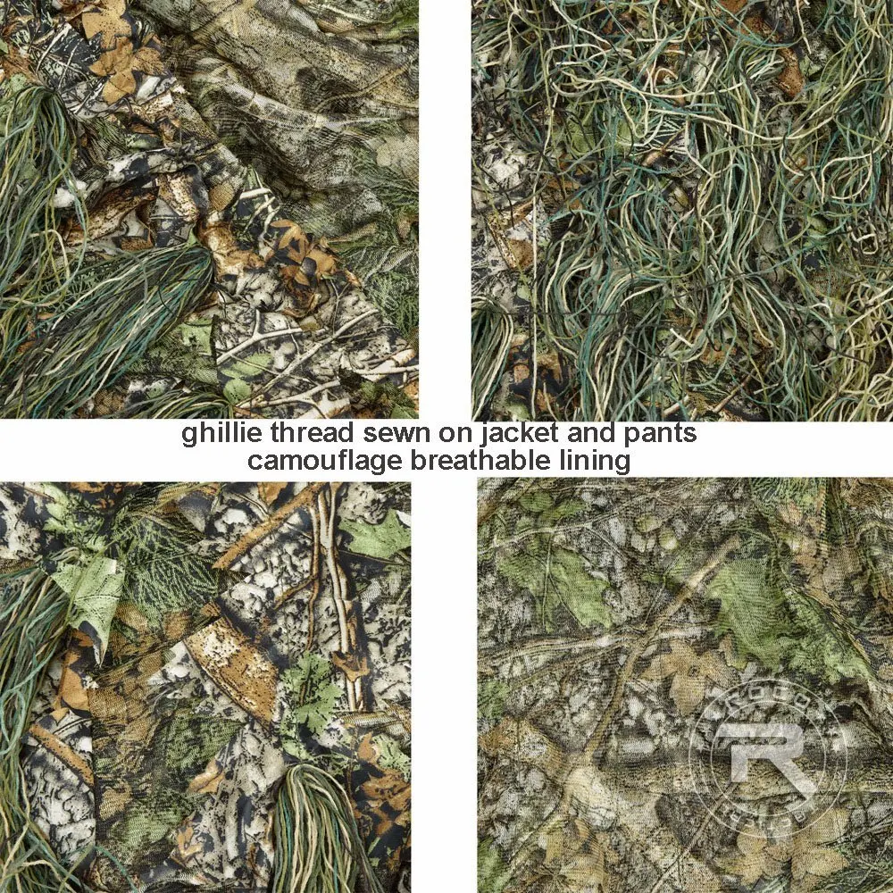 Híbrido Woodland Camuflaje Ghillie Traje de caza Peso ligero Camuflaje Caza Ghillig Traje