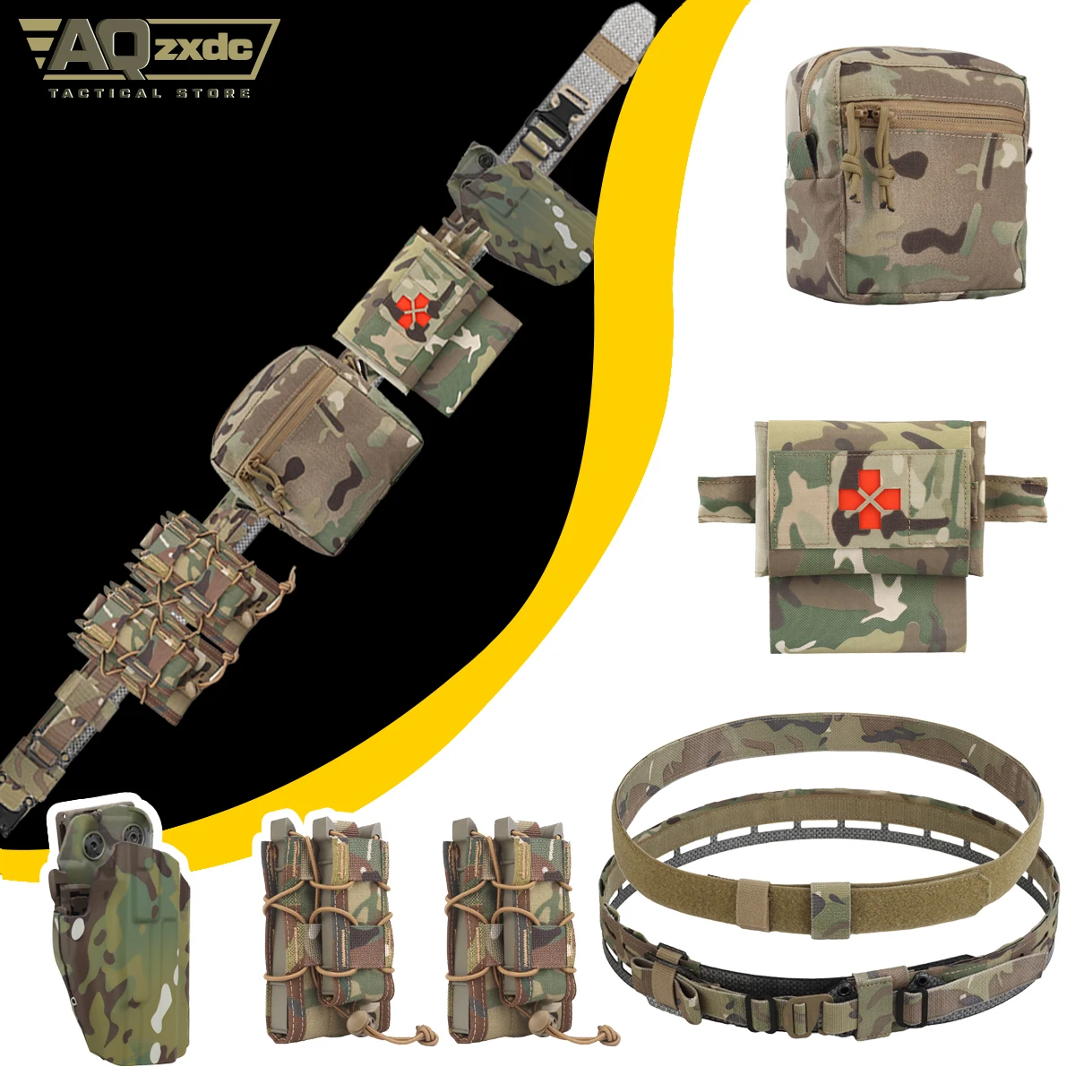 Traje de cinturón de asalto táctico con funda rápida Universal, bolsa magnética de 9MM + 5,56, bolsa médica pequeña BFG para una mano, bolsa Molle para artículos diversos