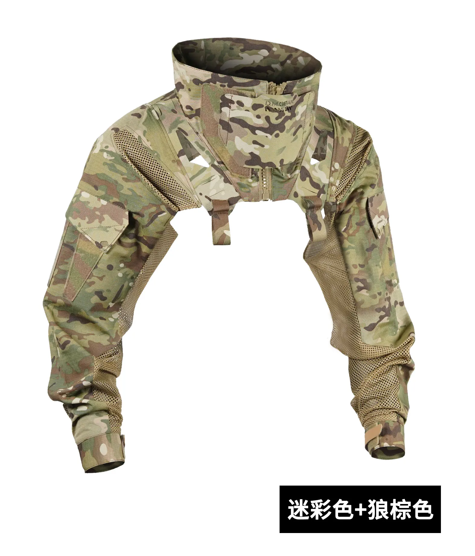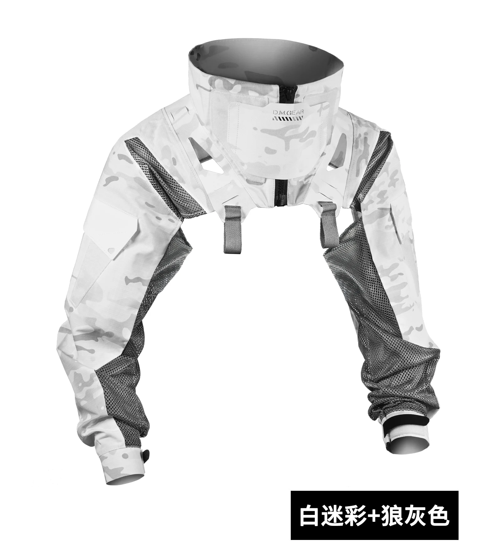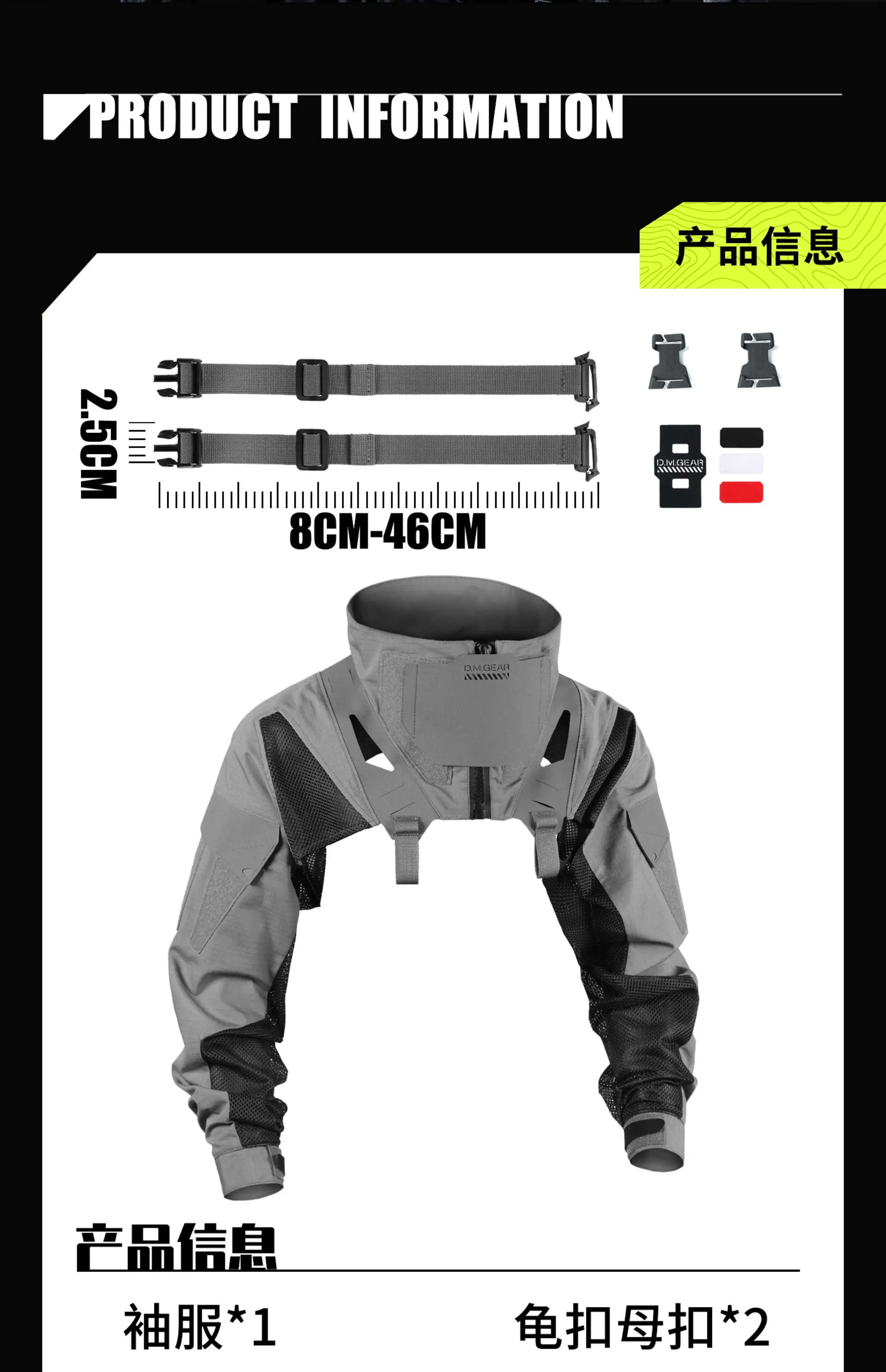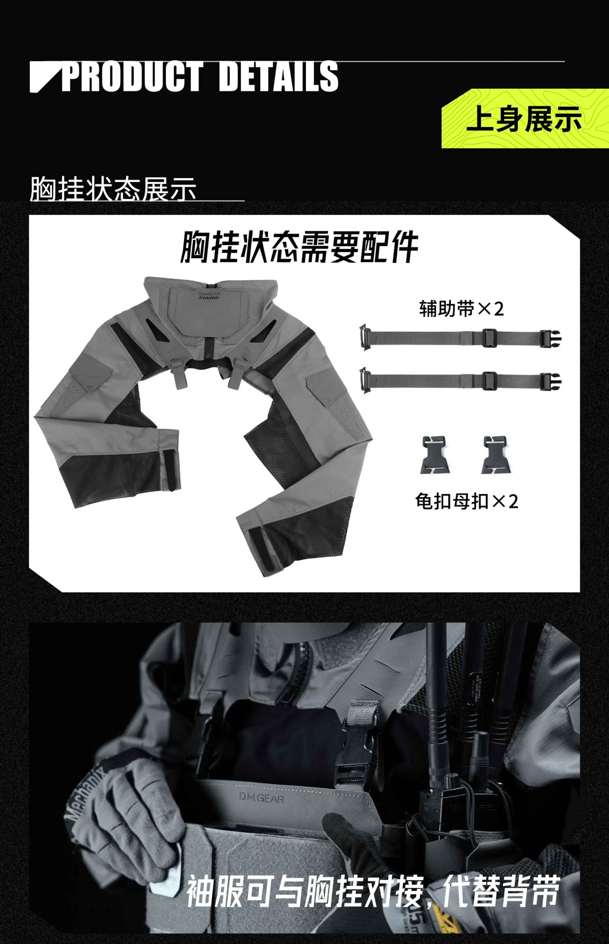 El traje con mangas se puede sujetar al colgador del pecho en lugar de a una correa para el hombro.