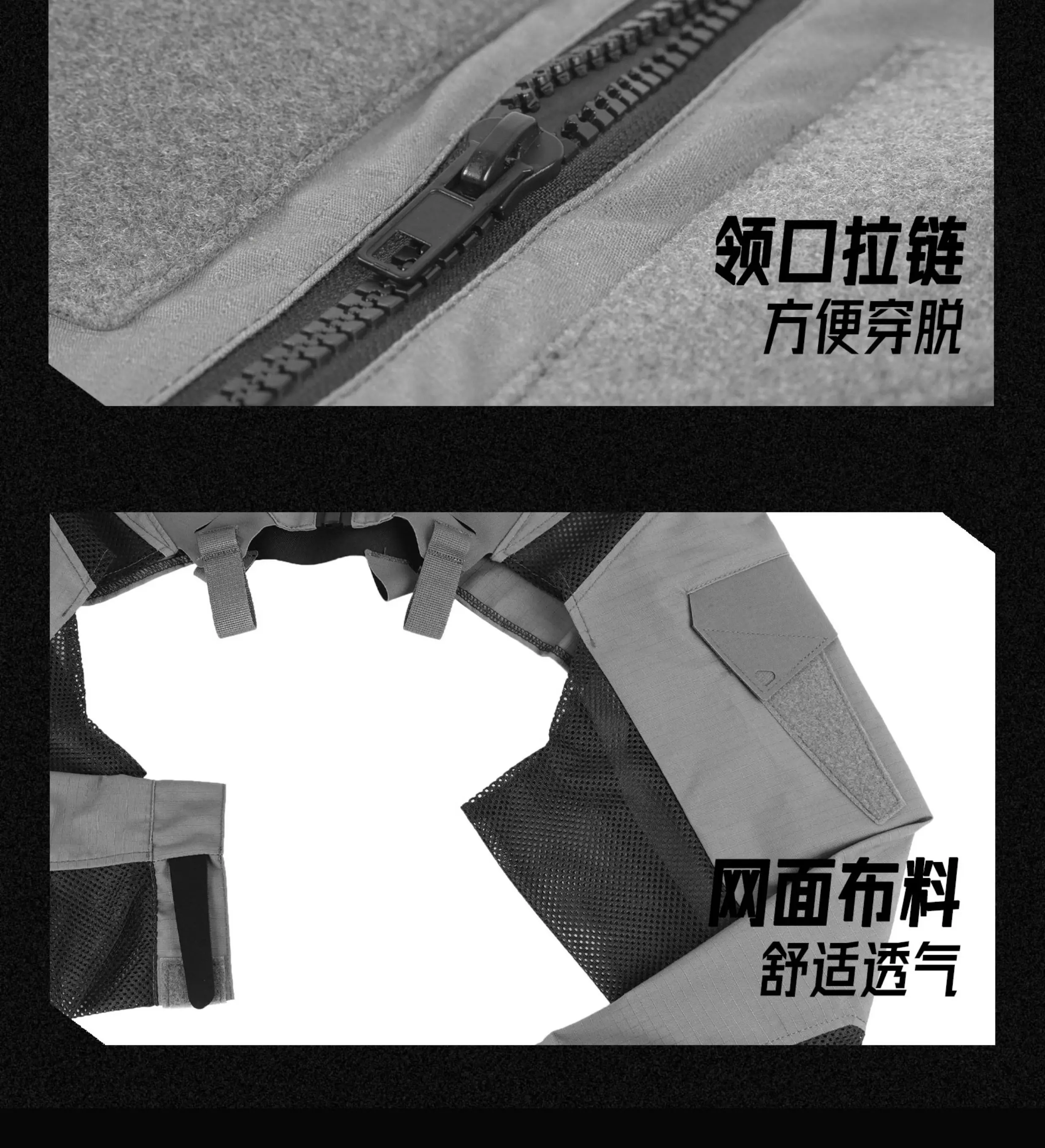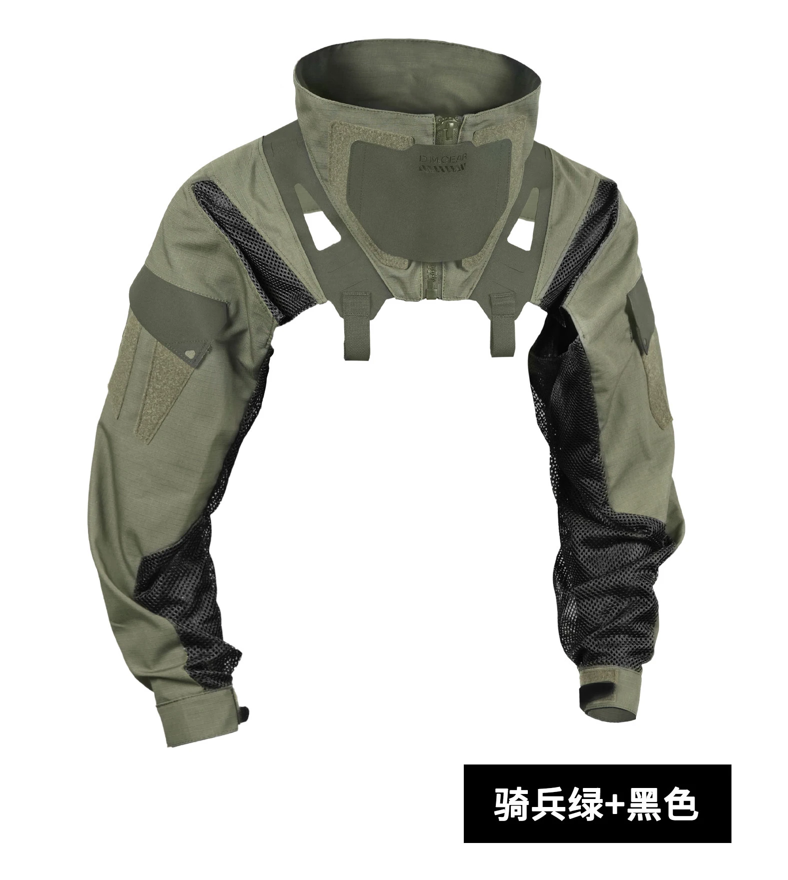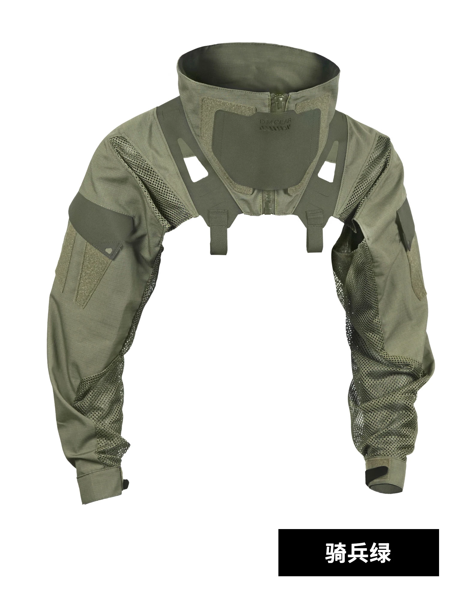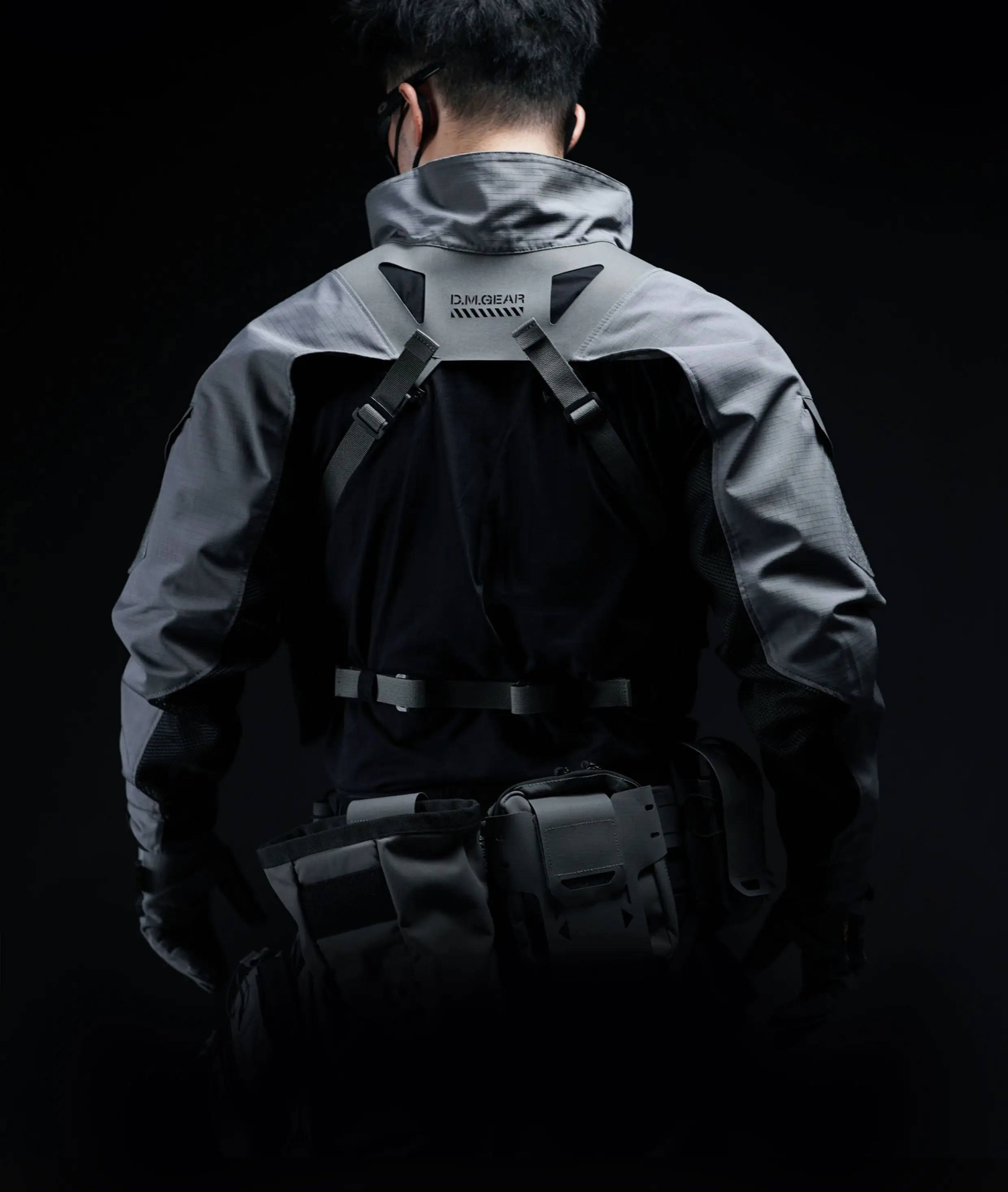 El traje con mangas se puede sujetar al colgador del pecho en lugar de a una correa para el hombro.