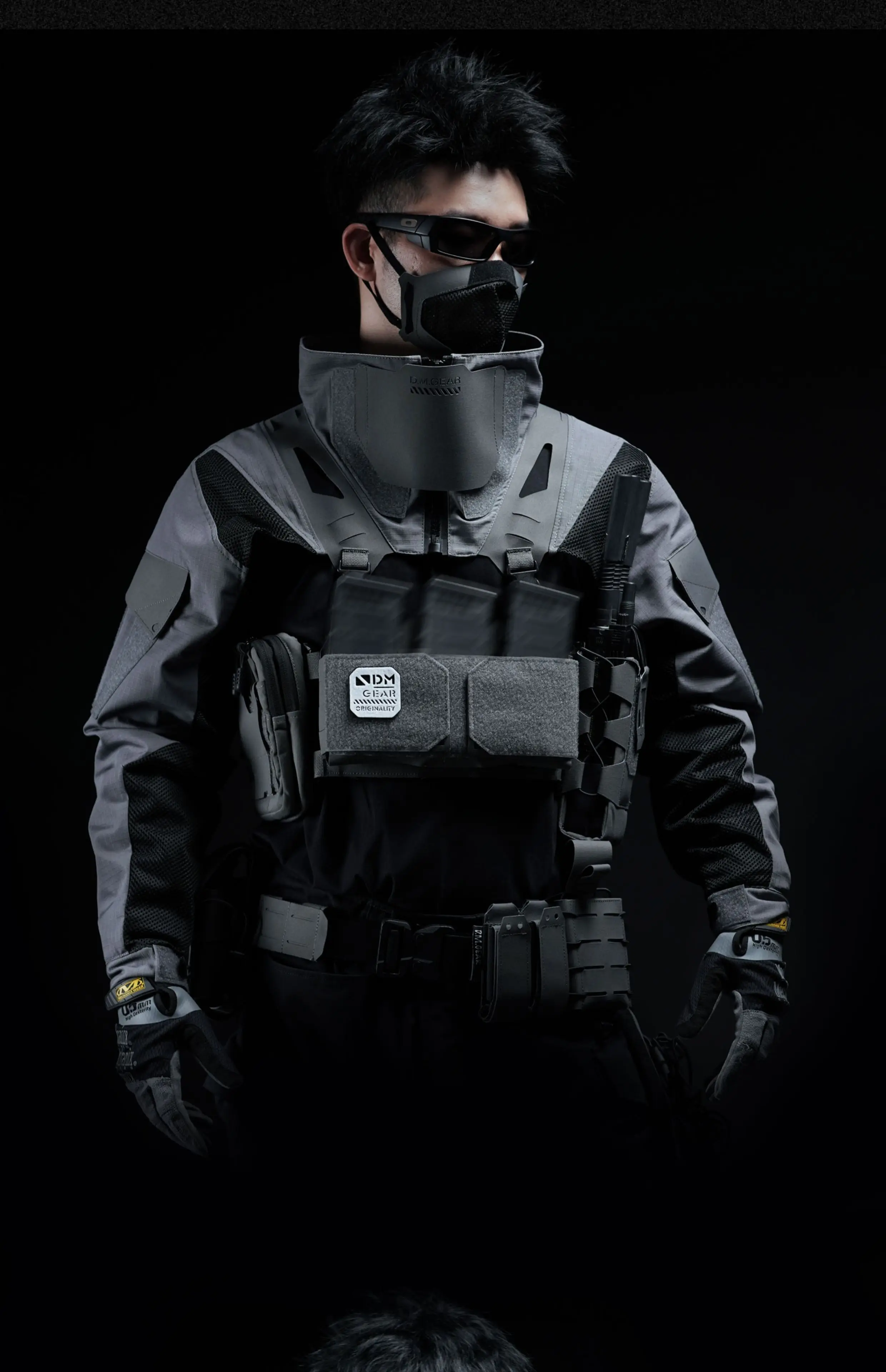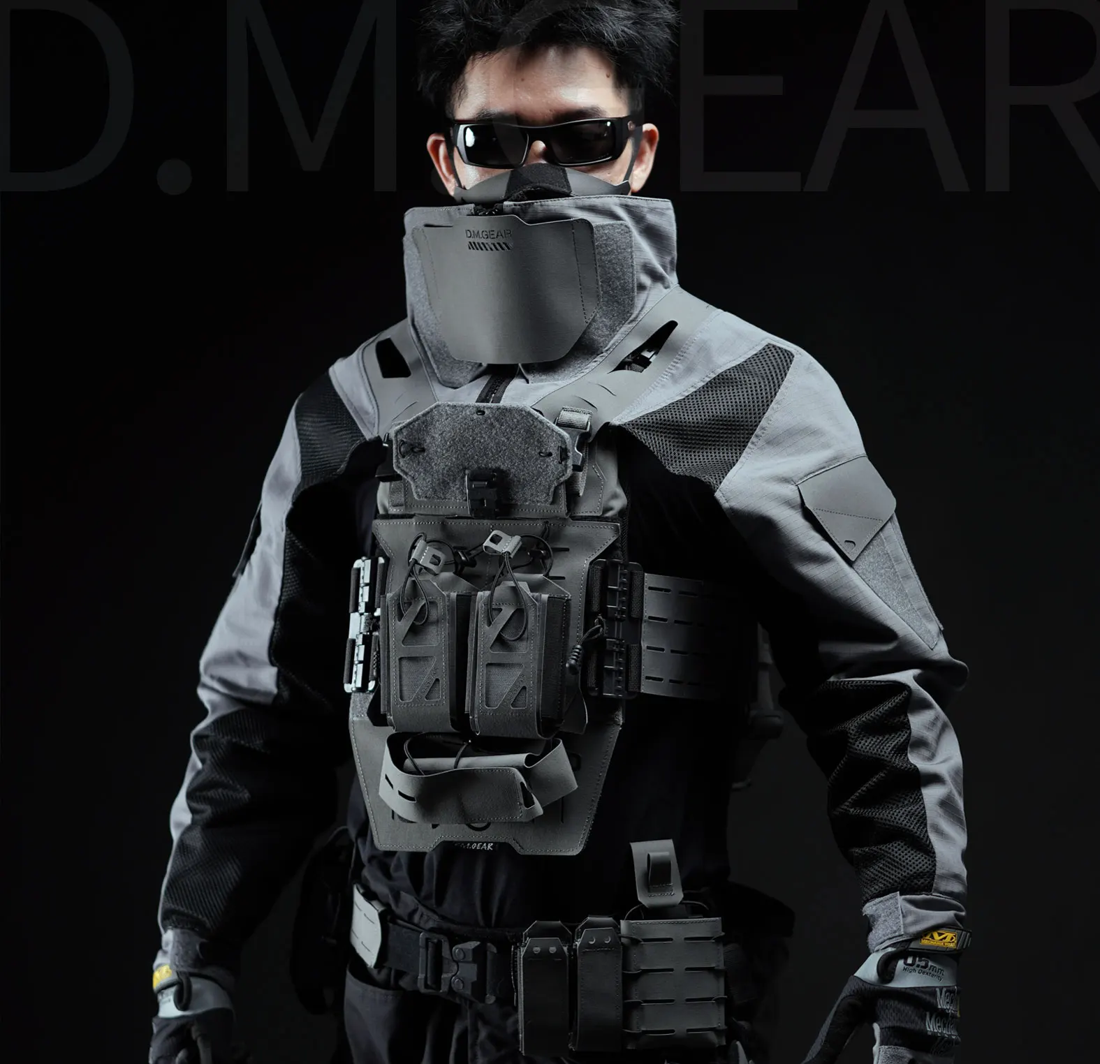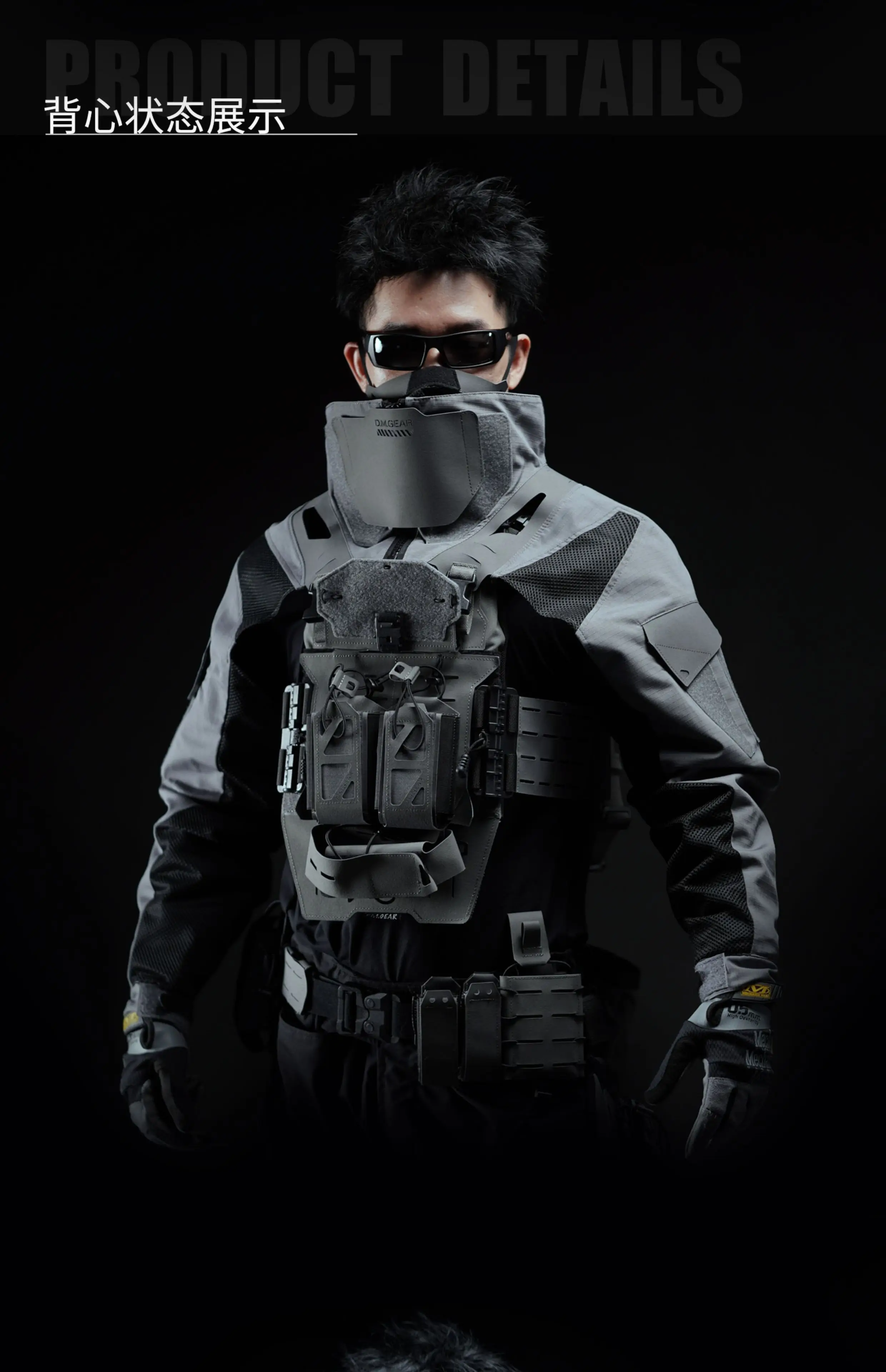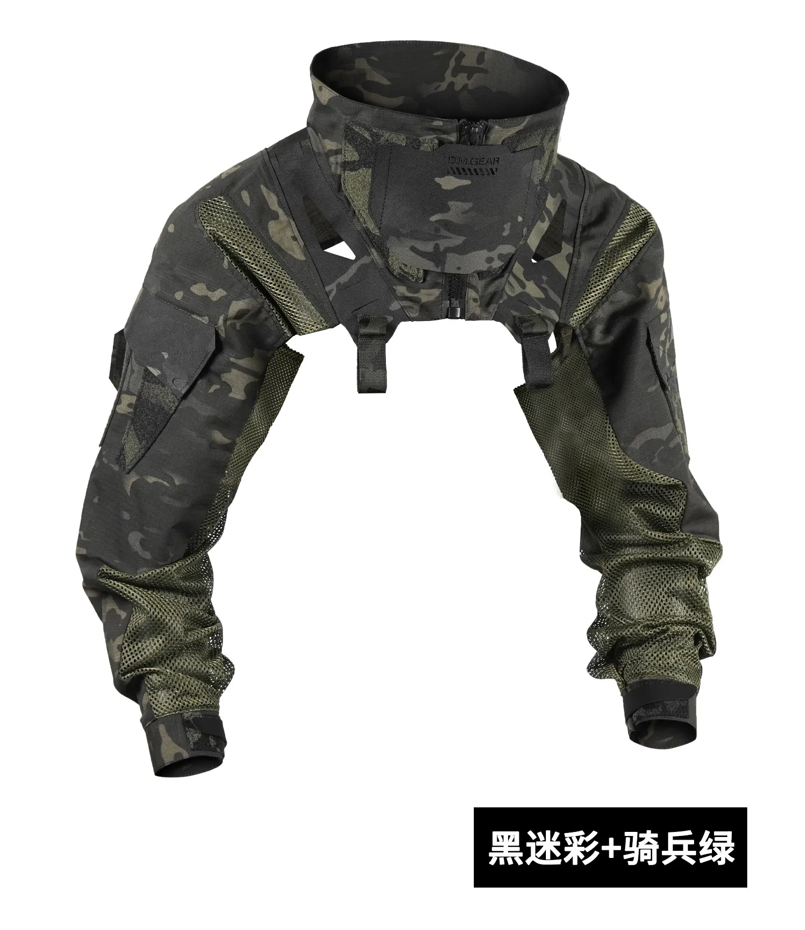 El traje con mangas se puede sujetar al colgador del pecho en lugar de a una correa para el hombro.